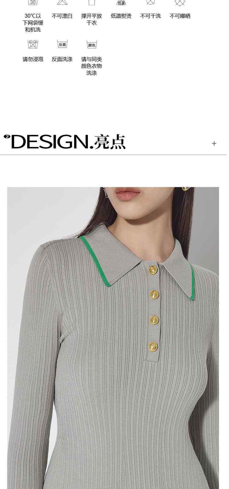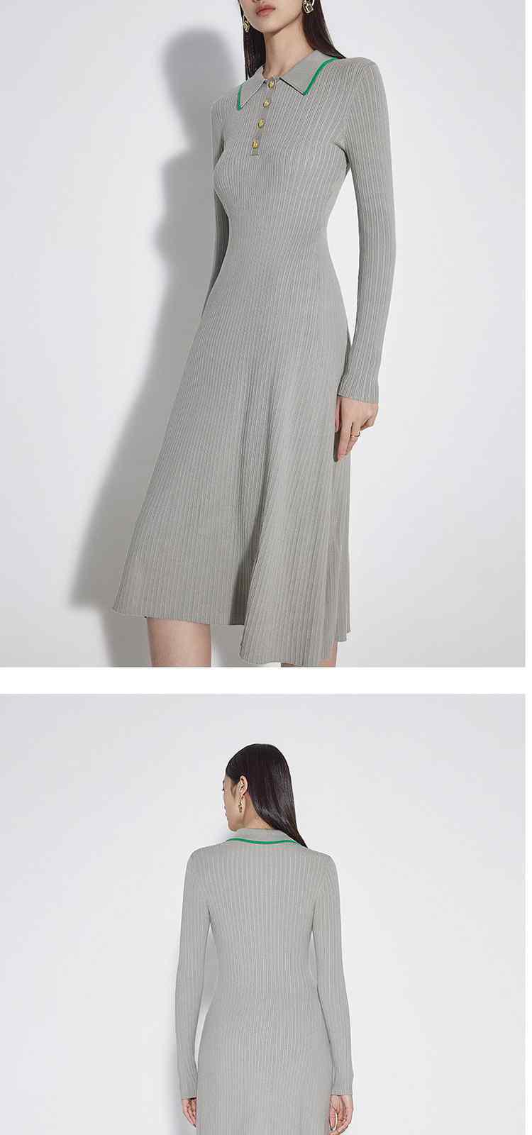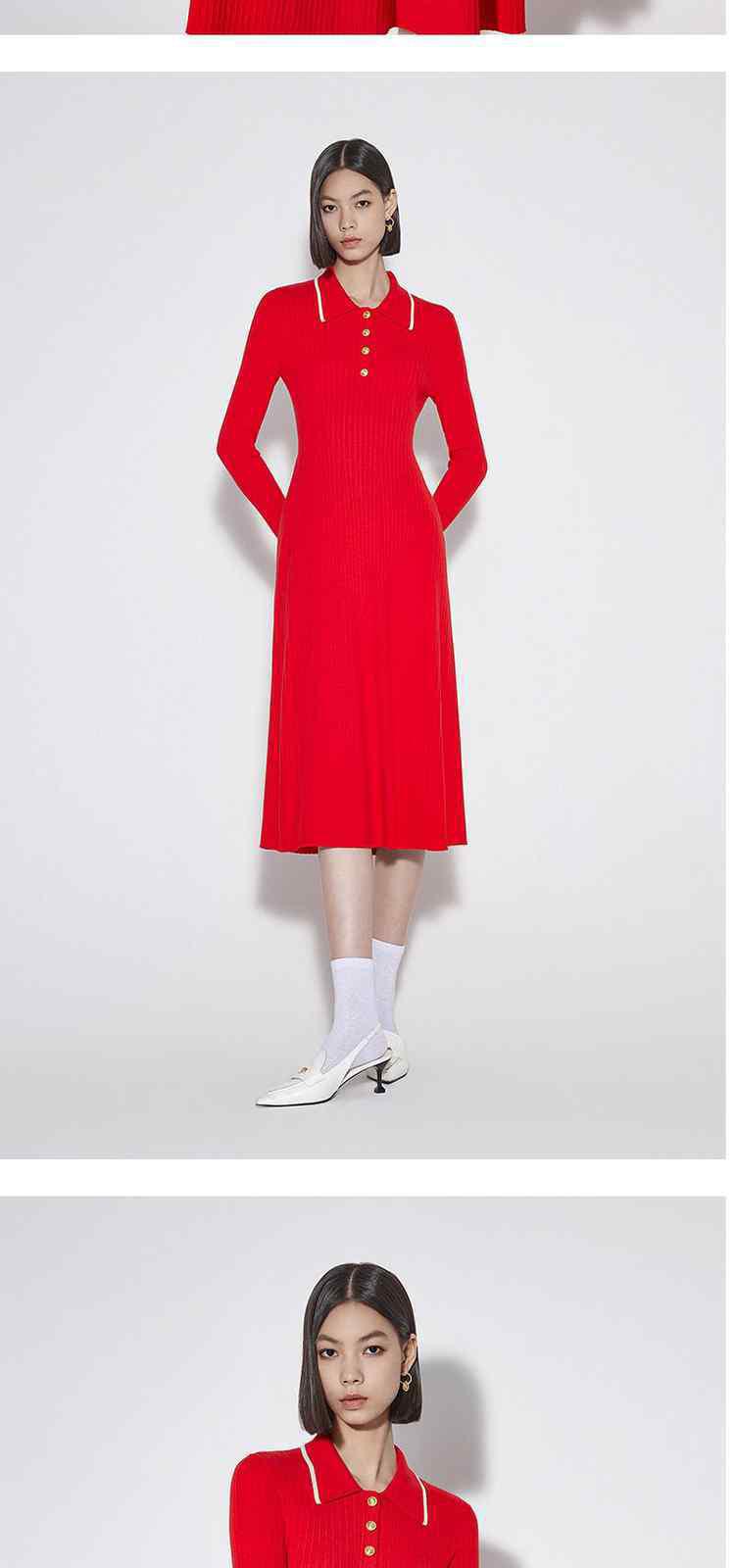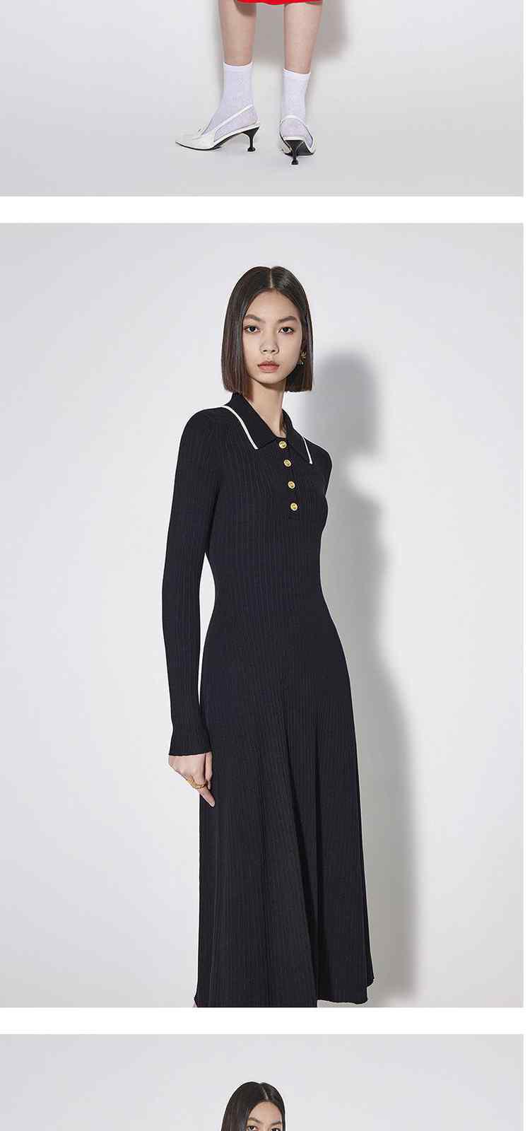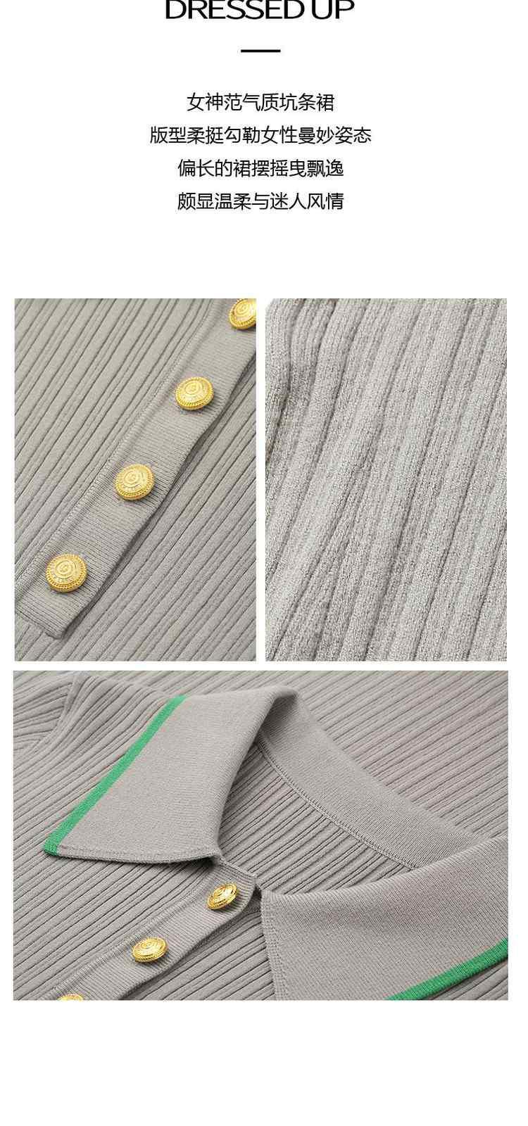 商品名称:春装 撞色坑条显瘦小香风polo领针织连衣裙 089615