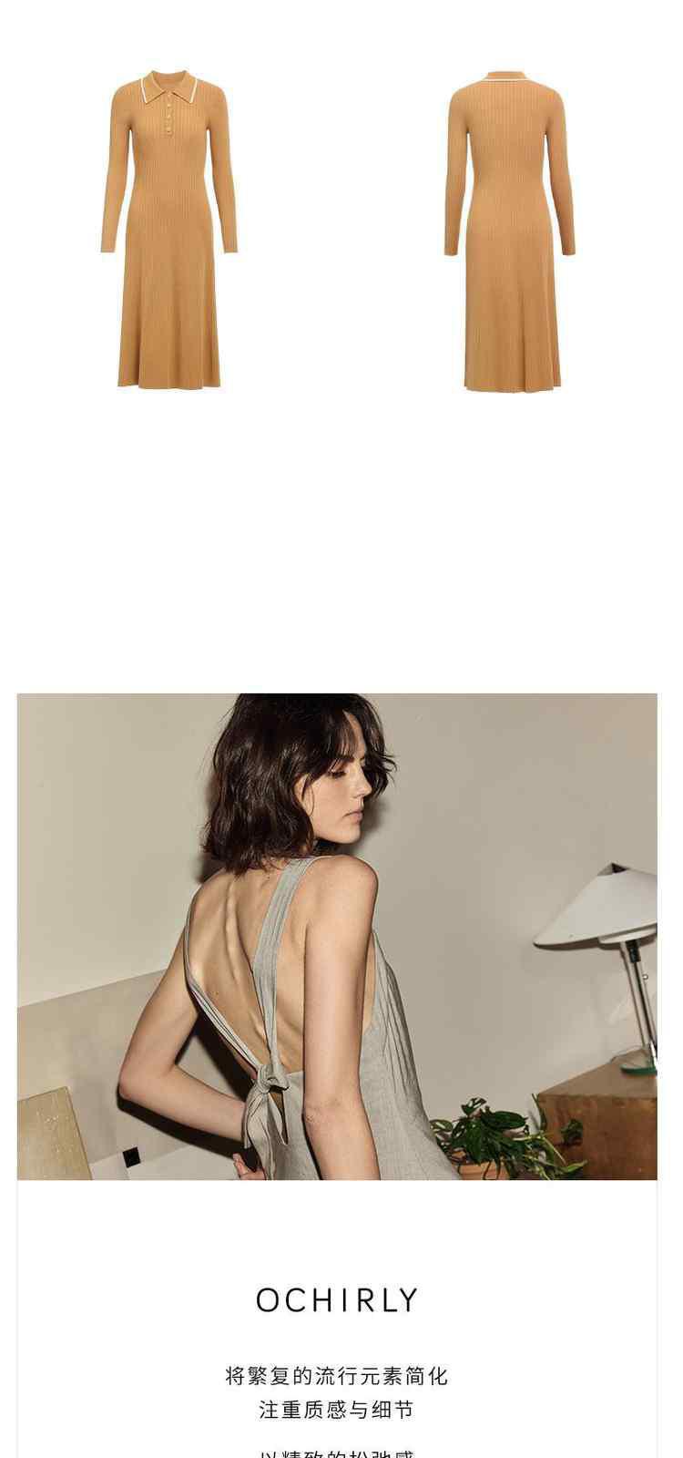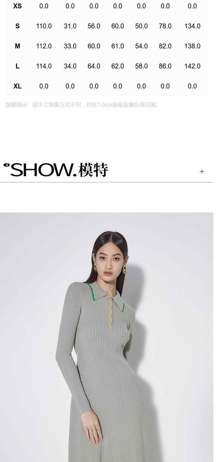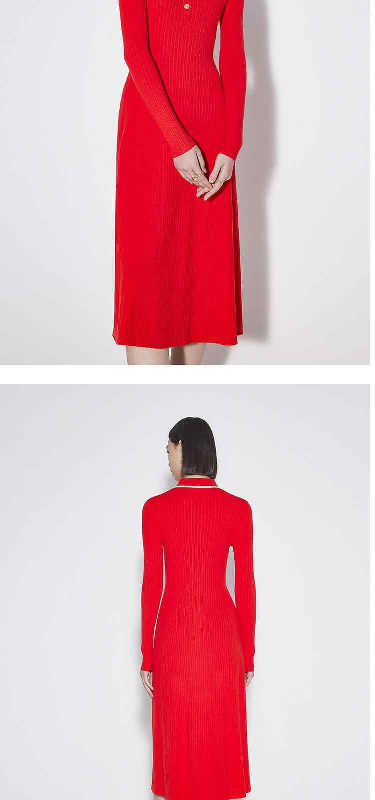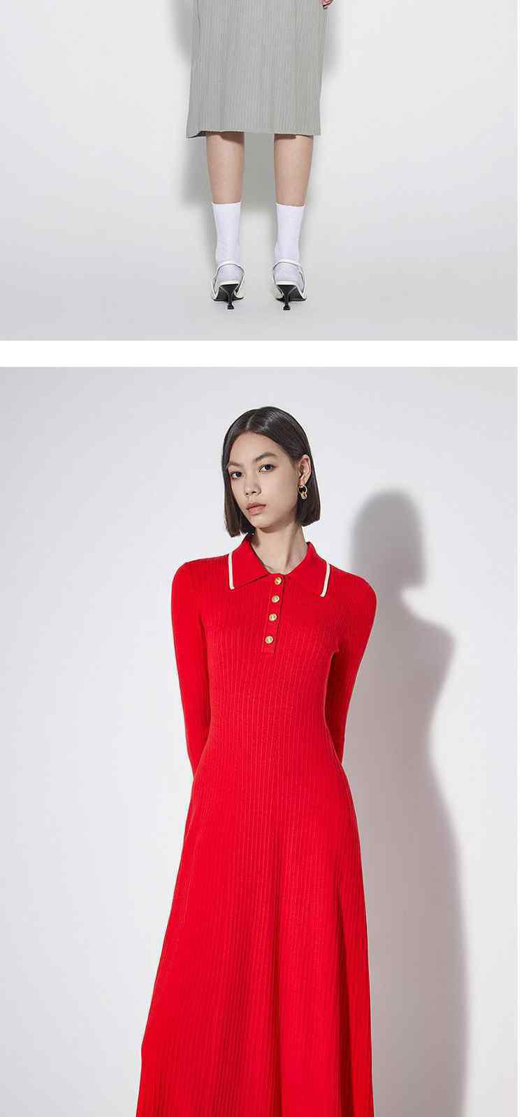 商品名称:春装 撞色坑条显瘦小香风polo领针织连衣裙 089615