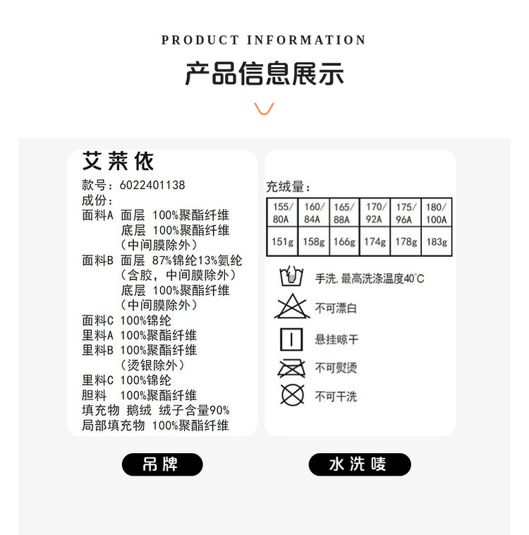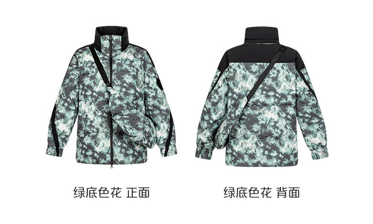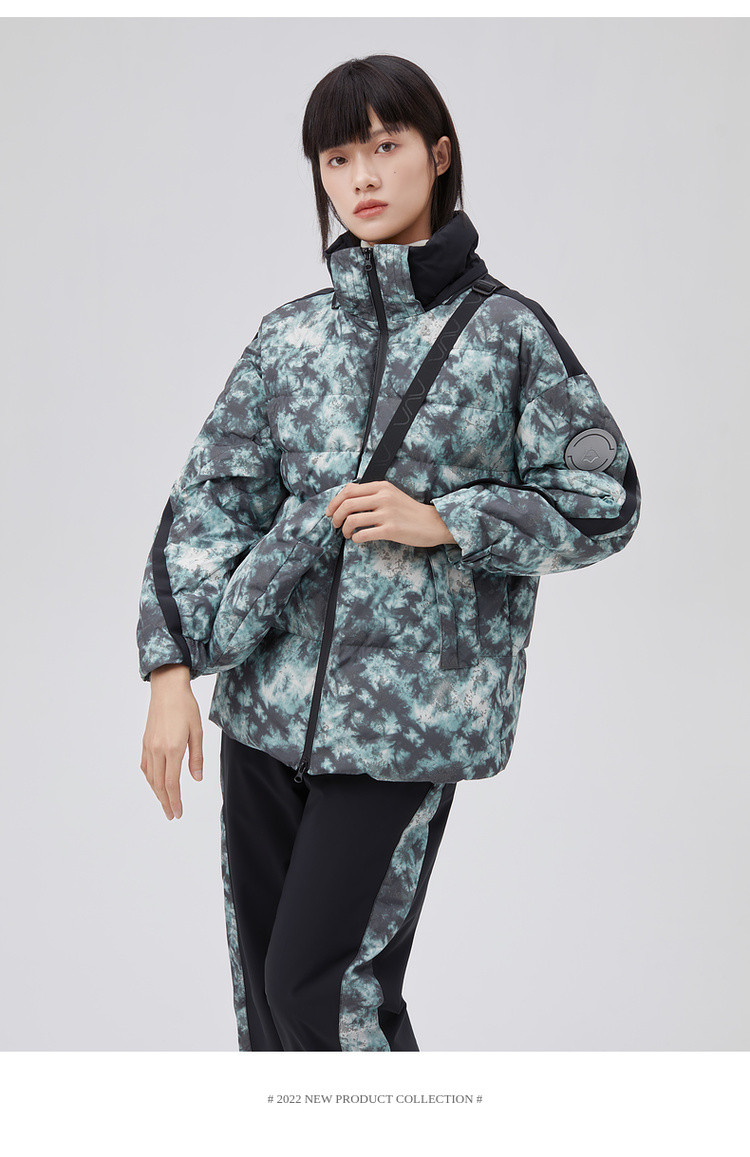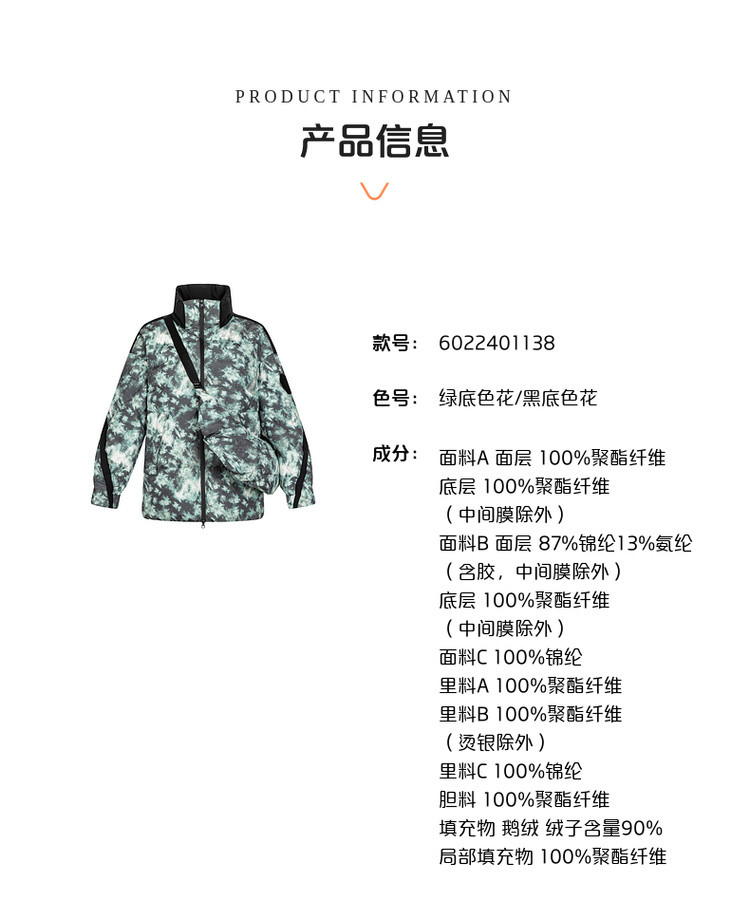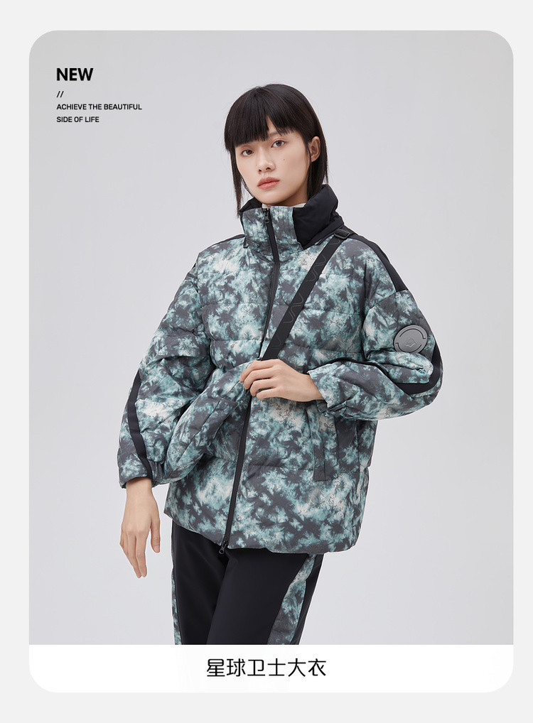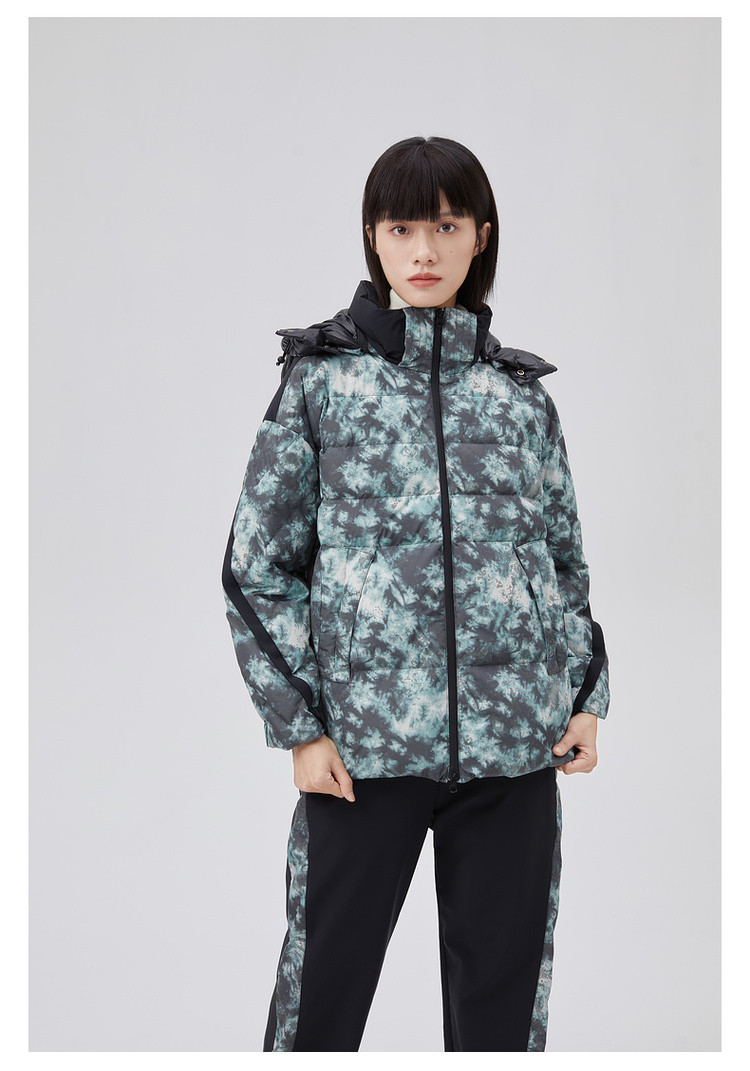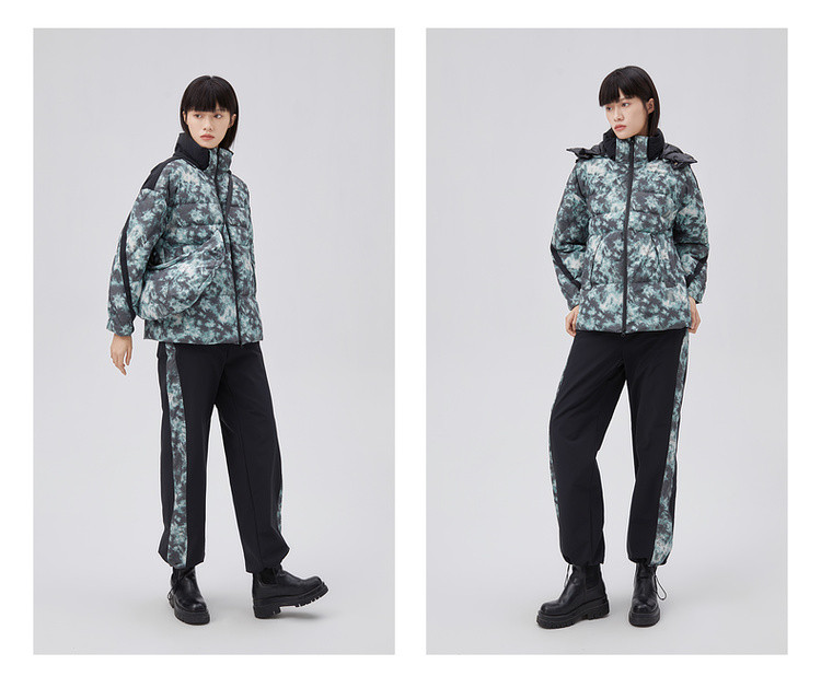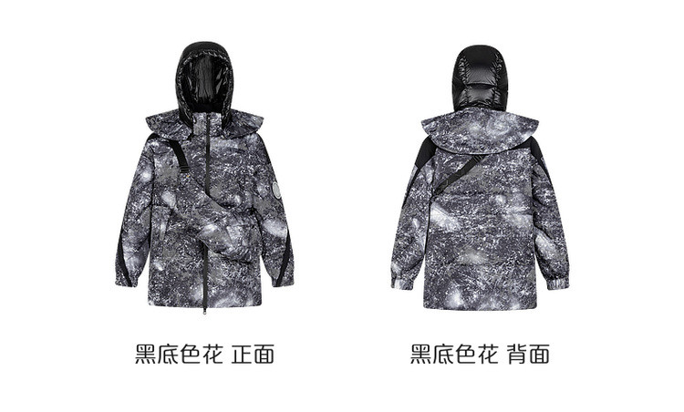 商品名称:可调节帽子专柜同款印花鹅绒羽绒服女反季特卖户外运动工装外套 377622