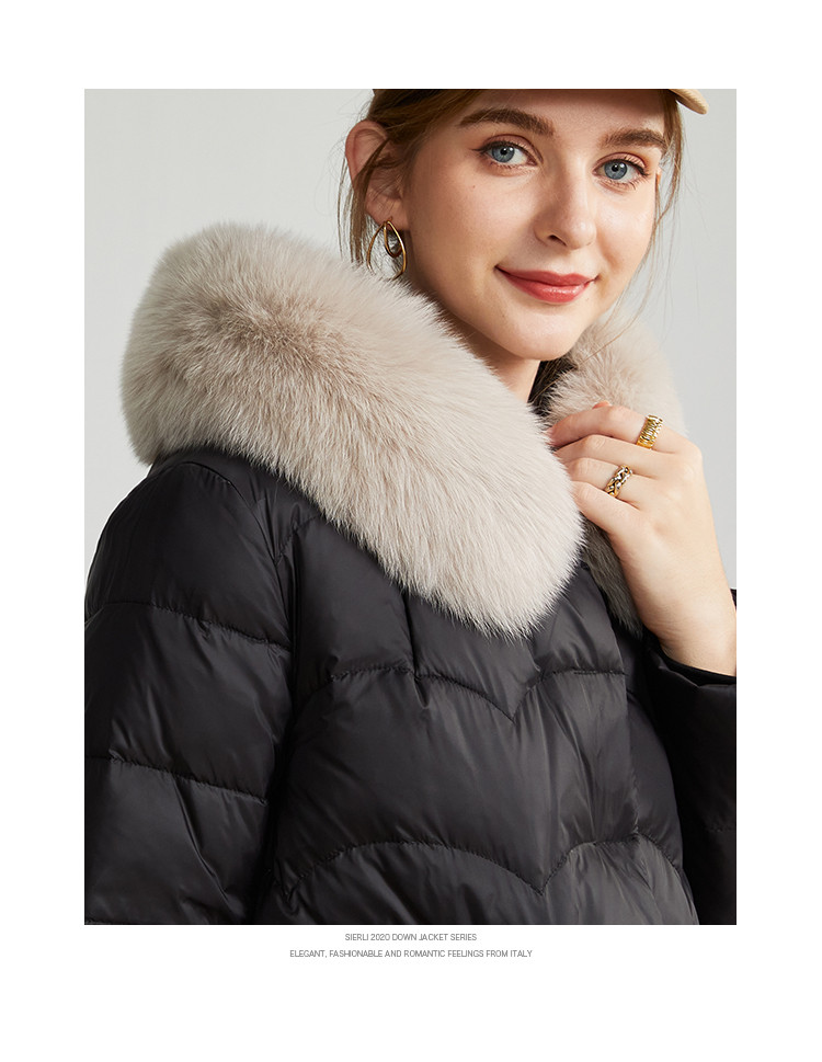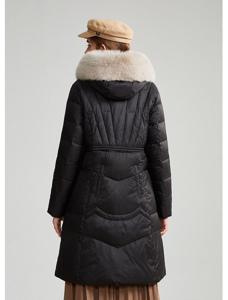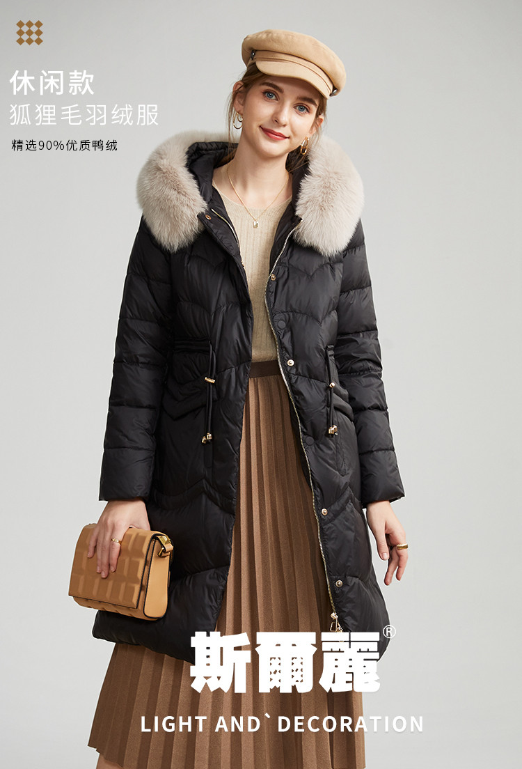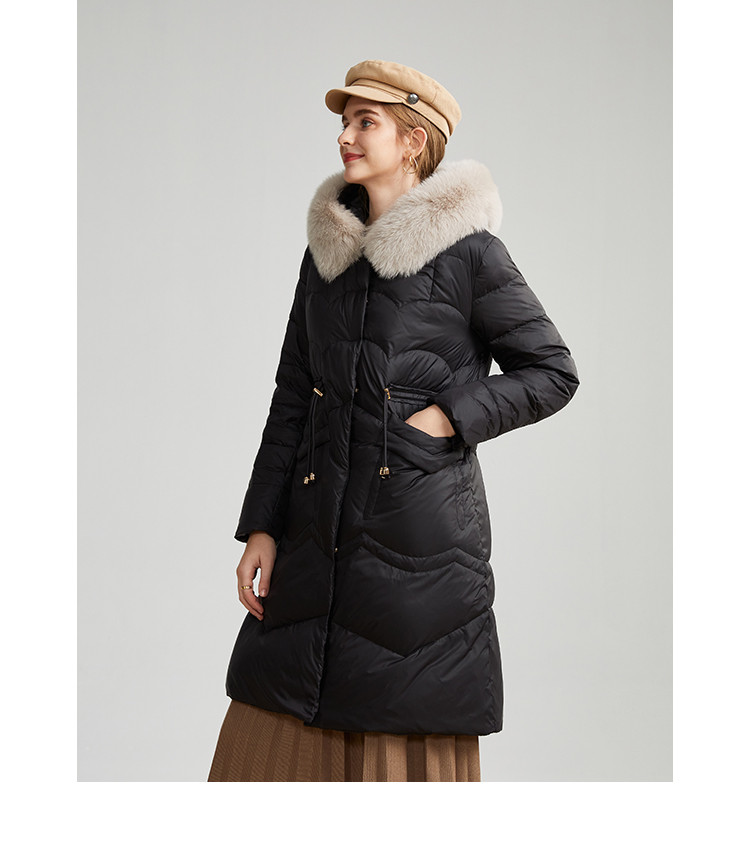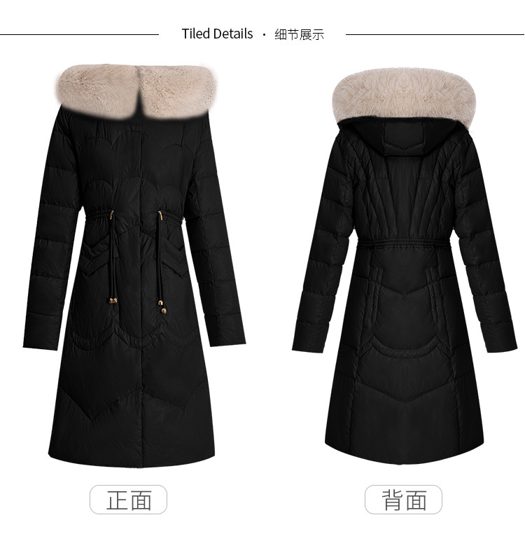 商品名称:轻奢天然狐狸毛领收腰显瘦中长款保暖女士休闲羽绒服 694431