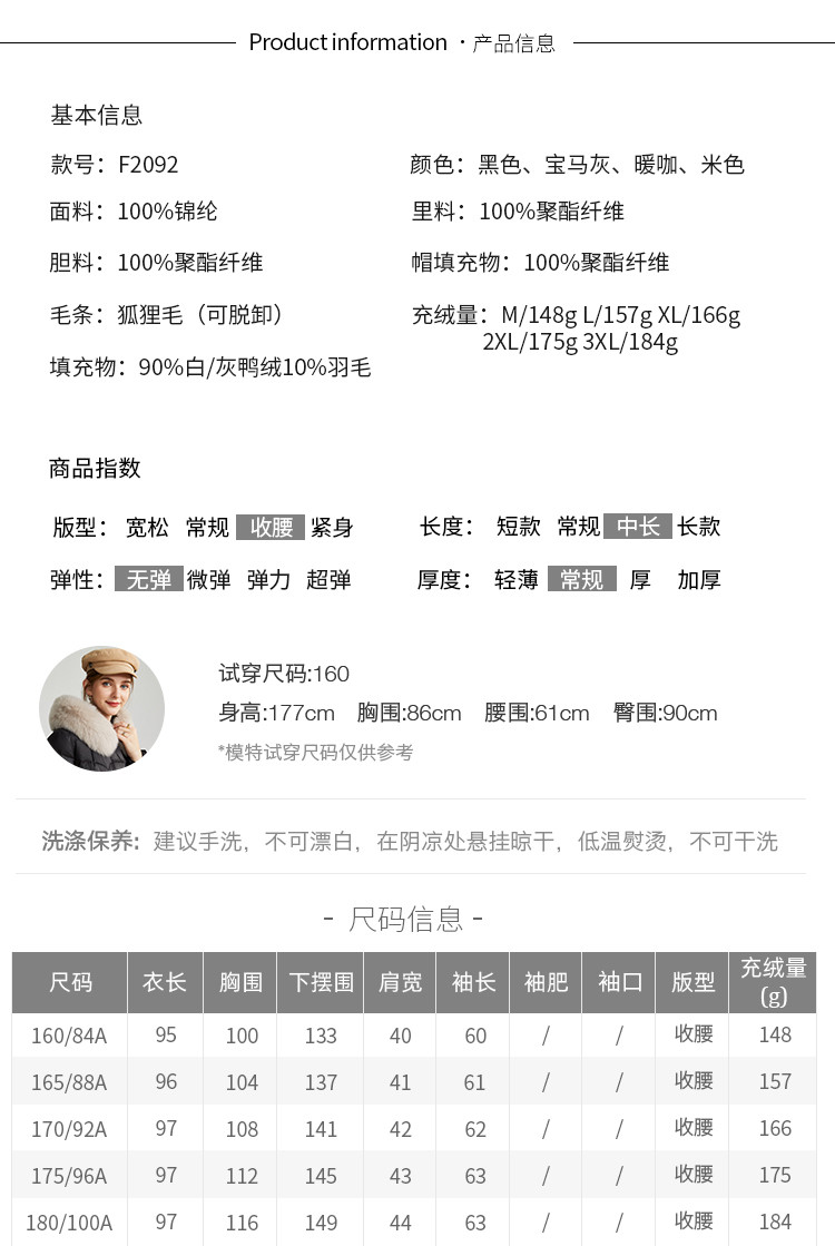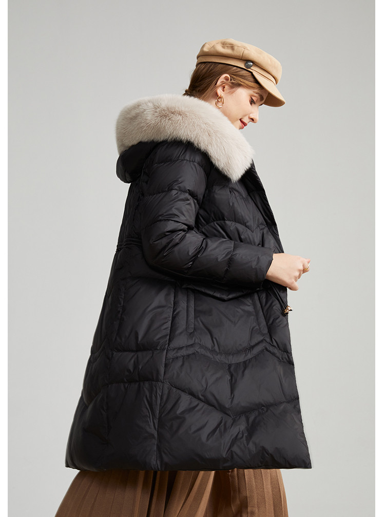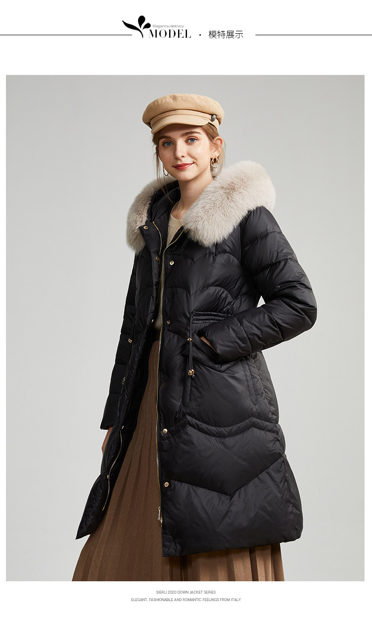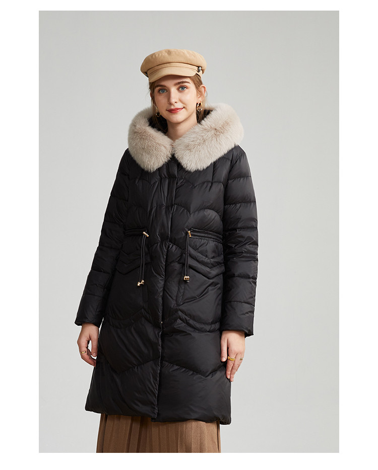 商品名称:轻奢天然狐狸毛领收腰显瘦中长款保暖女士休闲羽绒服 694431