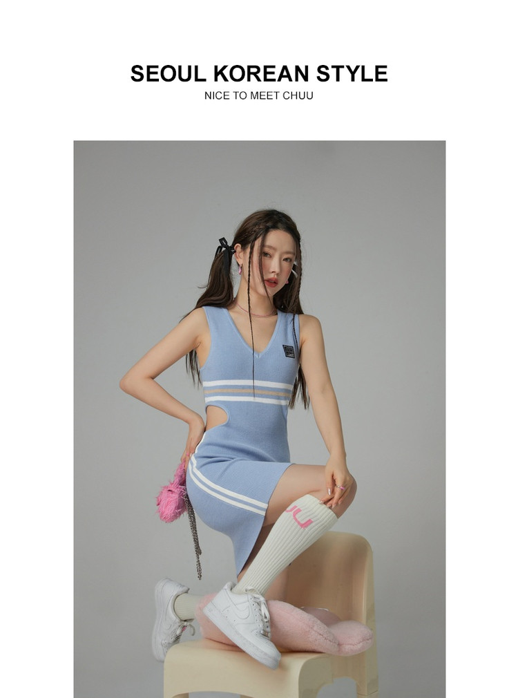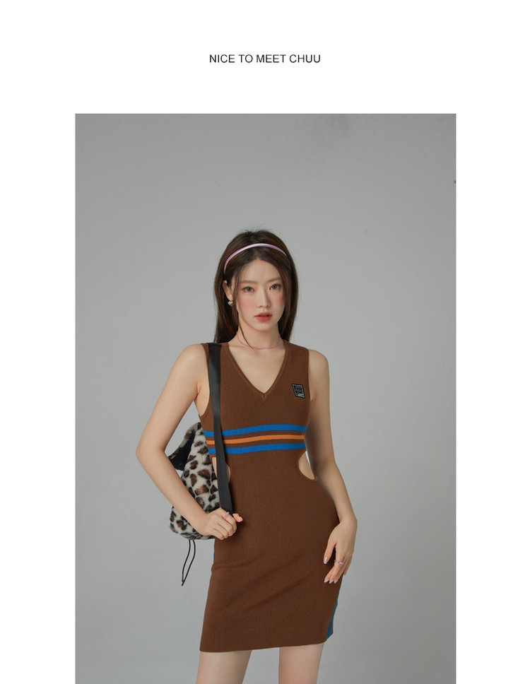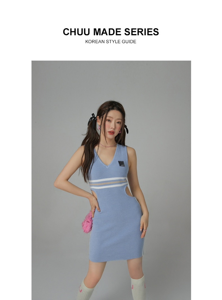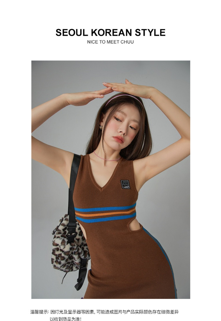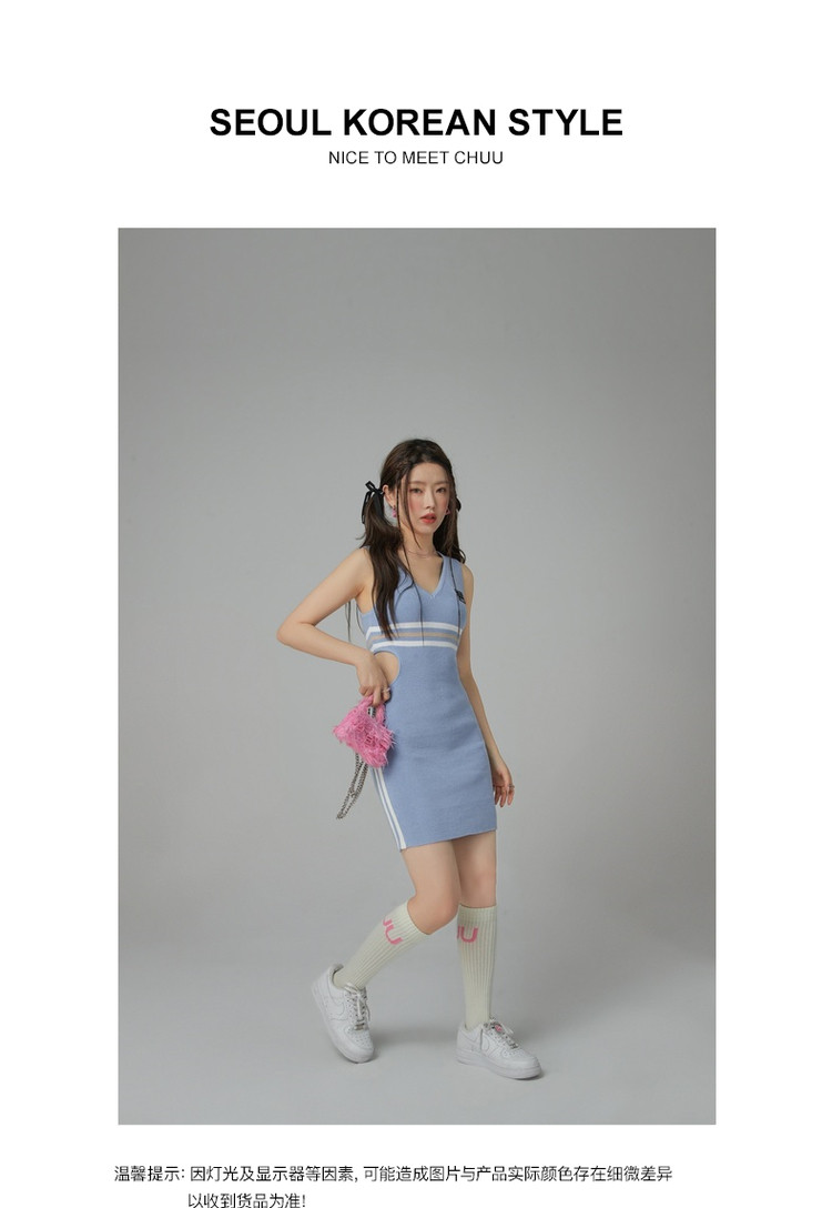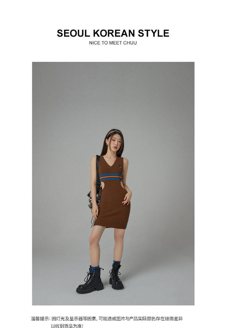 商品名称:CHUU辣妹镂空连衣裙女秋V领性感显瘦包臀背心裙 778515