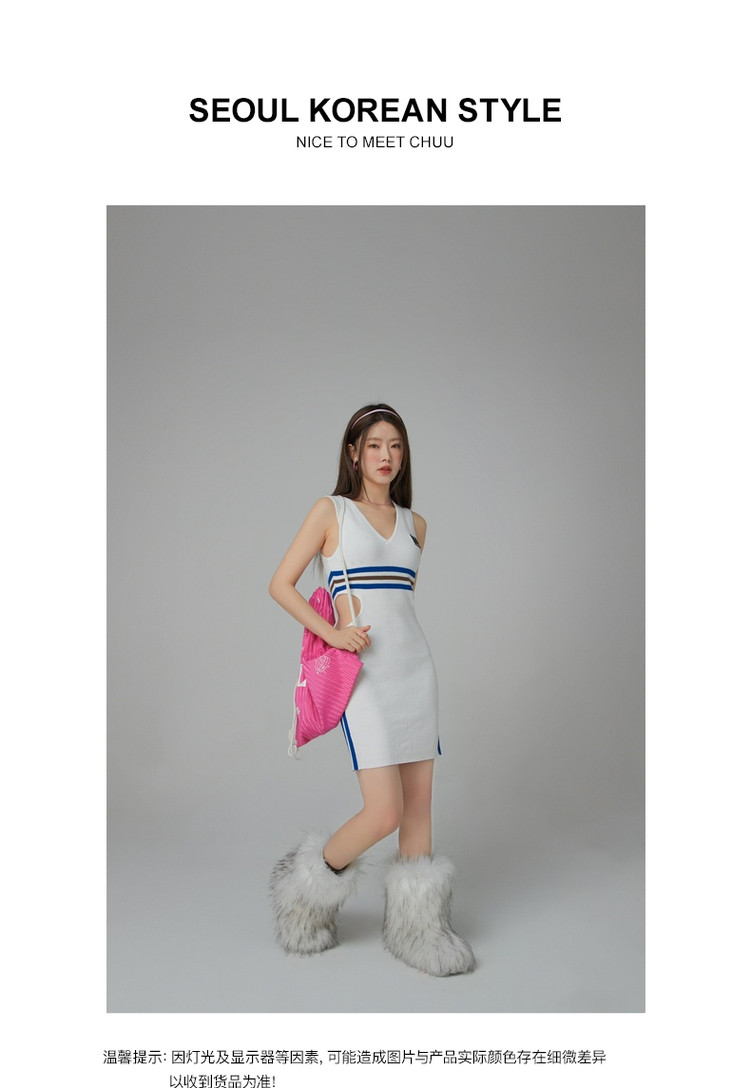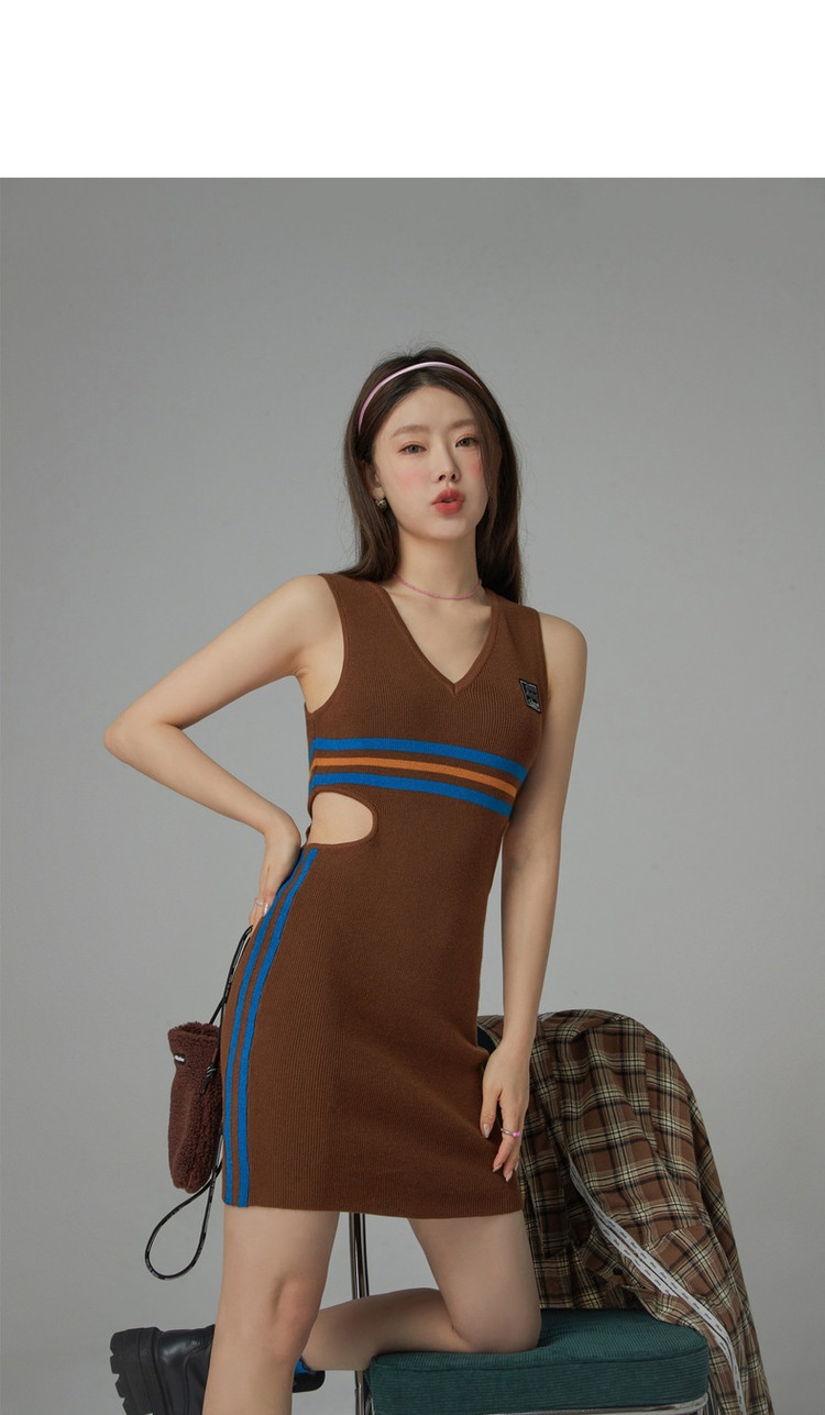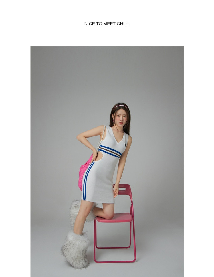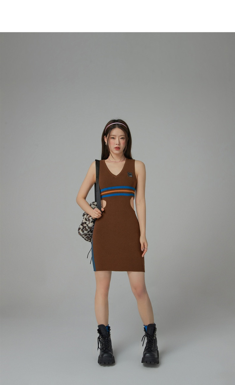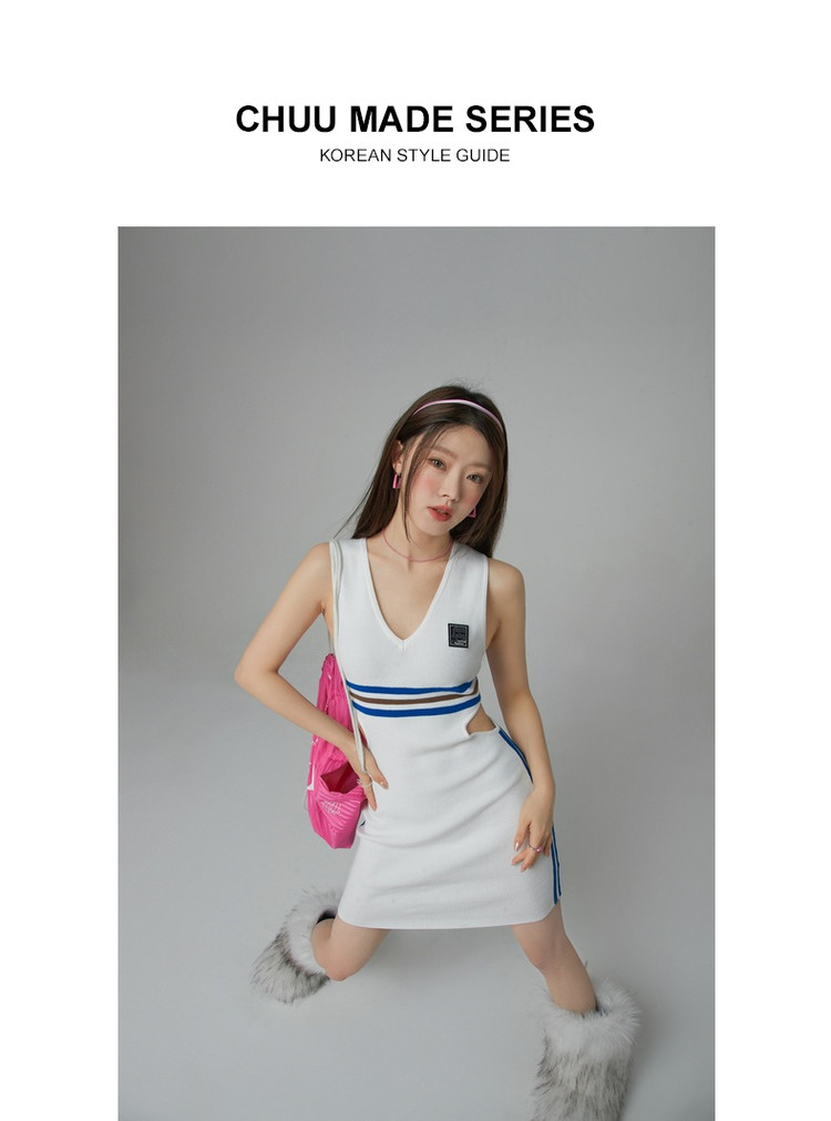 商品名称:CHUU辣妹镂空连衣裙女秋V领性感显瘦包臀背心裙 778515