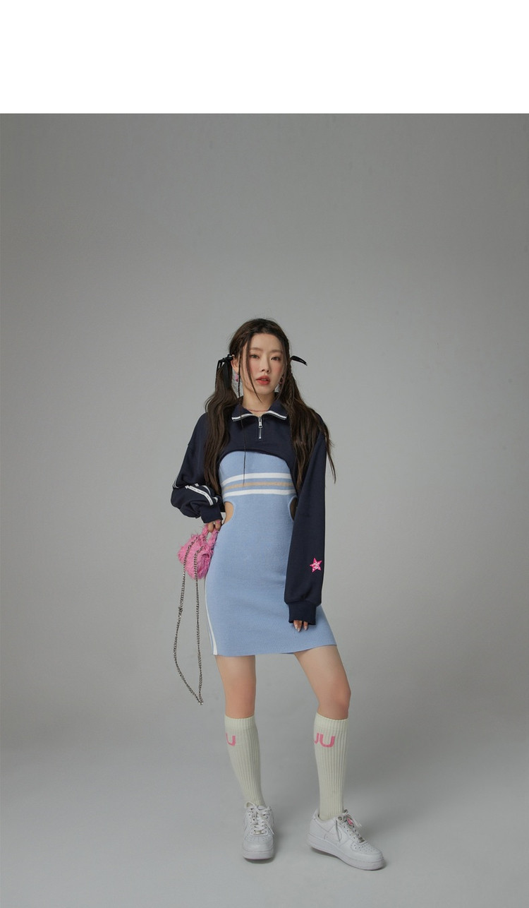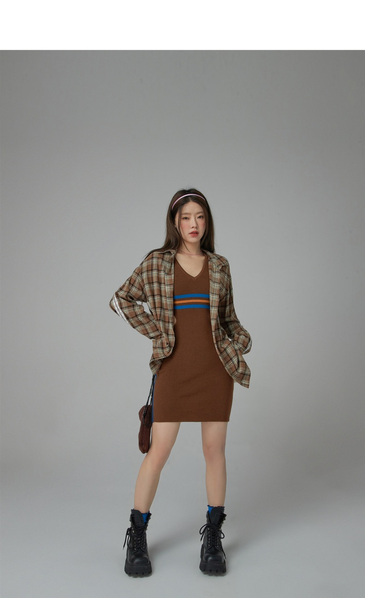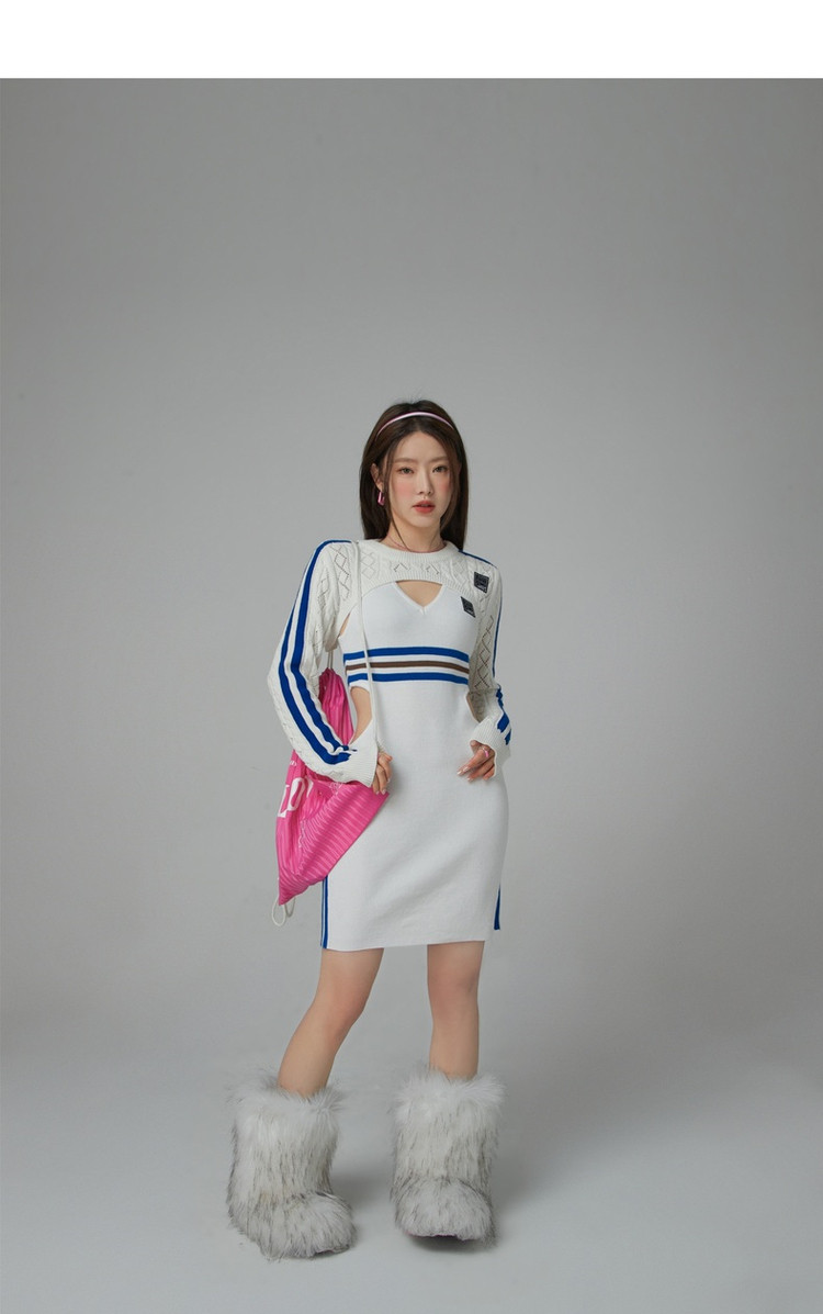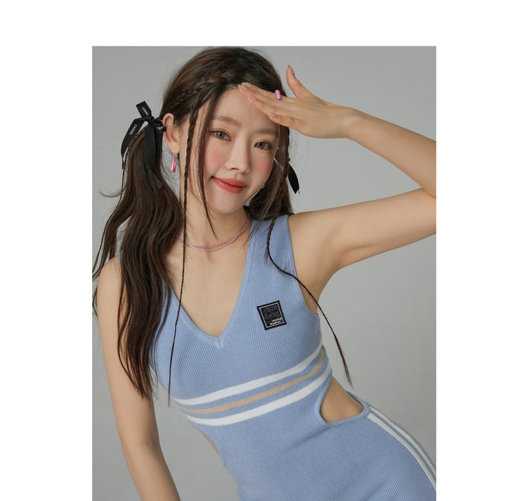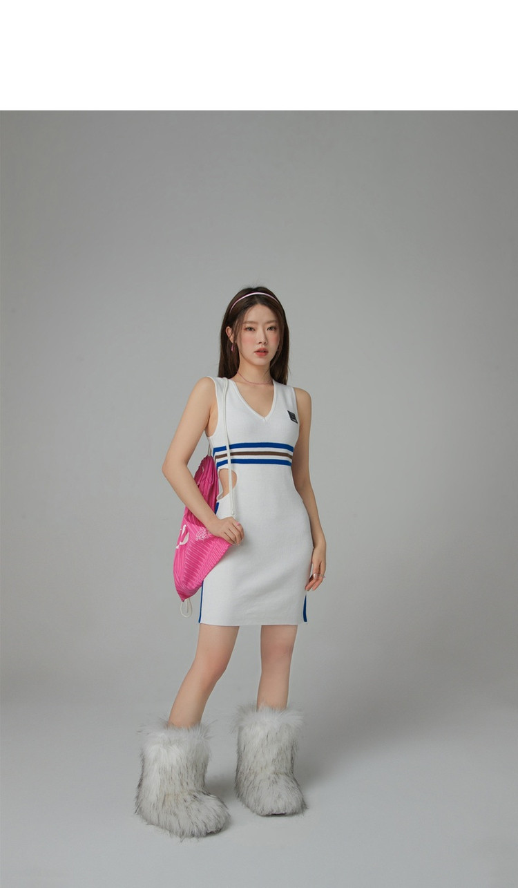 商品名称:CHUU辣妹镂空连衣裙女秋V领性感显瘦包臀背心裙 778515