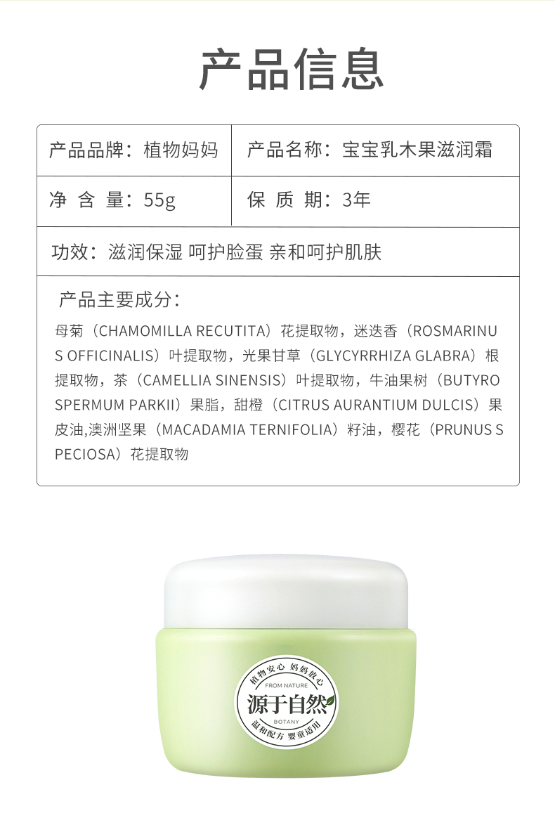 商品名称:植物妈妈儿童乳木果倍润保湿面霜55g