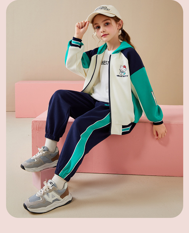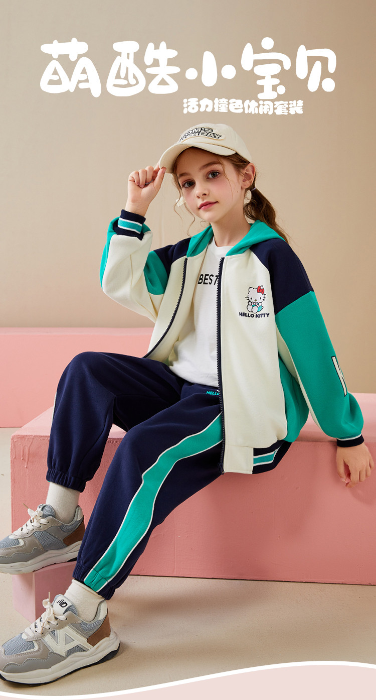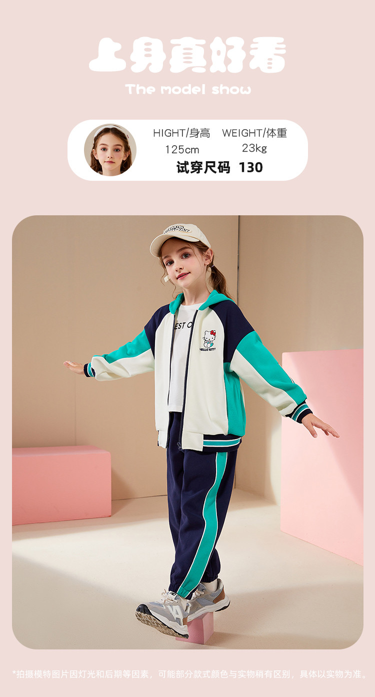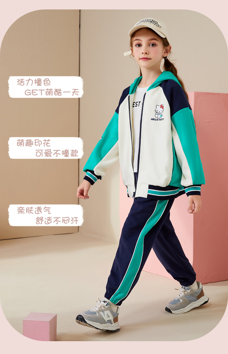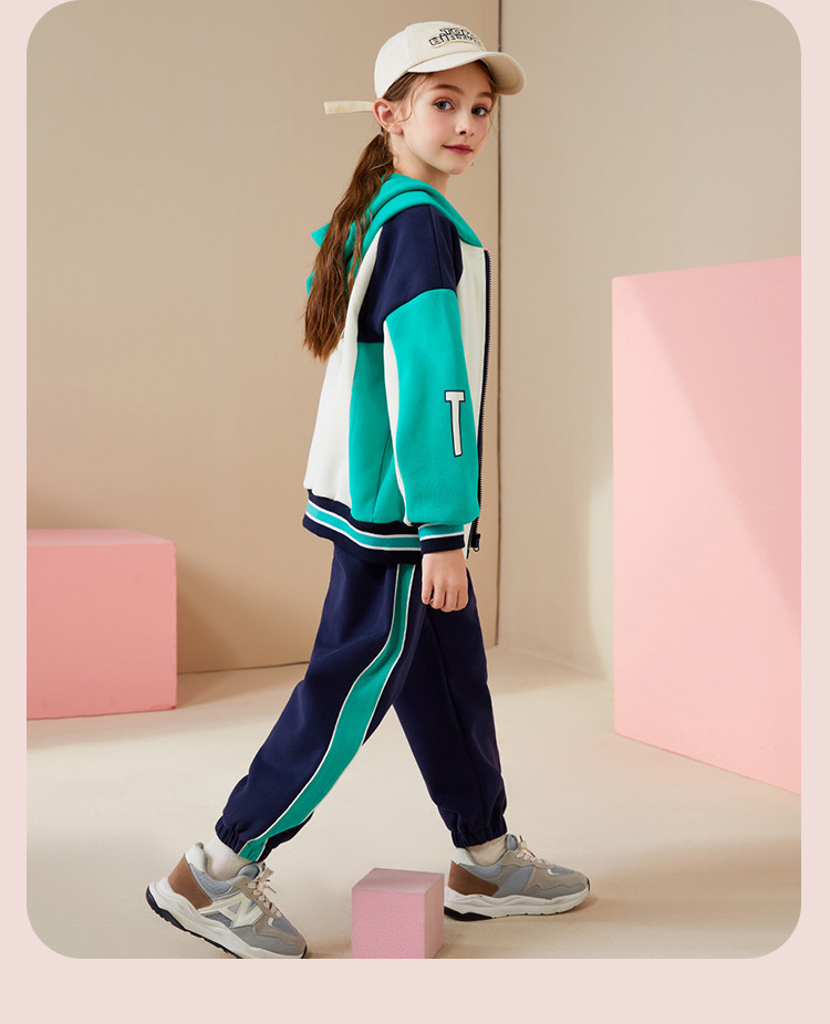 商品名称:女童春季套装2025新款印花连帽运动中大童两件套甜酷女童套装 297118