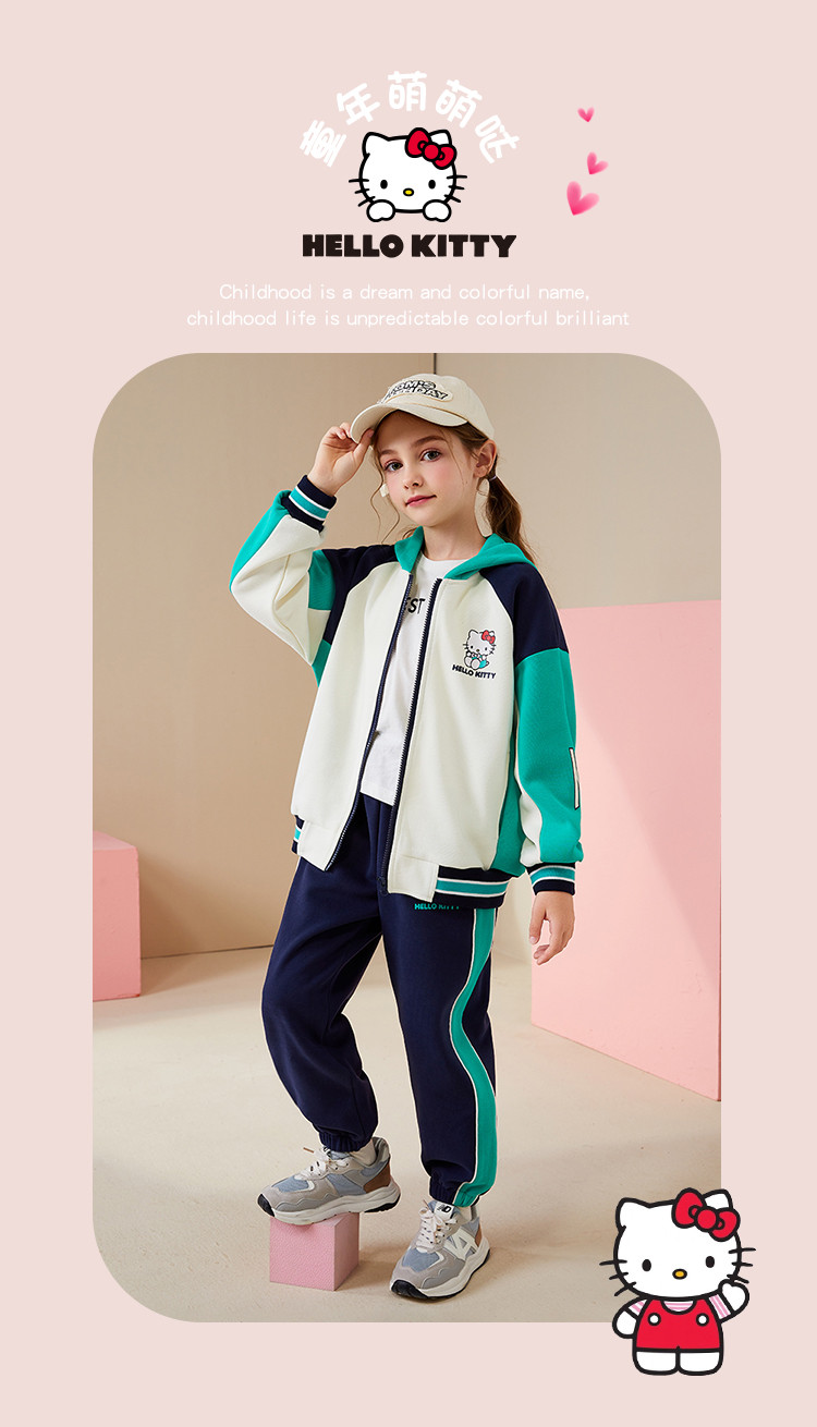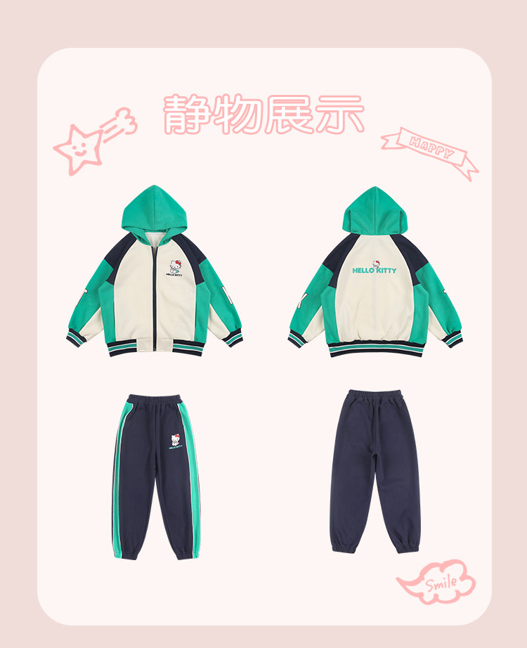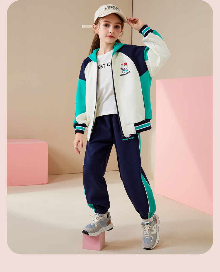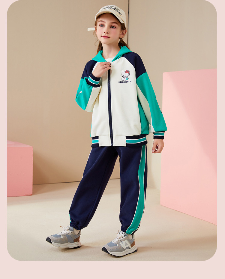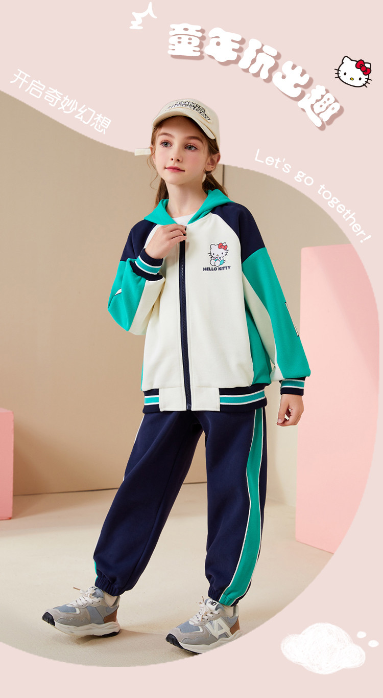 商品名称:女童春季套装2025新款印花连帽运动中大童两件套甜酷女童套装 297118