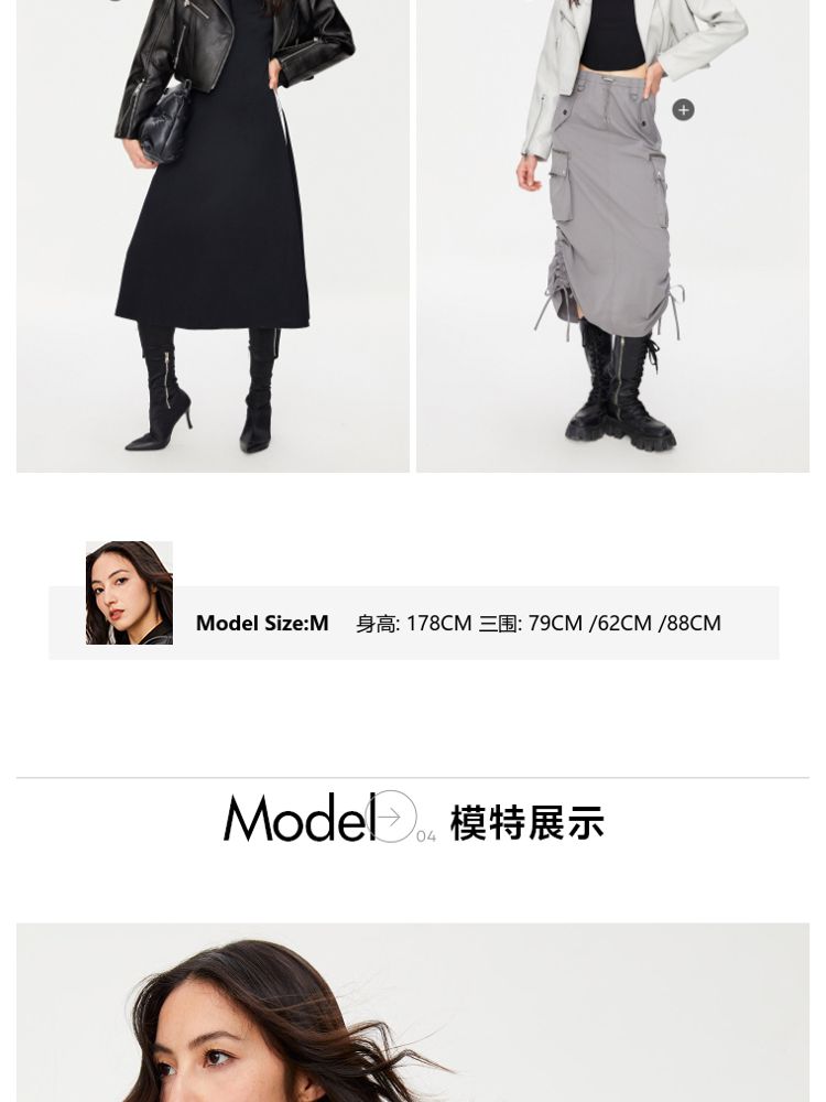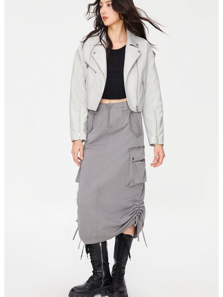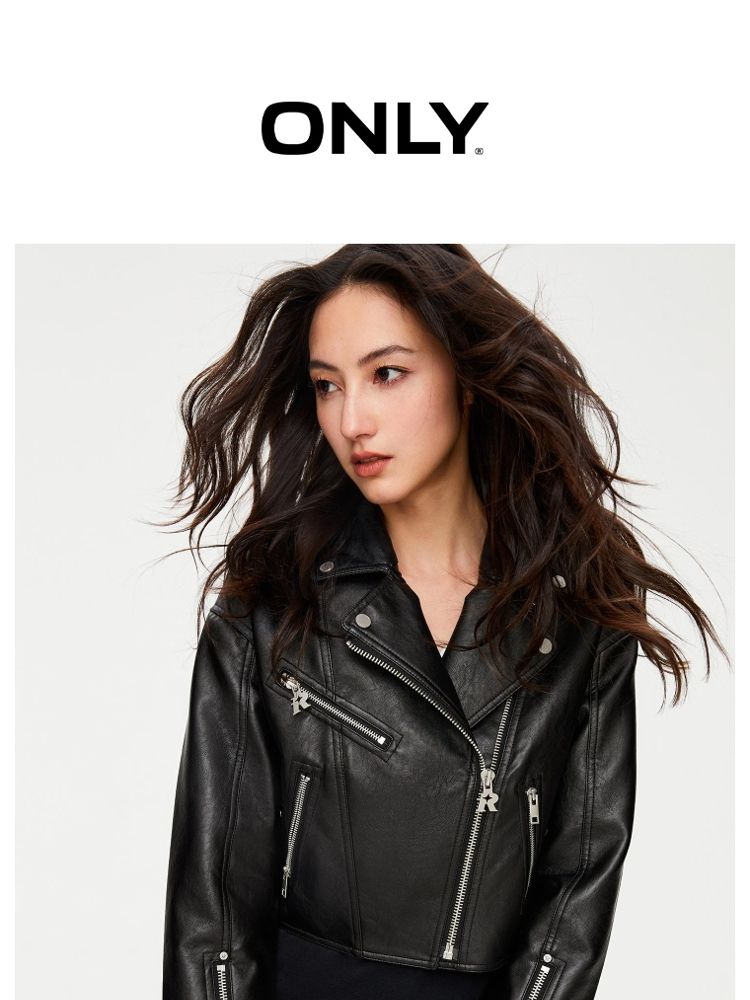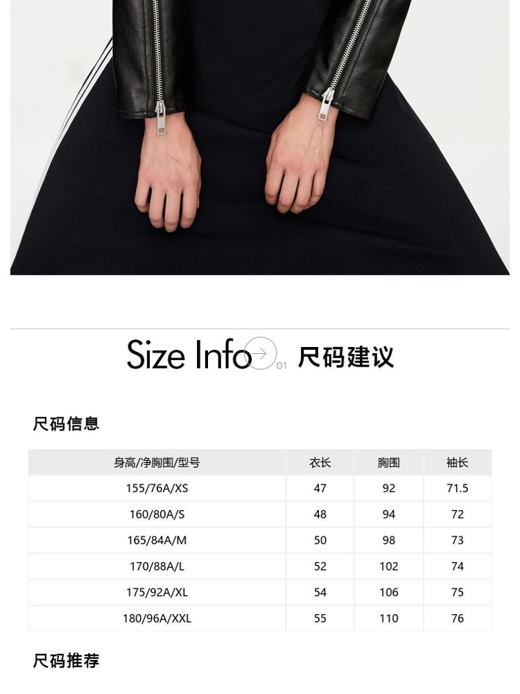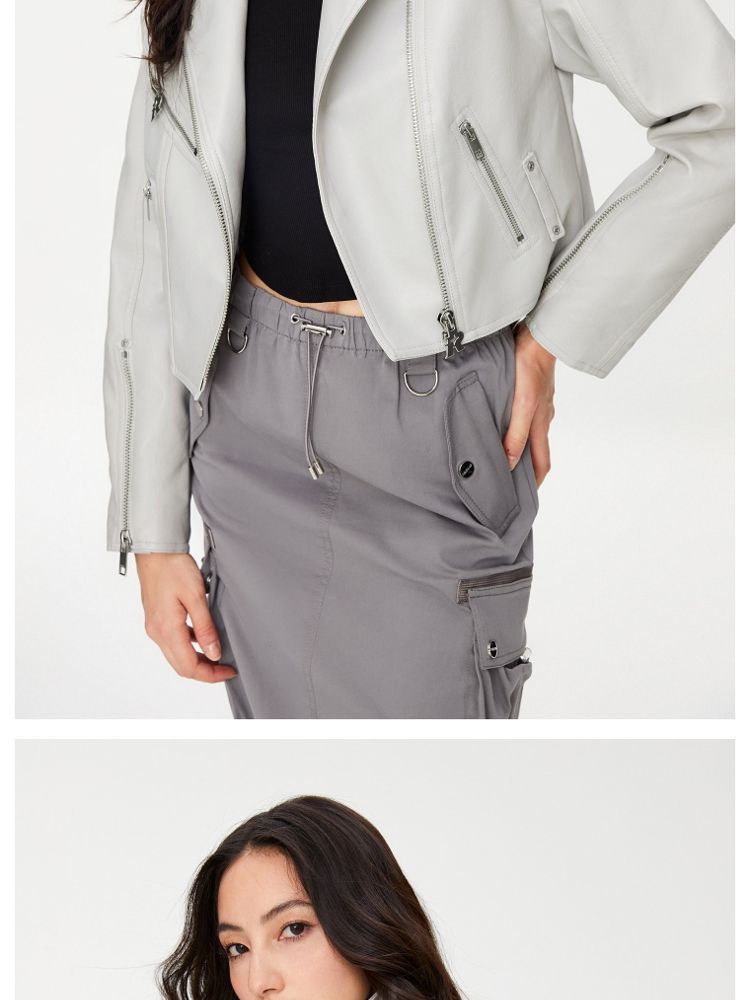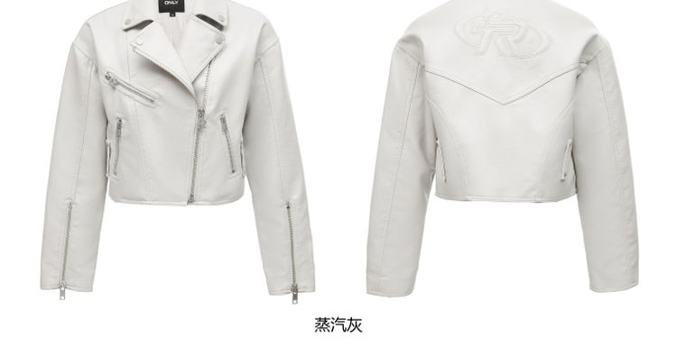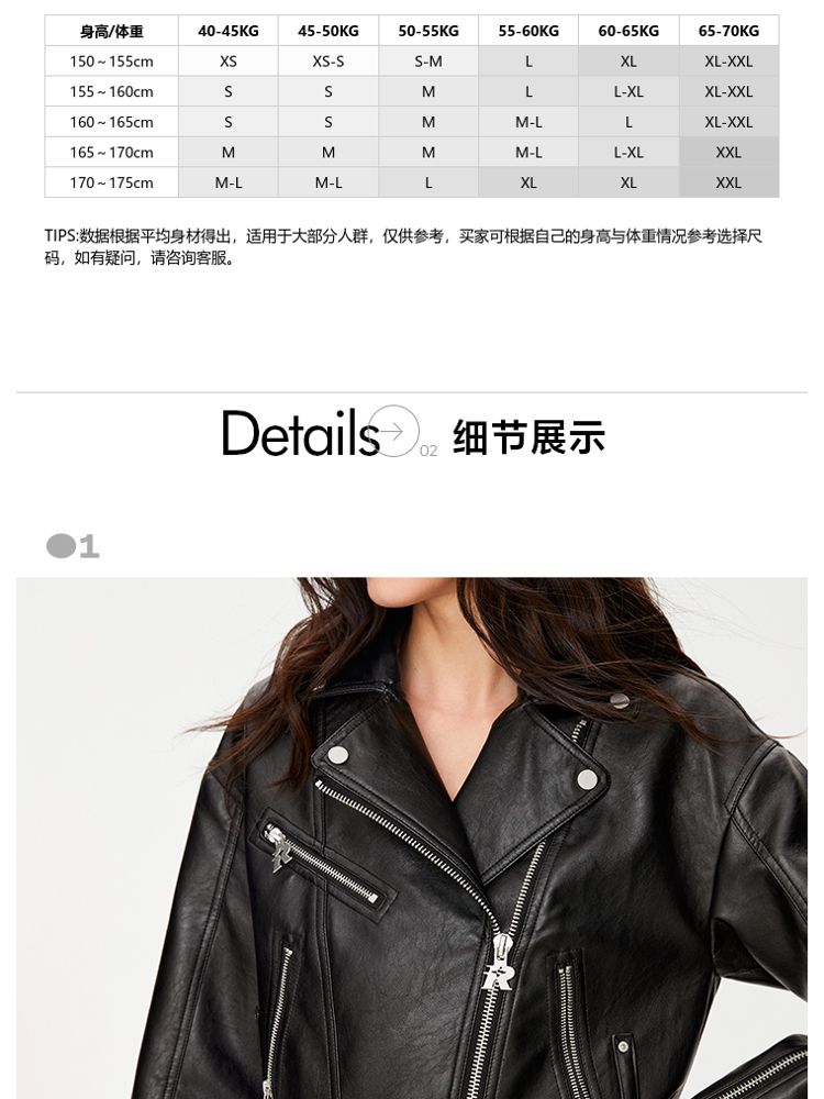商品名称:【袖口拉链】春季简约翻领长袖短款夹克PU外套女 517594