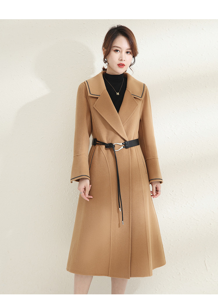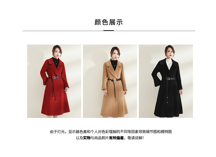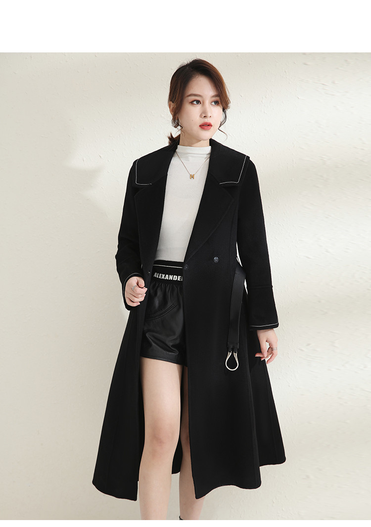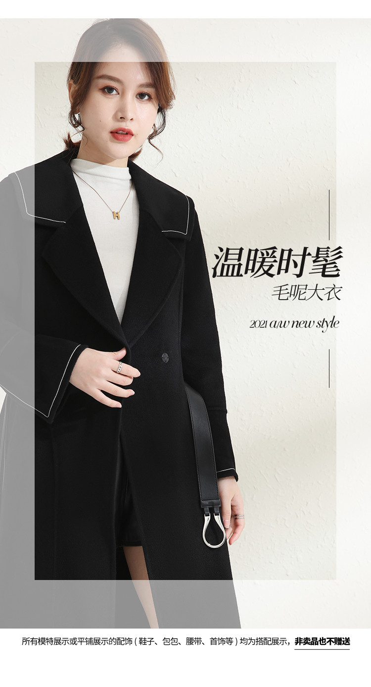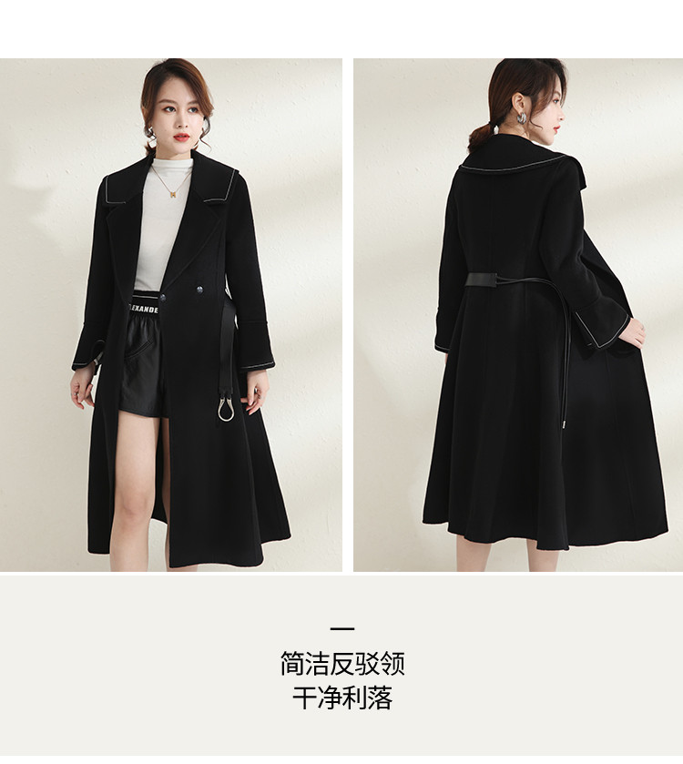 商品名称:【100%绵羊毛】秋冬气质长款女式大衣双面呢羊毛外套 370271