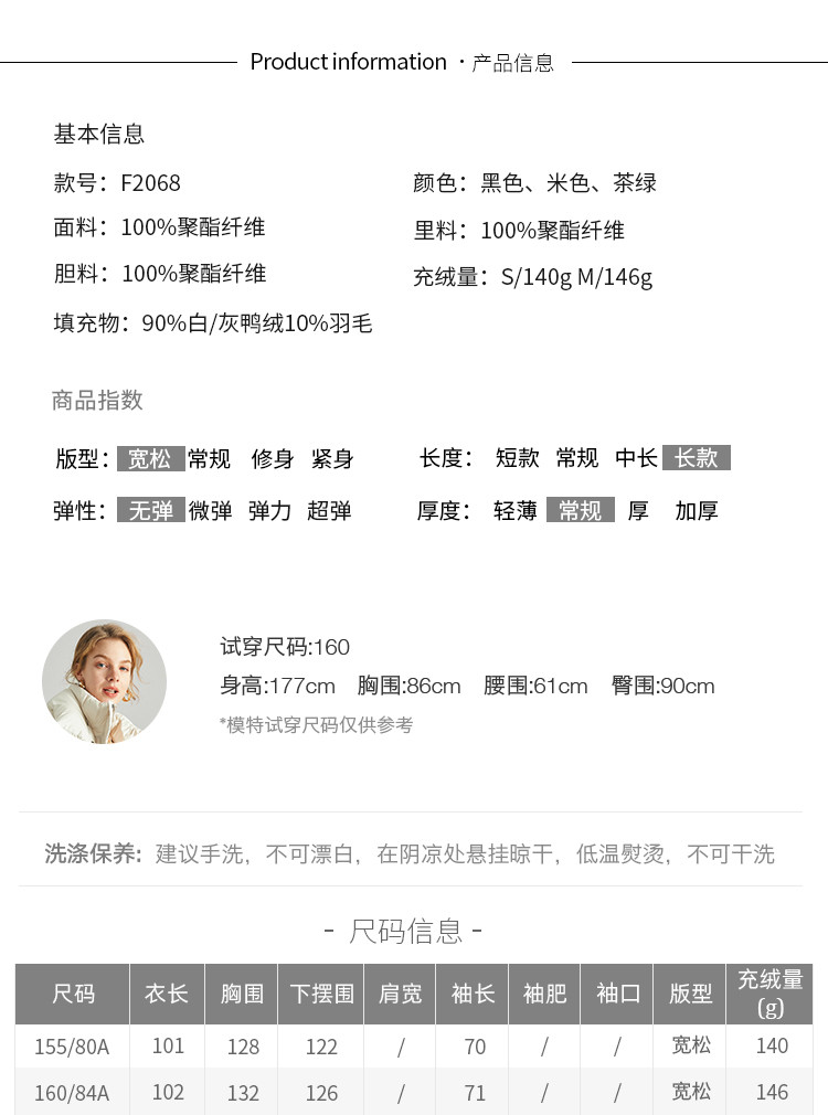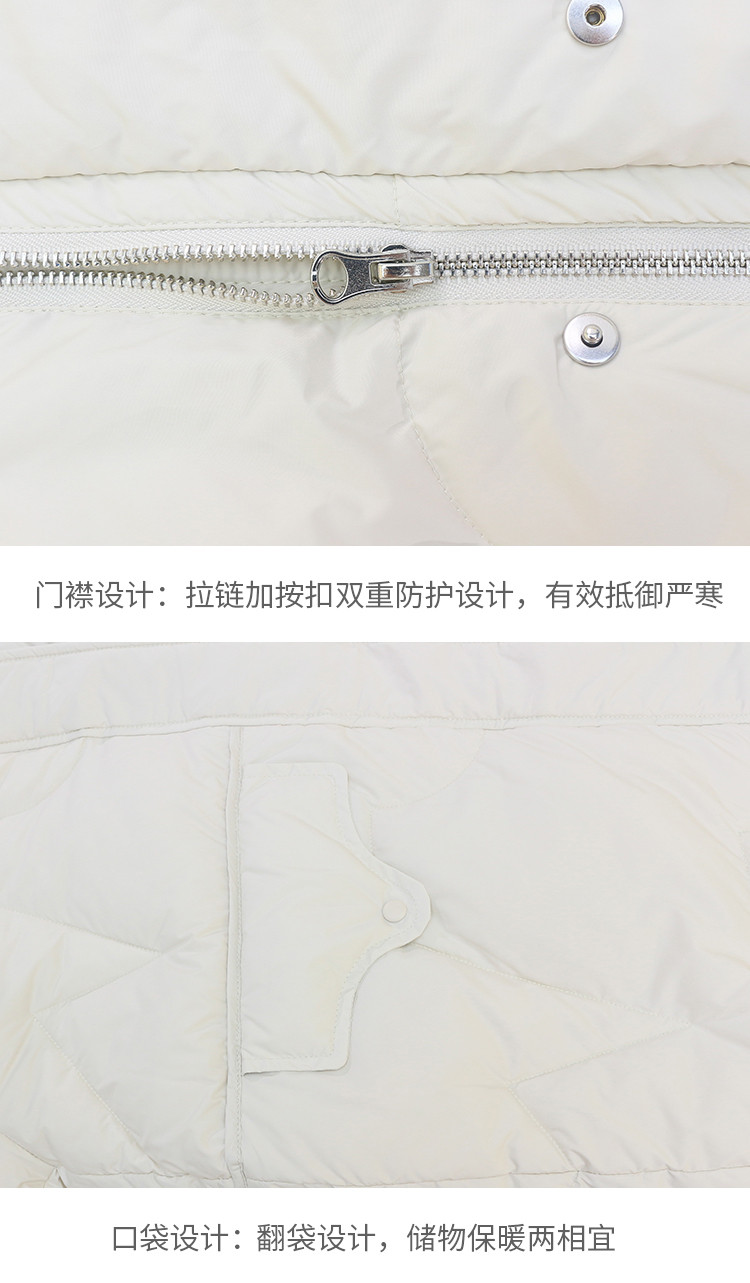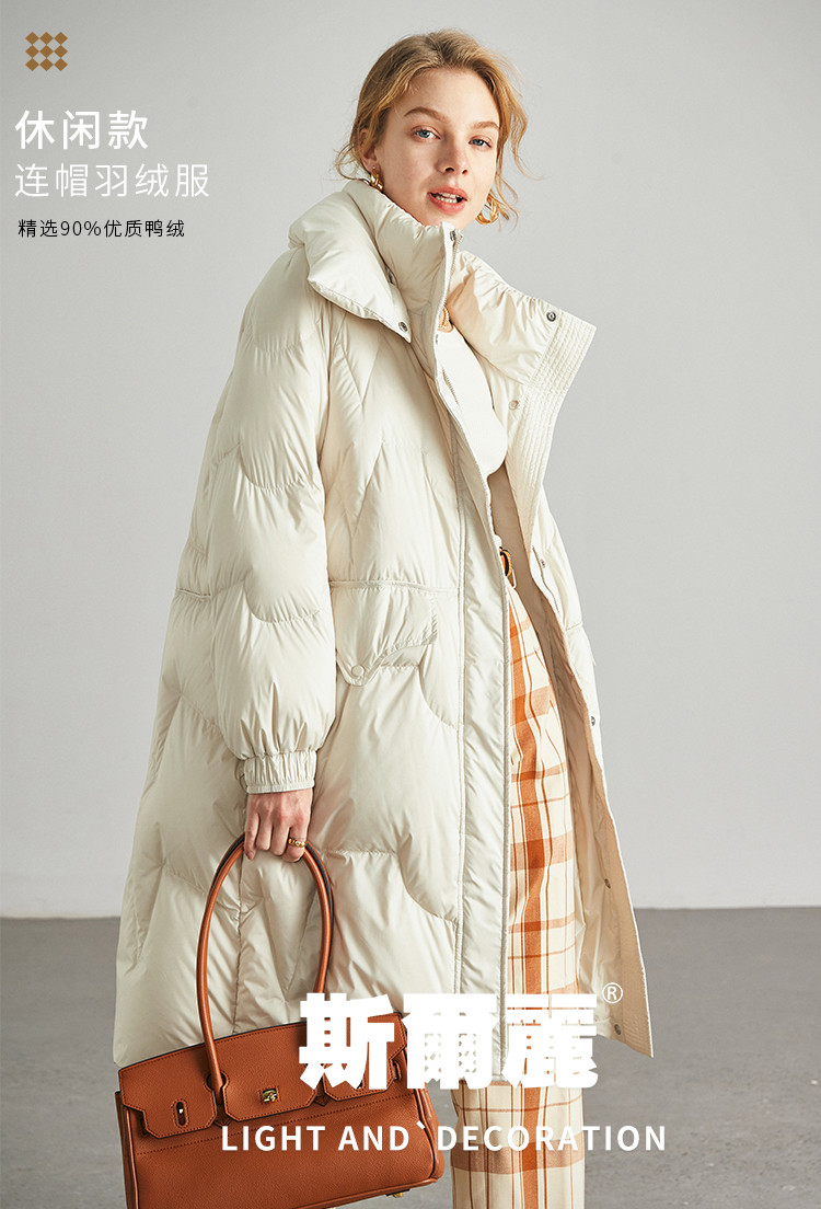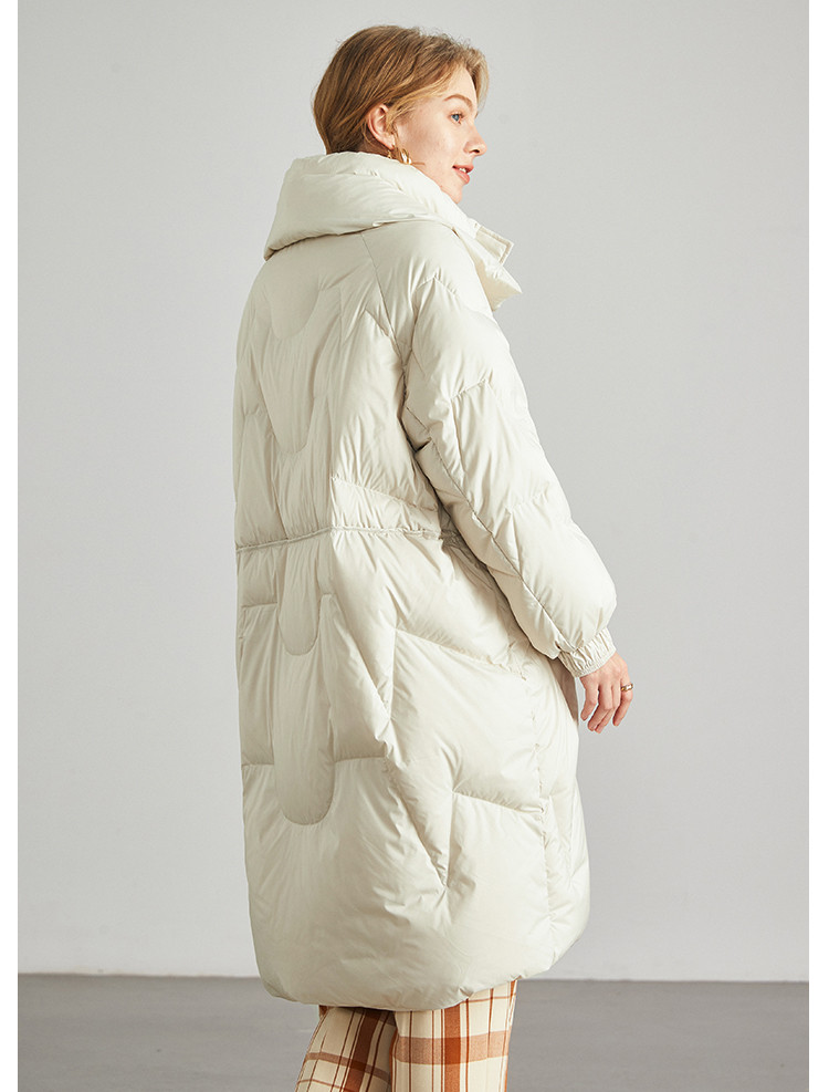 商品名称:女式双层立领优质90绒保暖宽松廓形休闲长款羽绒服 118431