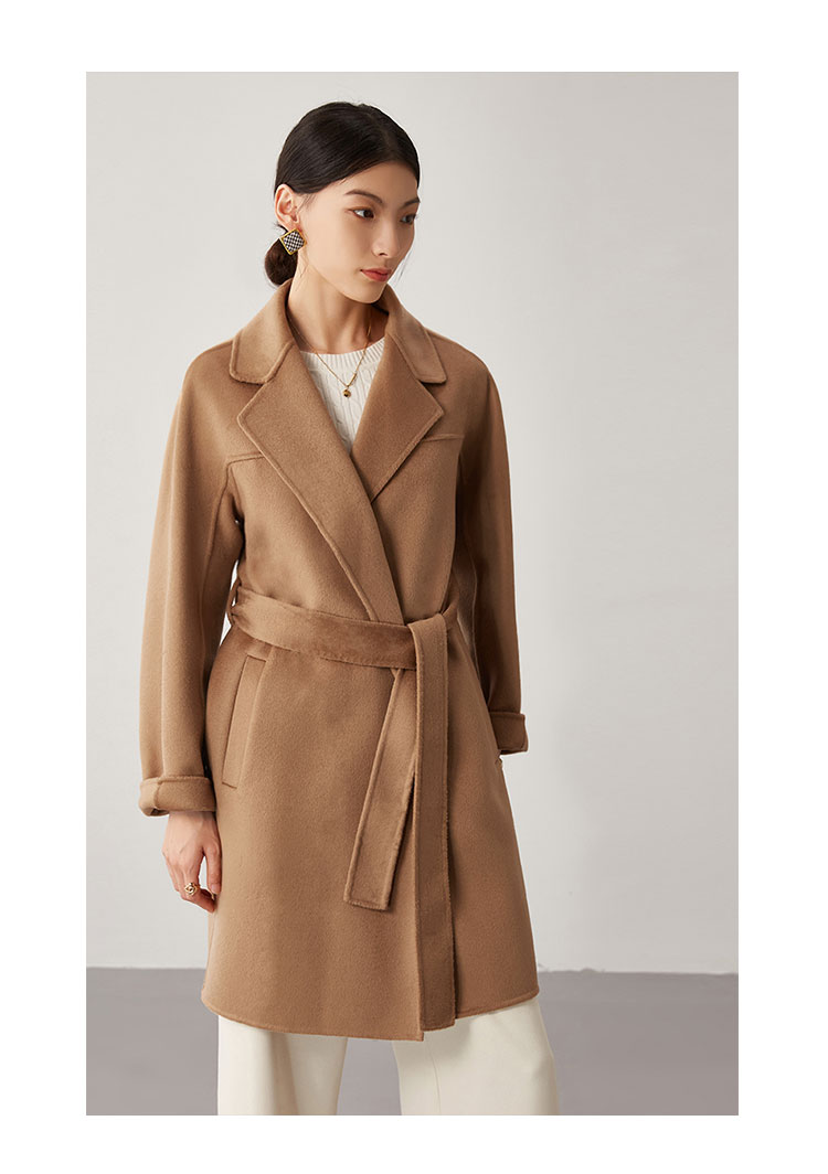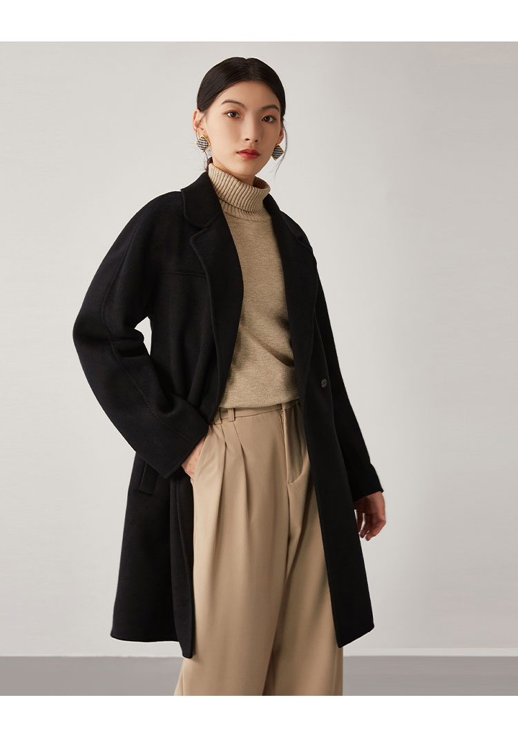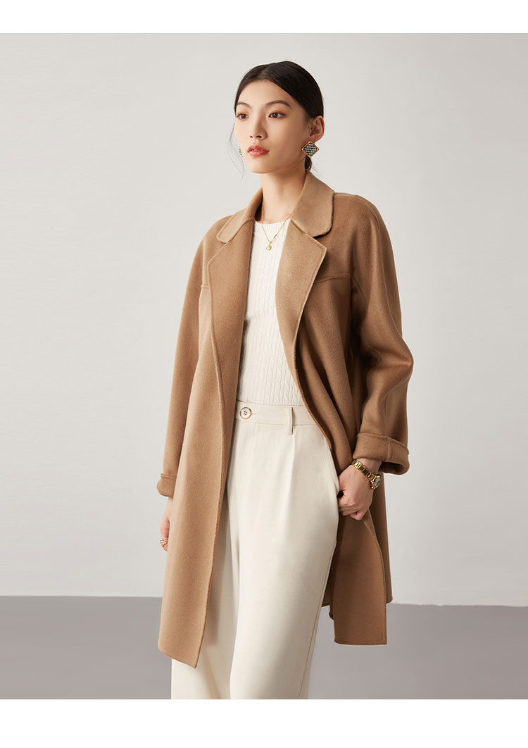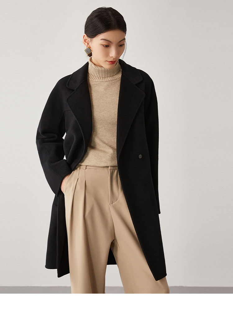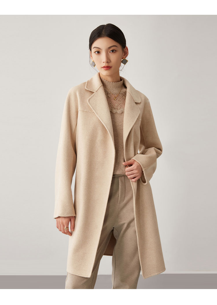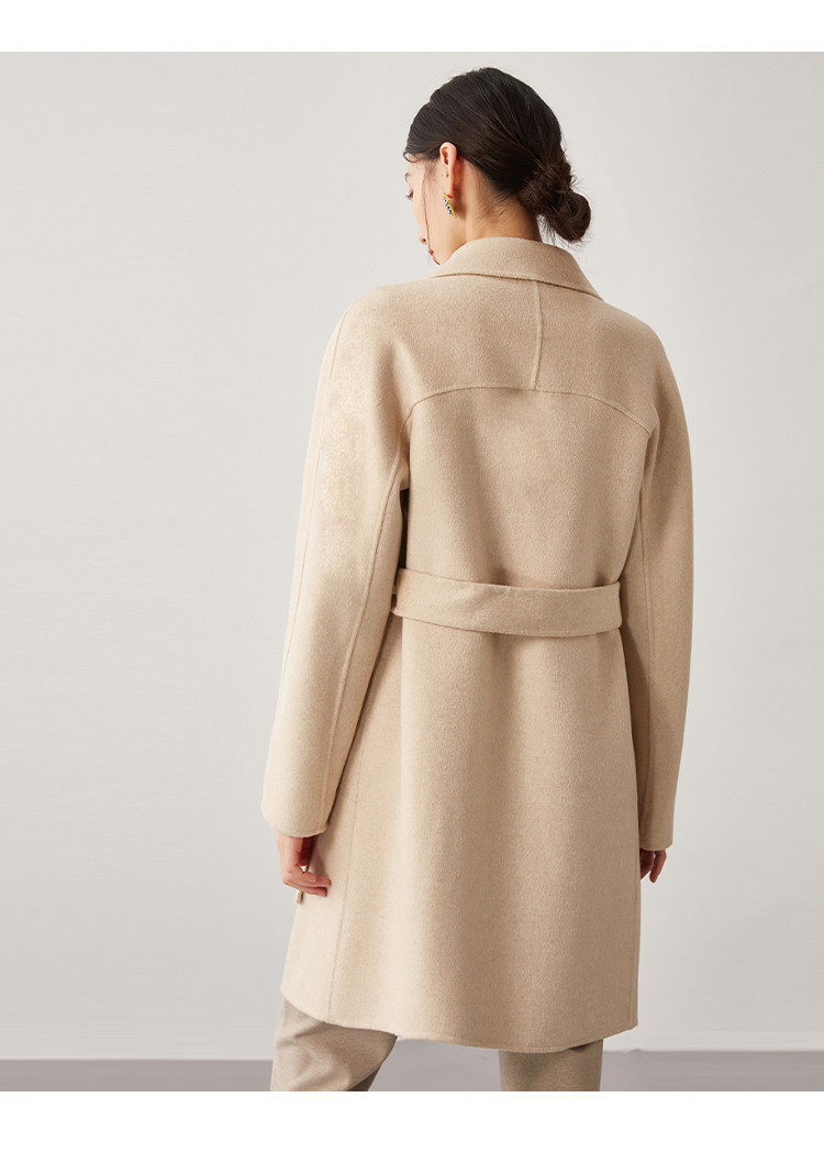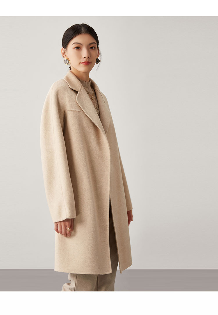 【桑蚕丝】秋冬简约大气绵羊毛大衣女双面呢中长款外套 813215