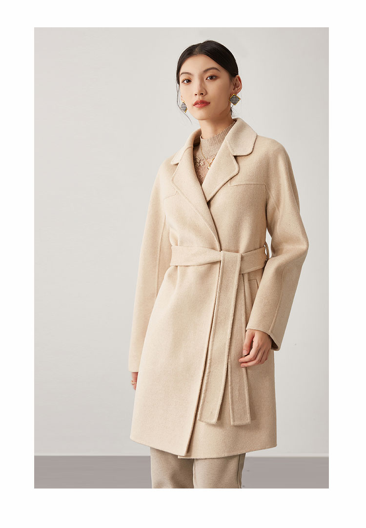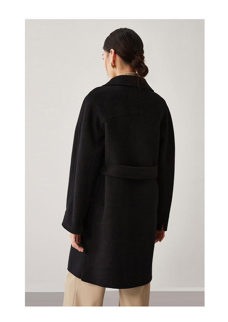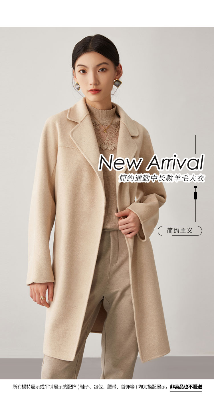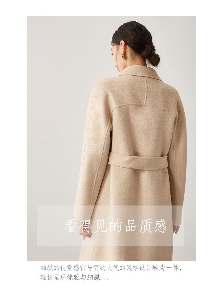商品名称:【桑蚕丝】秋冬简约大气绵羊毛大衣女双面呢中长款外套 813215