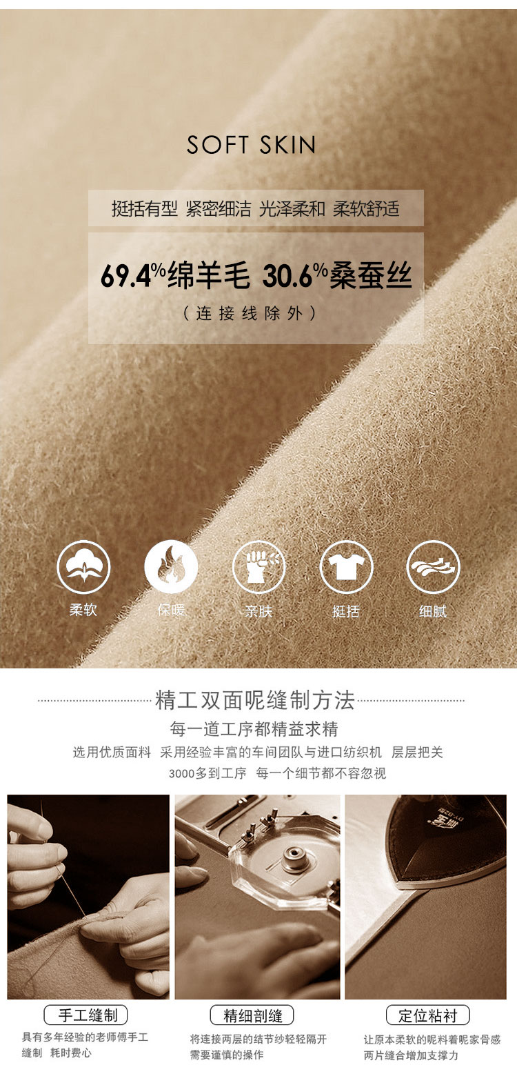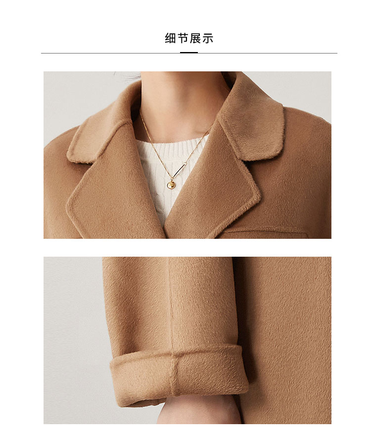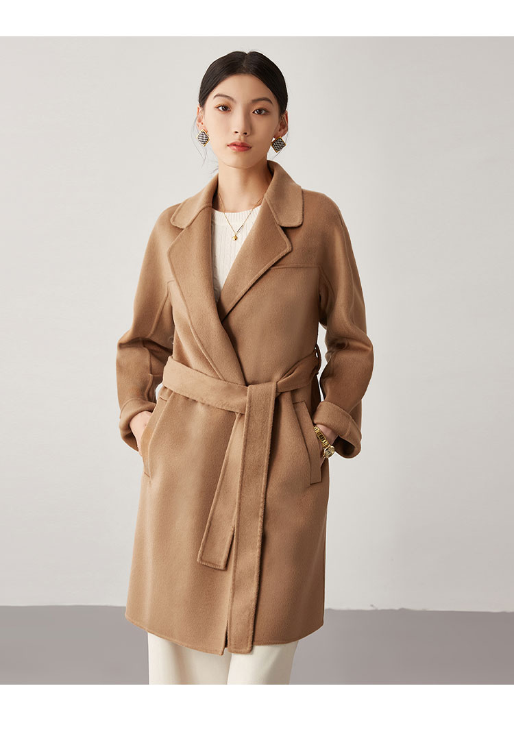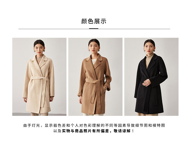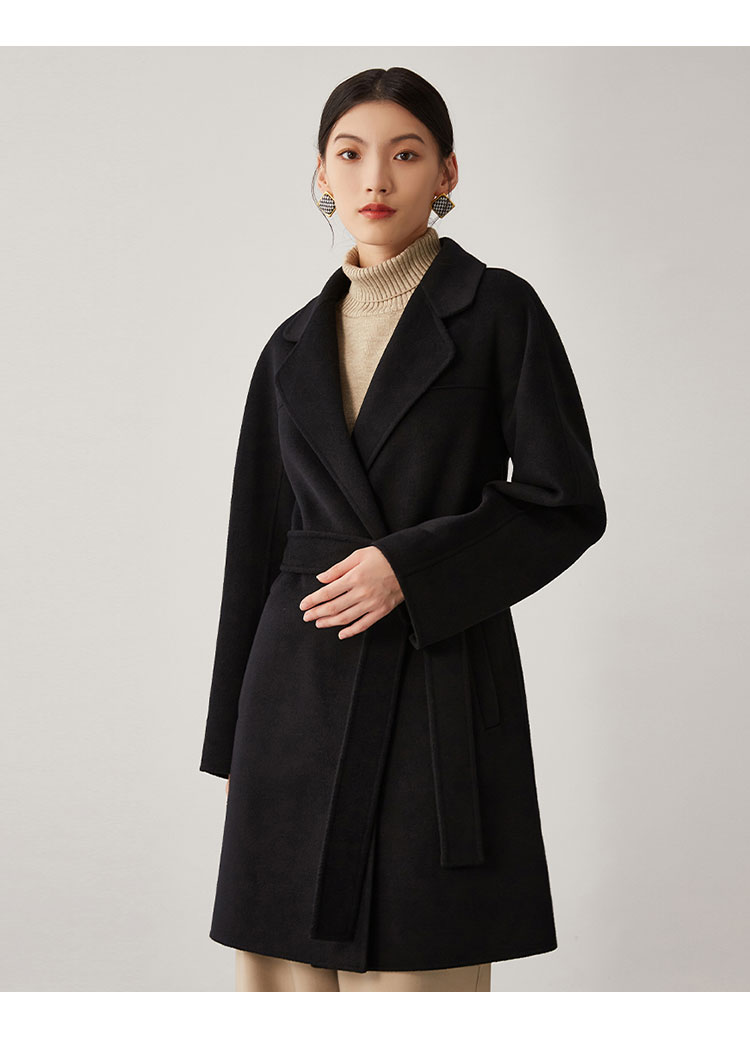 商品名称:【桑蚕丝】秋冬简约大气绵羊毛大衣女双面呢中长款外套 813215