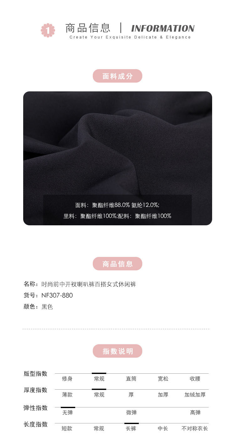 商品名称:[前中开衩垂感]夏季时尚喇叭裤百搭遮肉显瘦女式休闲裤 908831