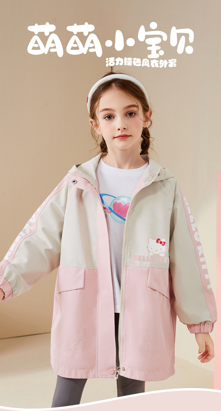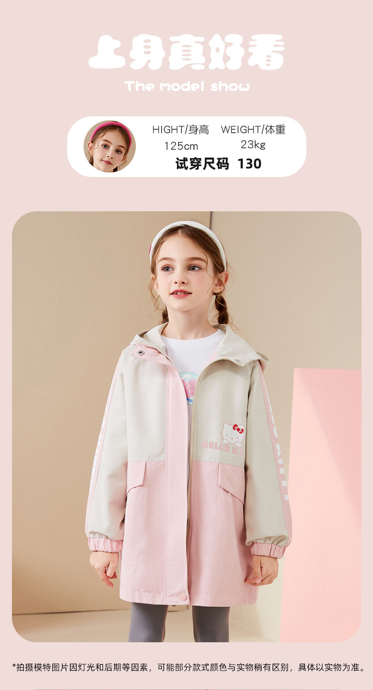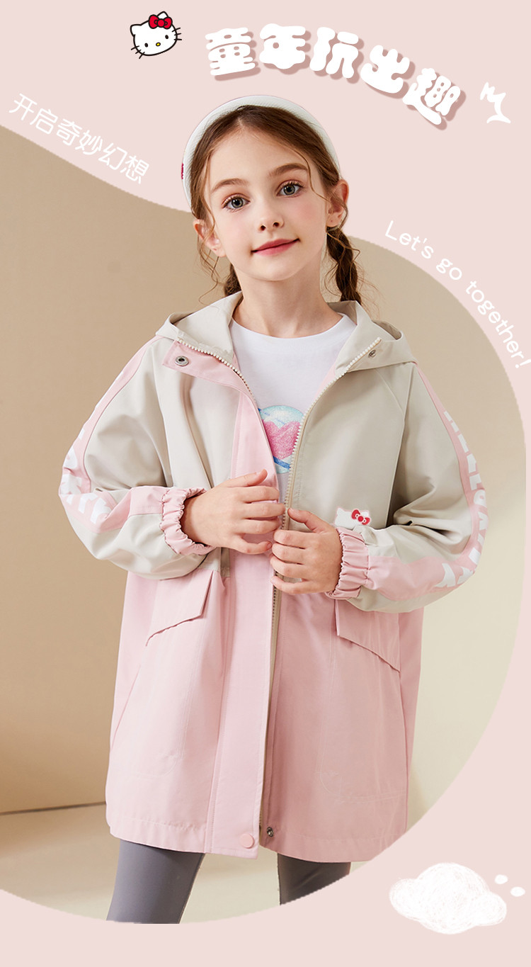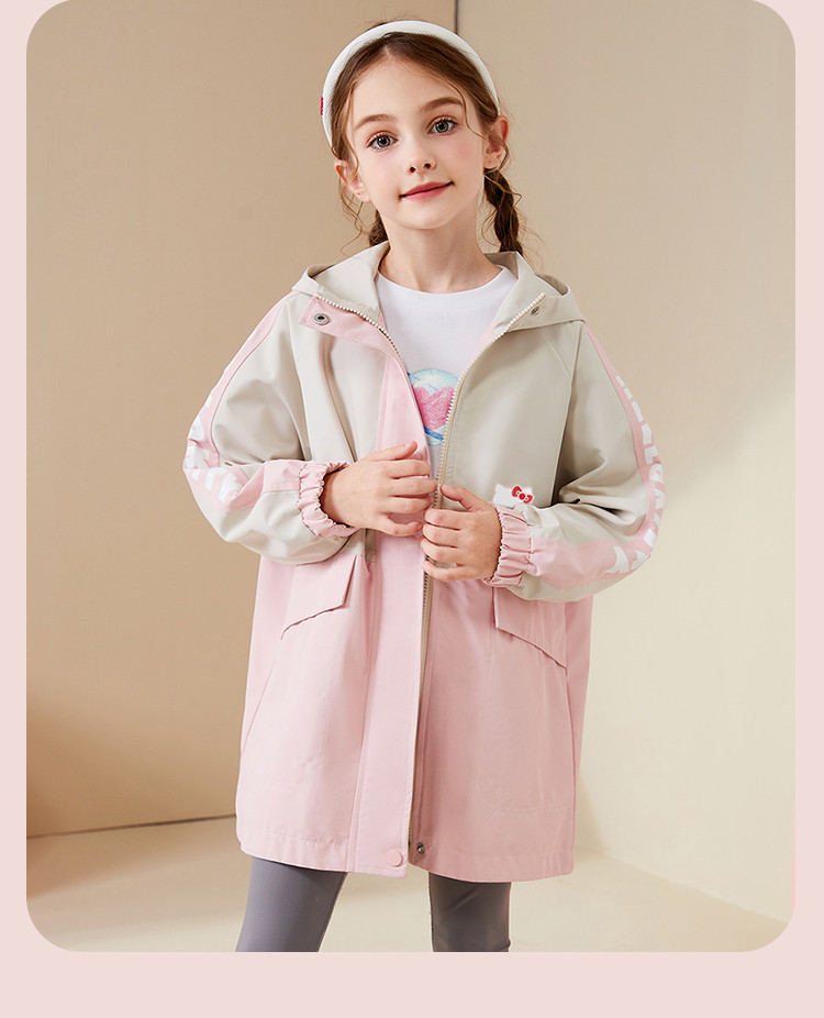 商品名称:女童外套秋中长款连帽风衣儿童外套户外防风露营上衣 492830