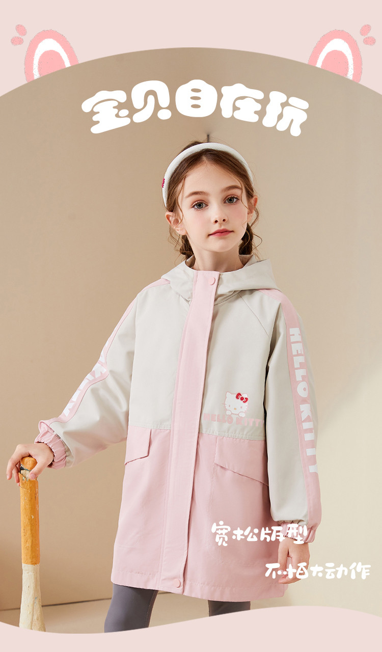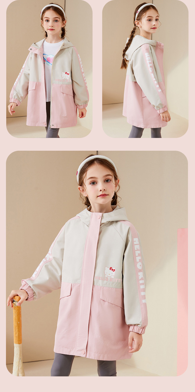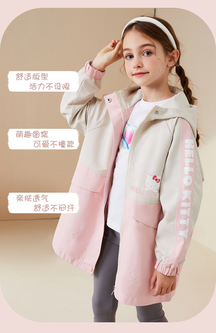 商品名称:女童外套秋中长款连帽风衣儿童外套户外防风露营上衣 492830