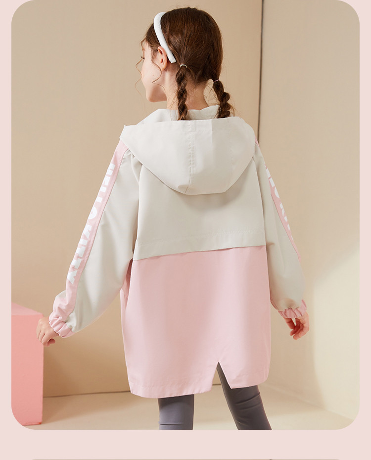 女童外套秋中长款连帽风衣儿童外套户外防风露营上衣 492830