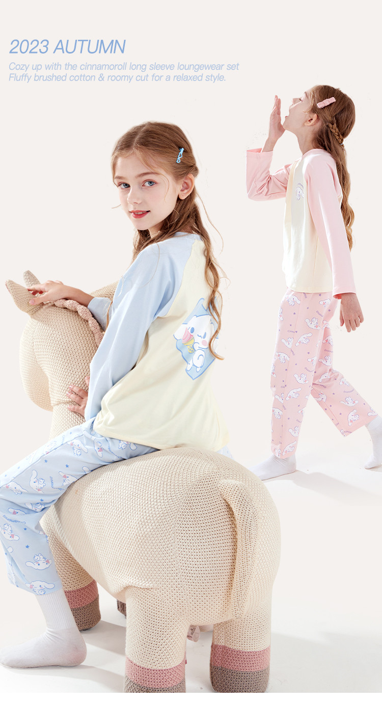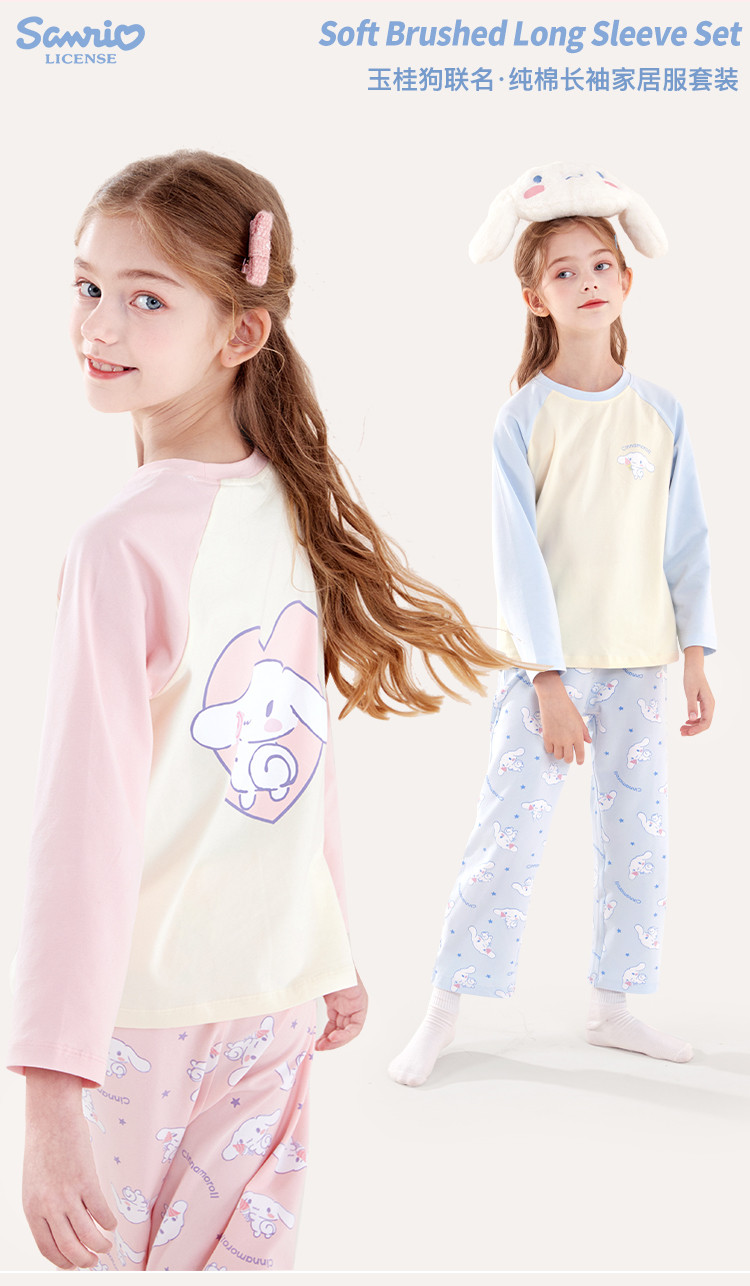 商品名称:玉桂狗联名女童棉家居服春秋季新款睡衣套装儿童空调服秋衣秋裤 234689