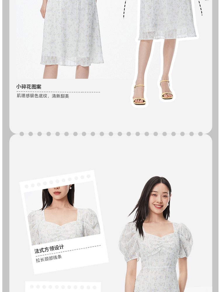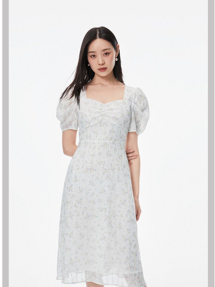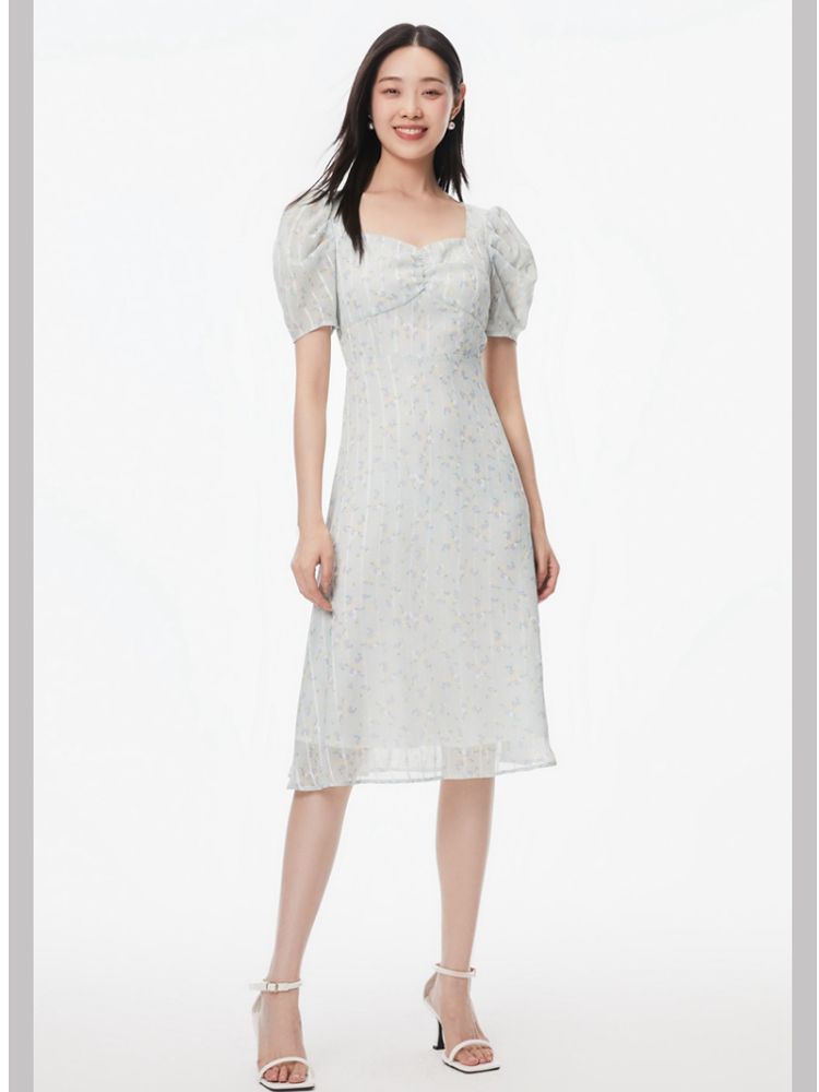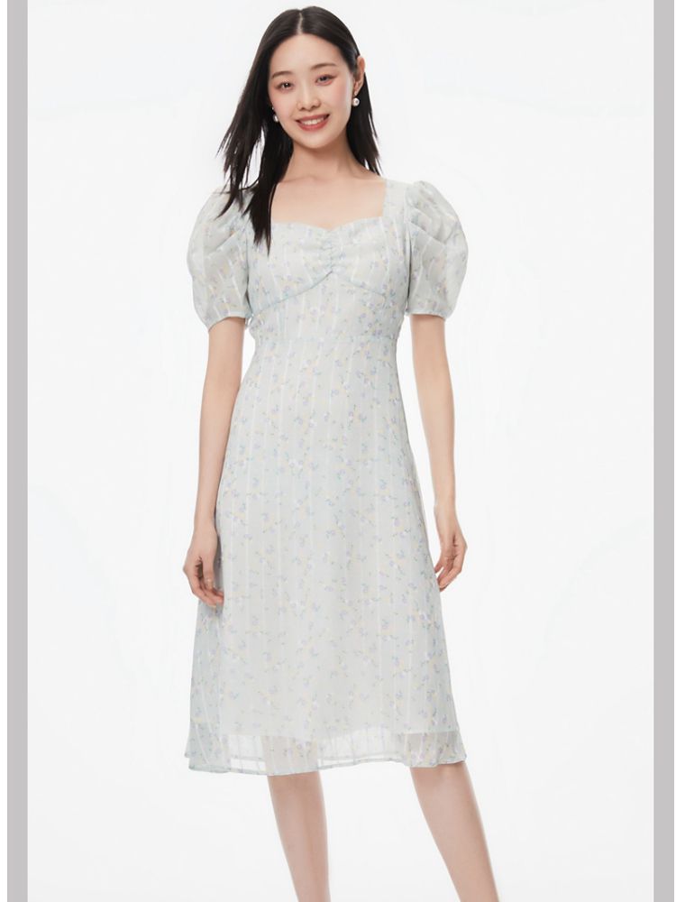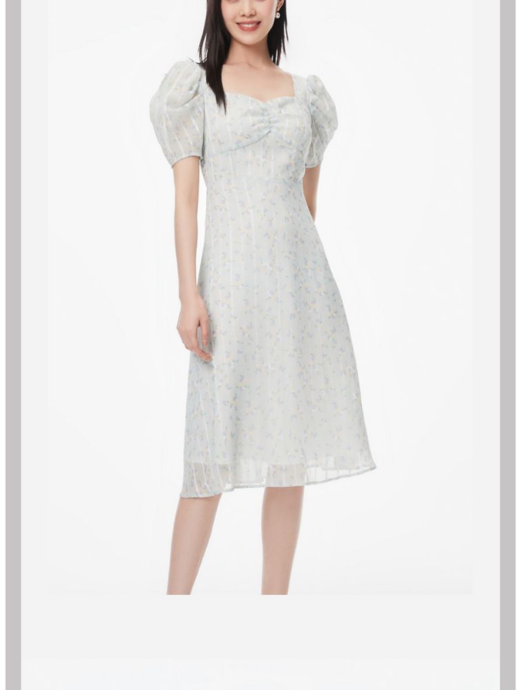 商品名称:【印花茶歇裙】夏款方领泡泡袖收腰优雅甜美连衣裙 762321