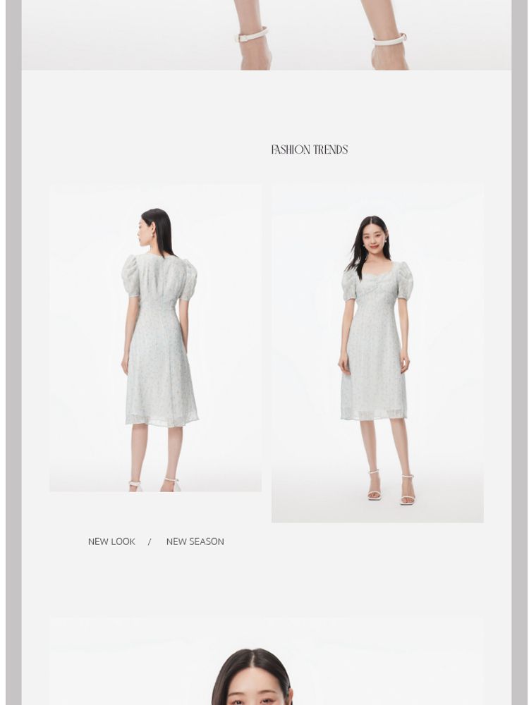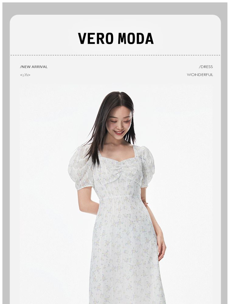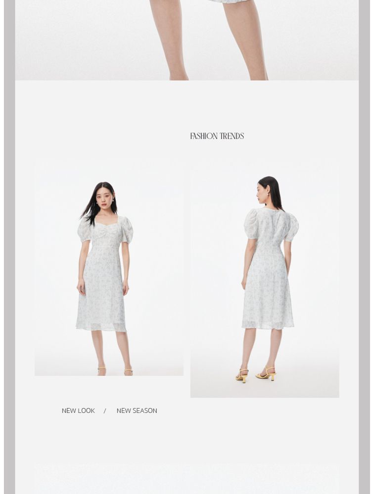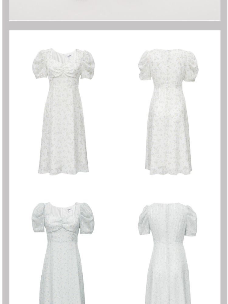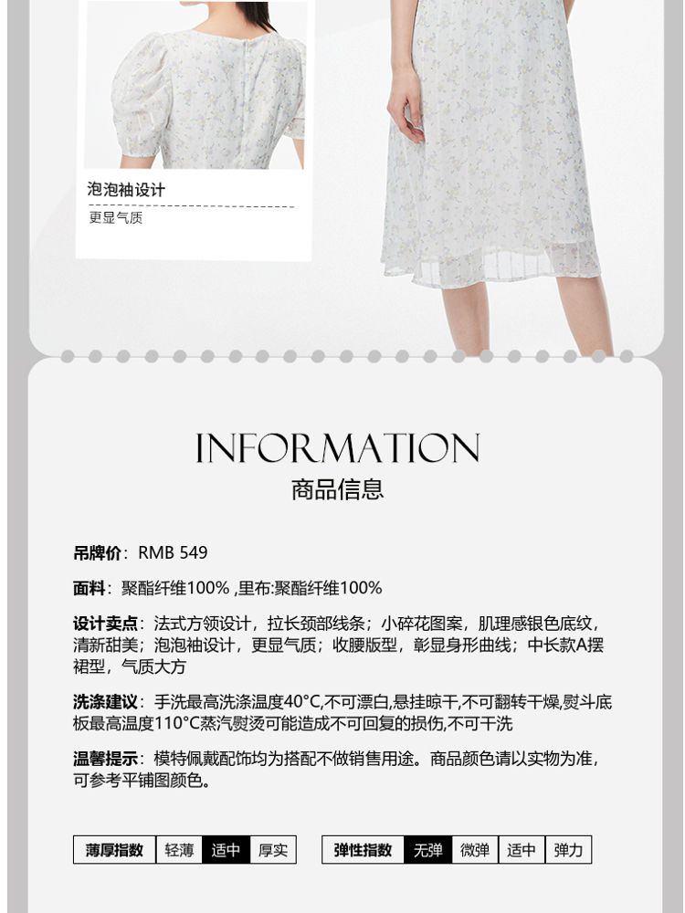 商品名称:【印花茶歇裙】夏款方领泡泡袖收腰优雅甜美连衣裙 762321