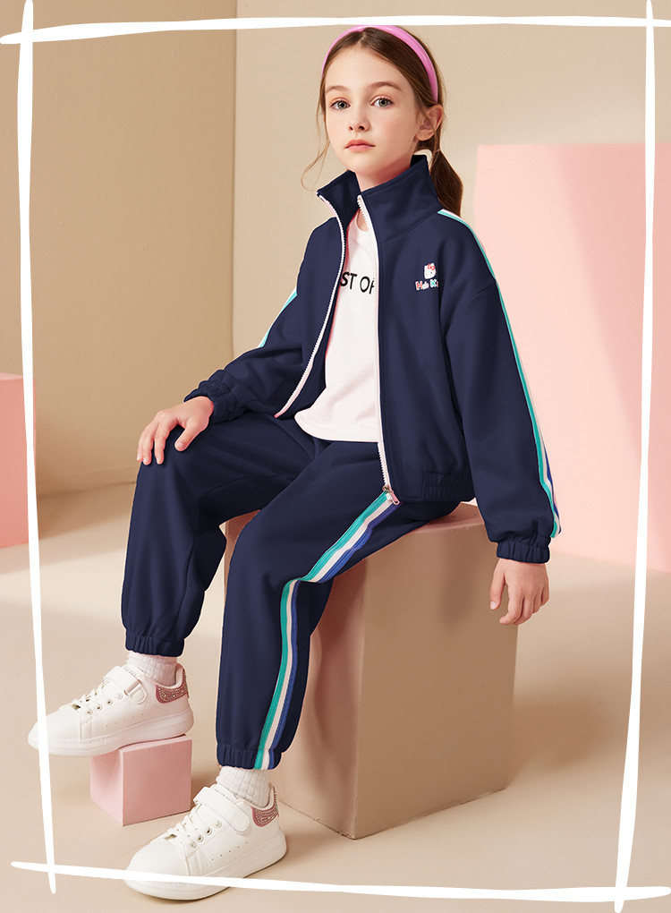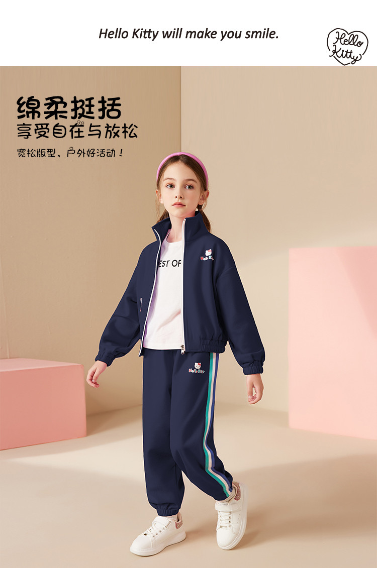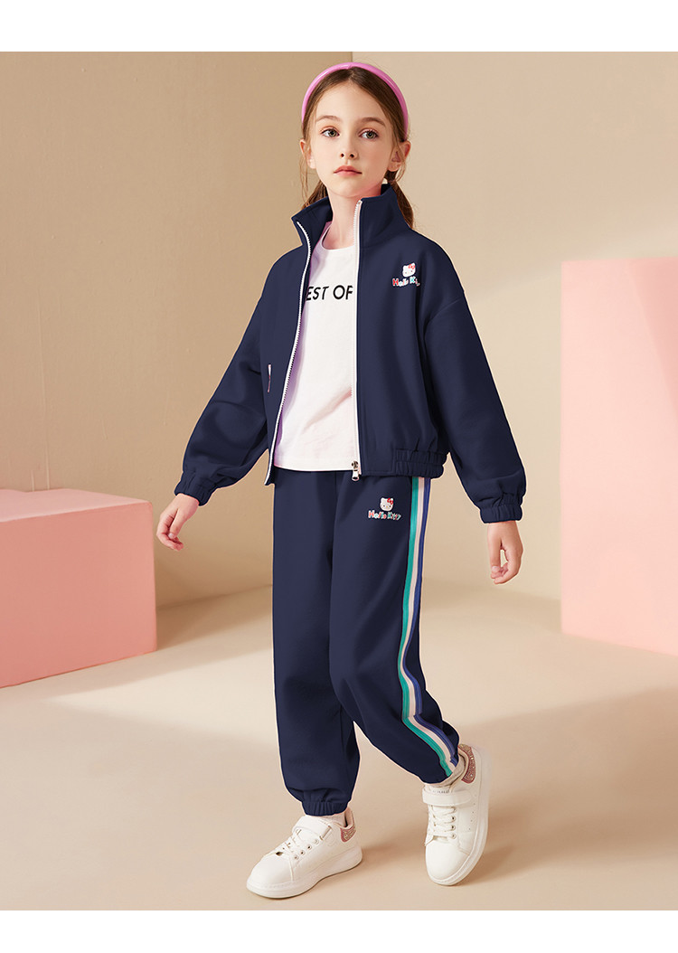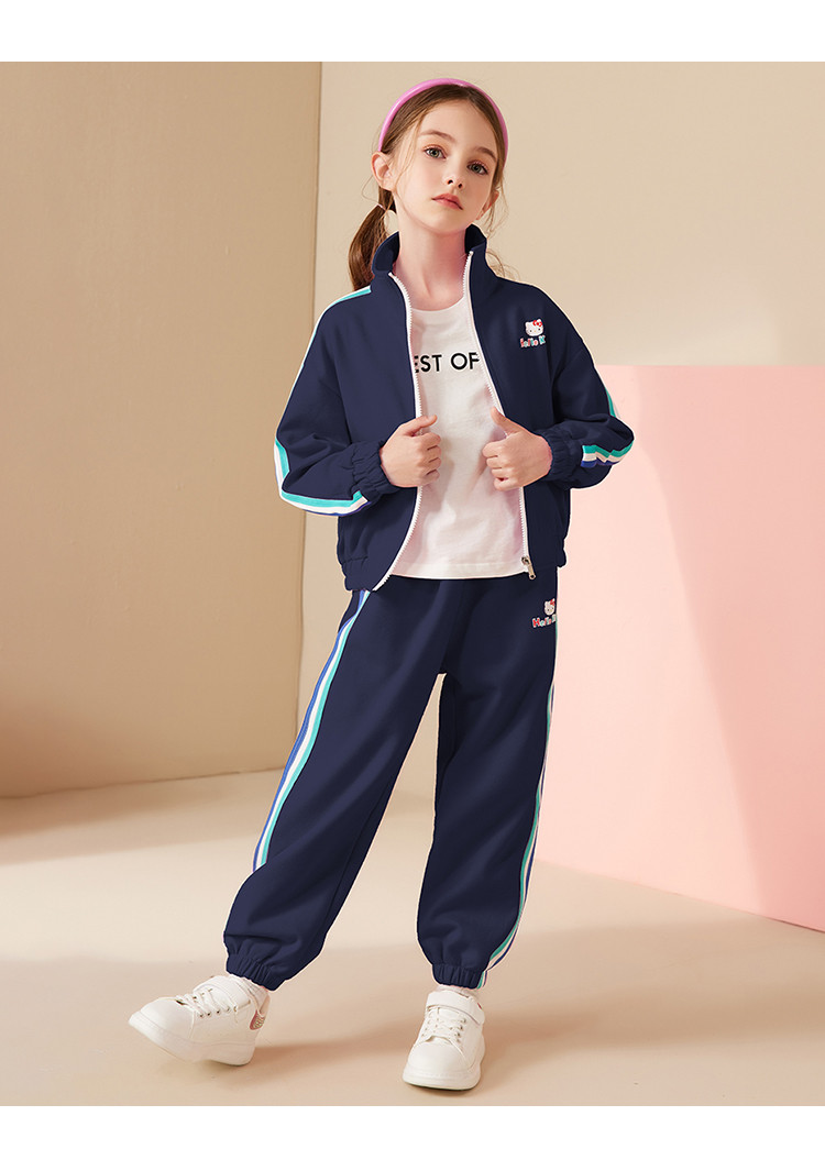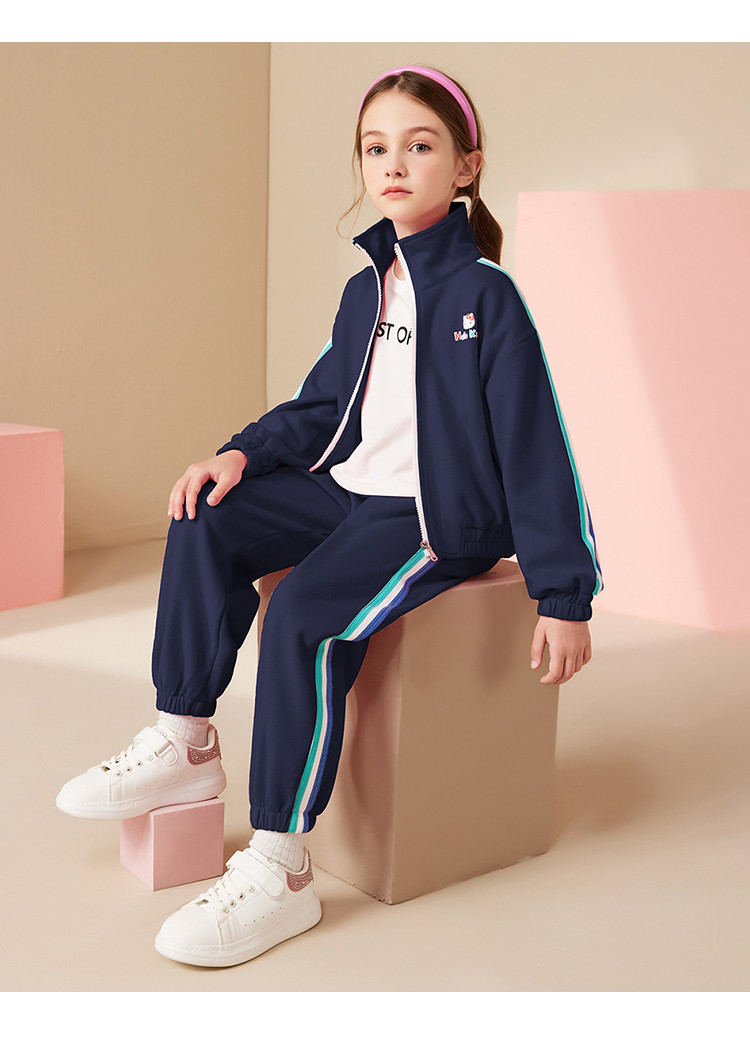 商品名称:女童春季套装2025款中大童运动开衫套装户外跑步长袖两件套潮 483038