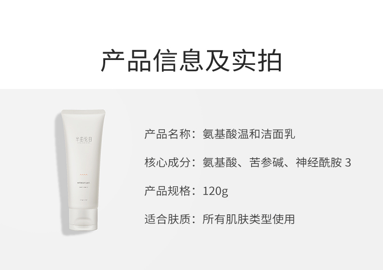 商品名称:半亩花田 氨基酸温和洁面乳 120ml 深层清洁温和控油补水保湿 敏感肌洁面