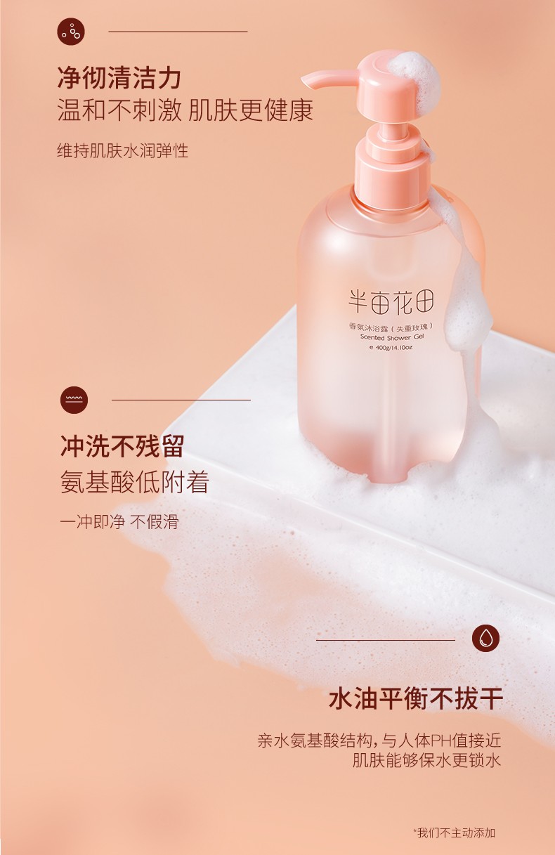 半亩花田 氨基酸香氛沐浴露 400g 庭院茉莉/失重玫瑰 滋润清洁持久留香