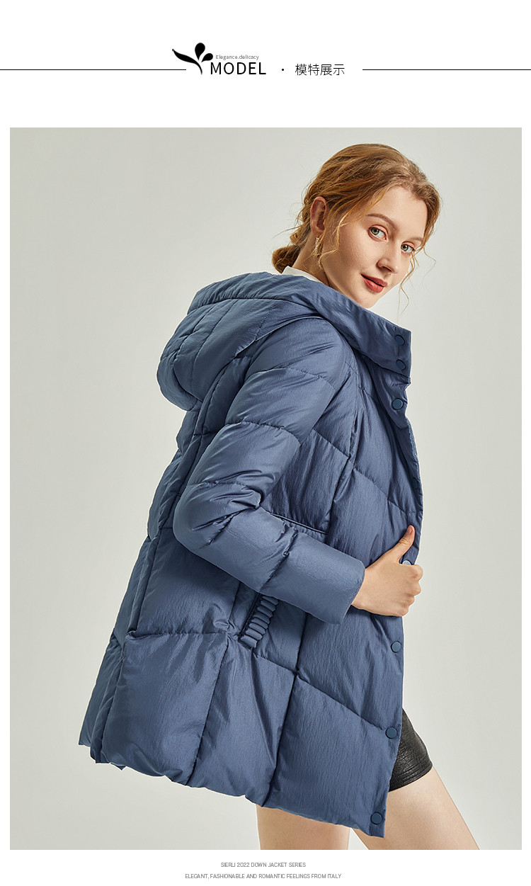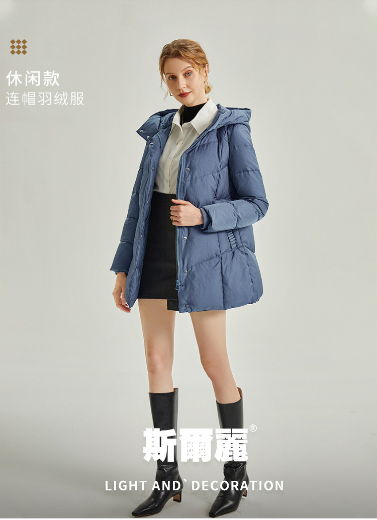 商品名称:【鹅绒】简约休闲大码防风连帽女士短款羽绒服 686879