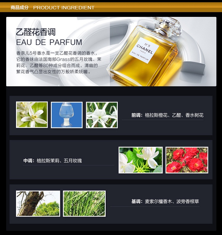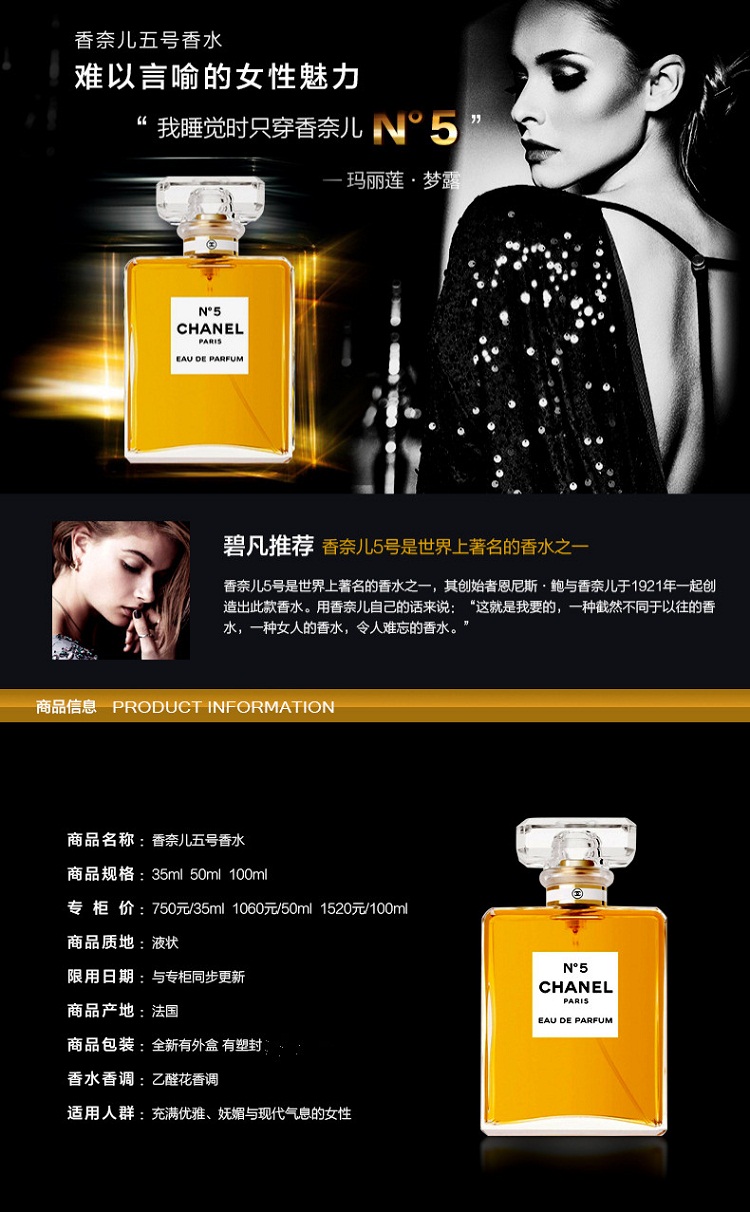 商品名称:Chanel/香奈儿 5号经典持久留香浓香水 35ml/50ml/100ml