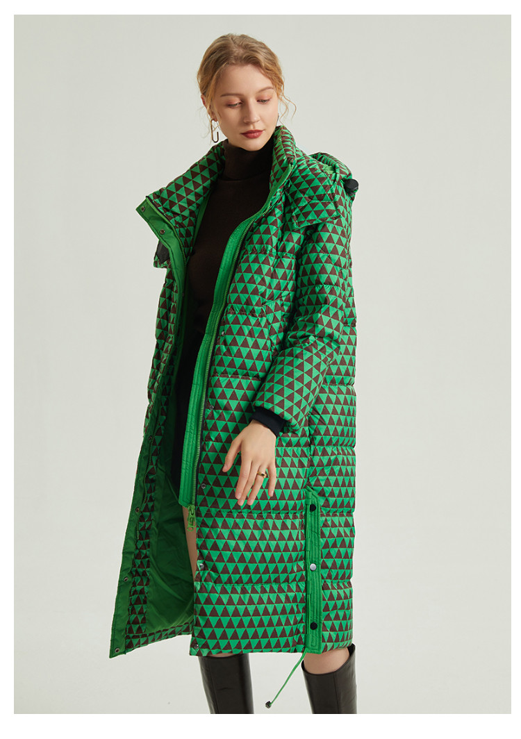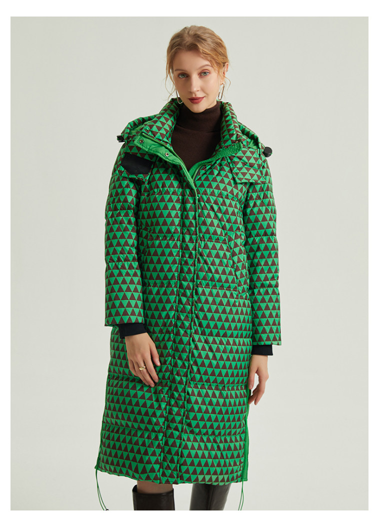 都市休闲长款女士连帽宽松舒适直筒加厚羽绒服 337823