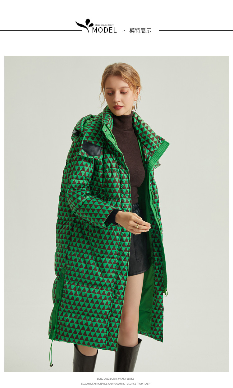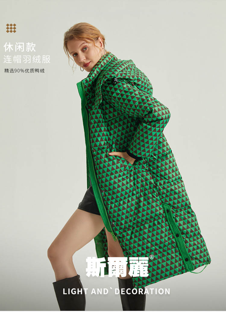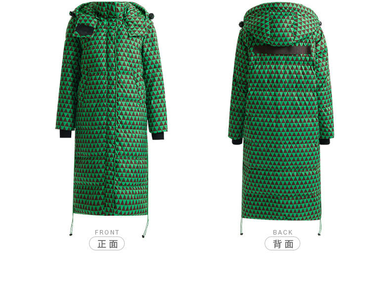 商品名称:都市休闲长款女士连帽宽松舒适直筒加厚羽绒服 337823