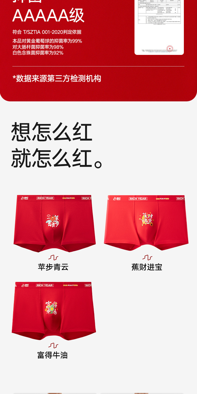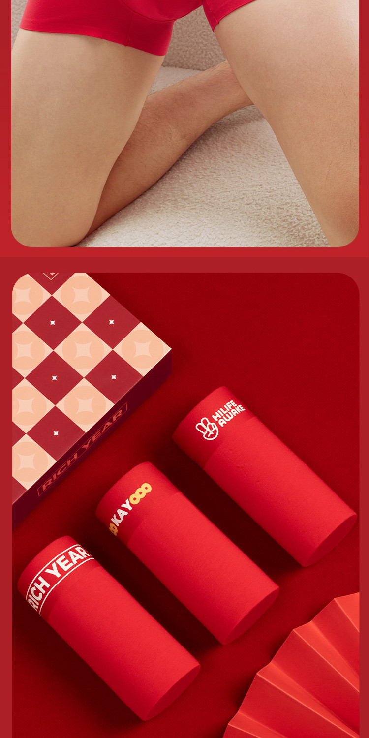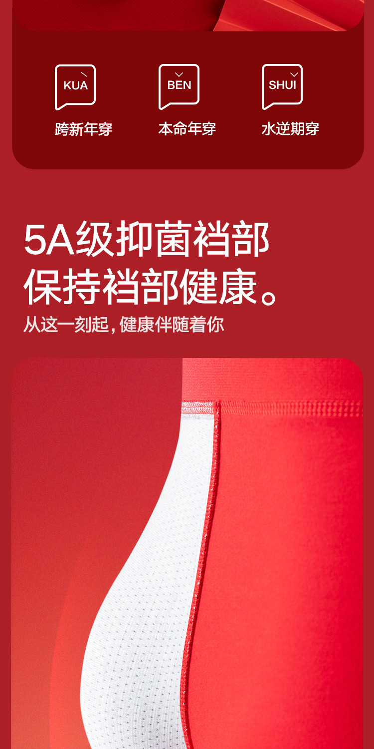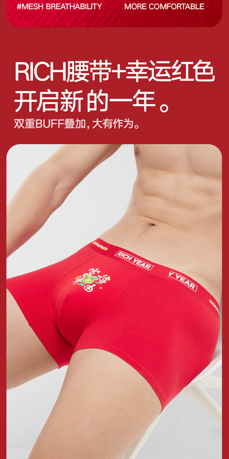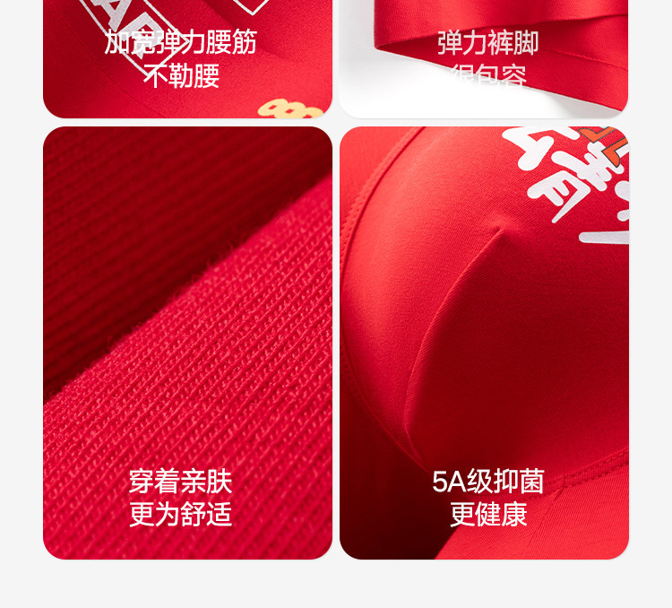 商品名称:【鸿运礼盒 5A抑菌裆】棉柔内裤男士喜庆本命红色平角裤3条装 500954