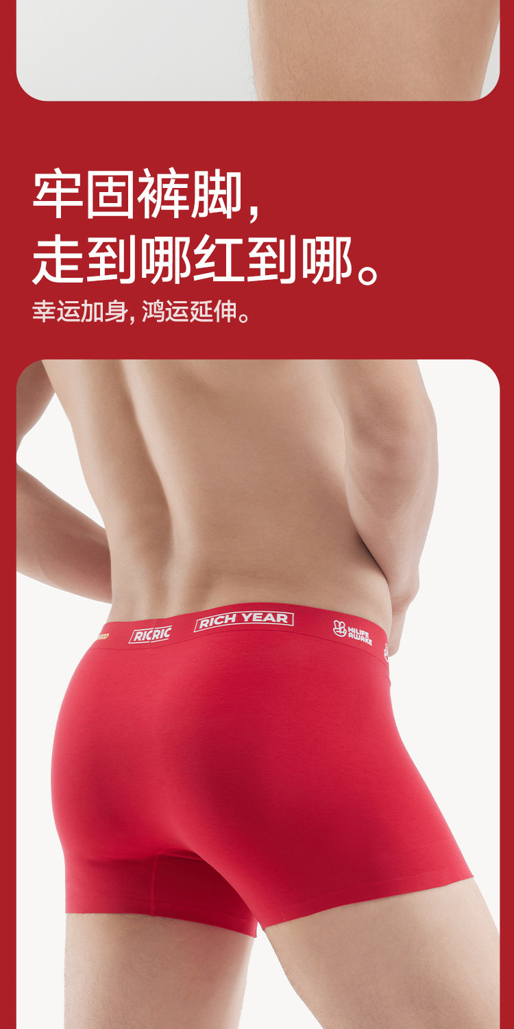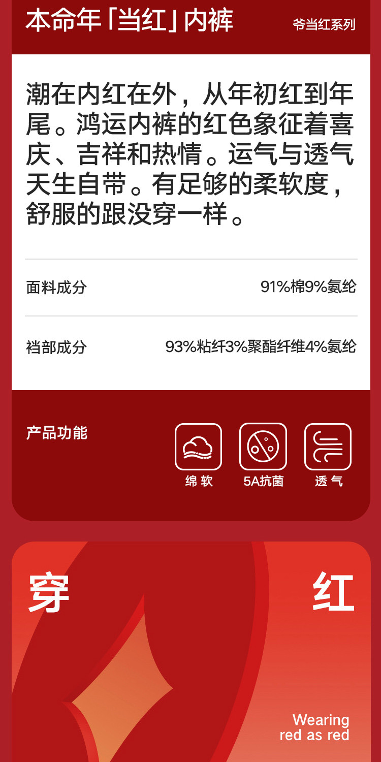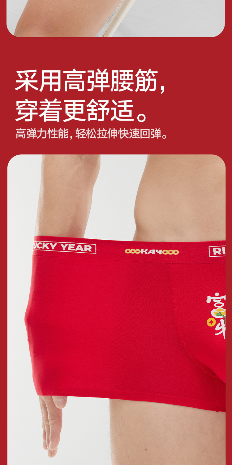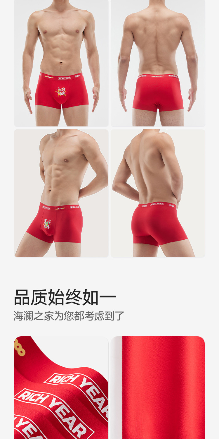商品名称:【鸿运礼盒 5A抑菌裆】棉柔内裤男士喜庆本命红色平角裤3条装 500954