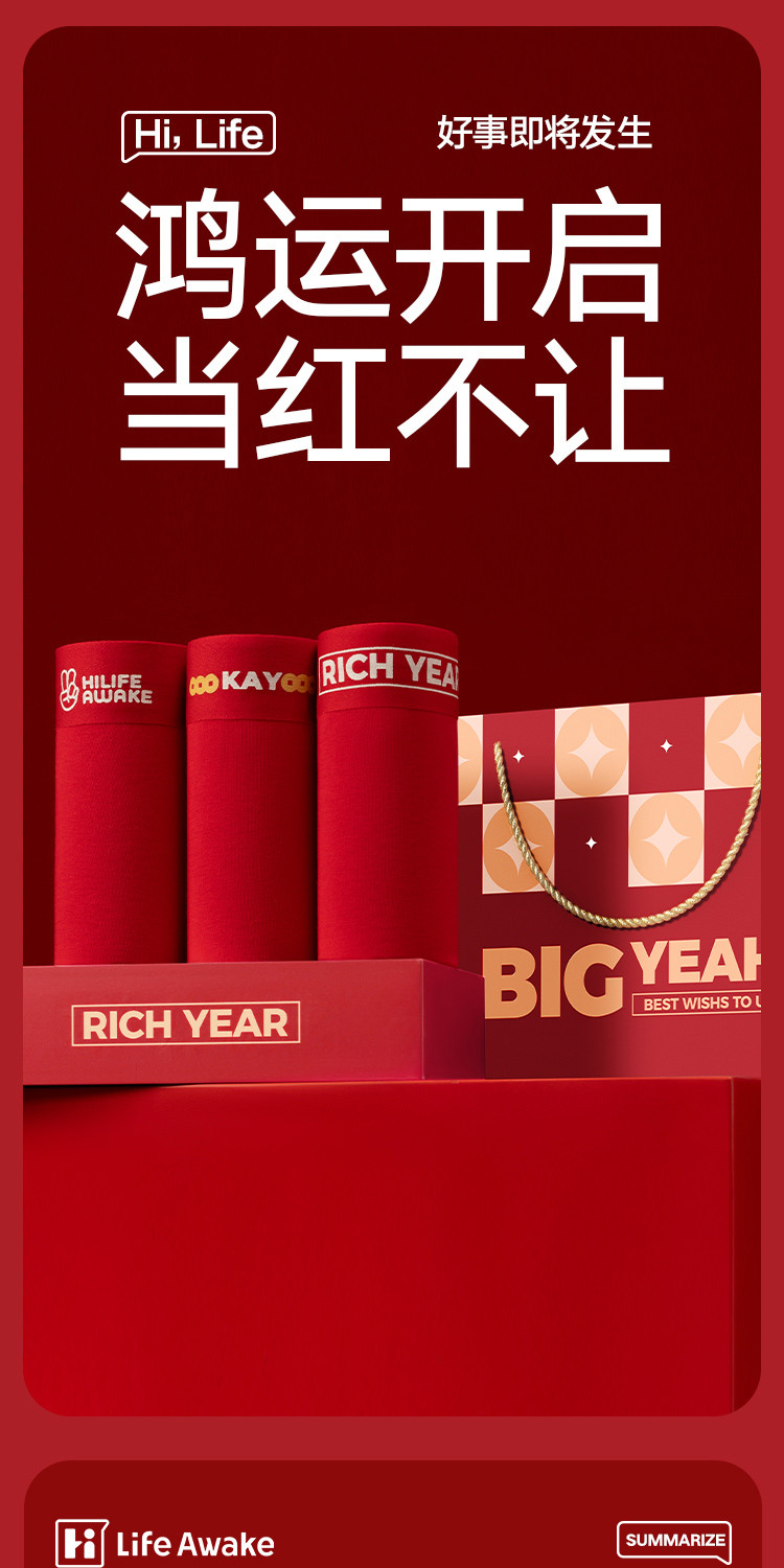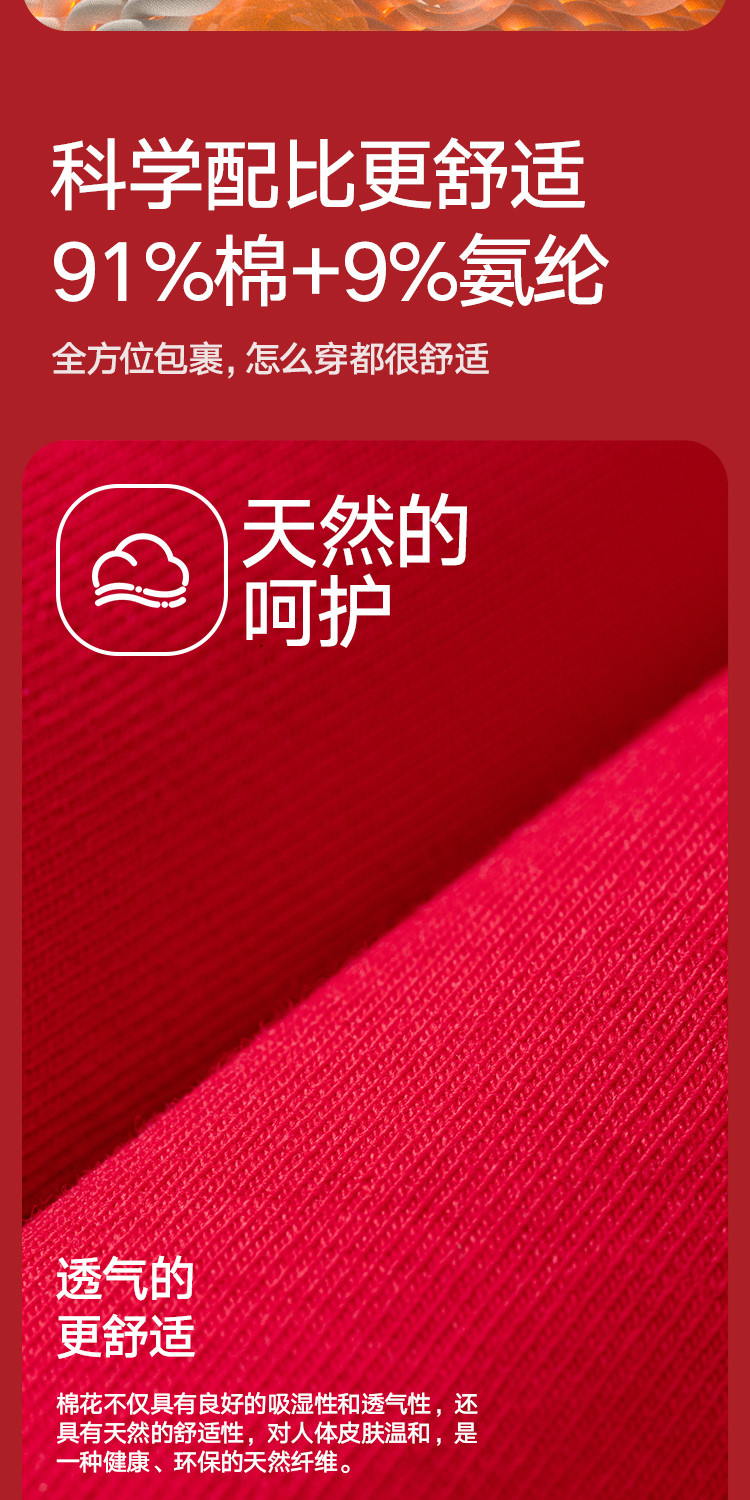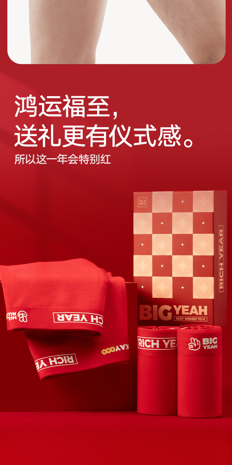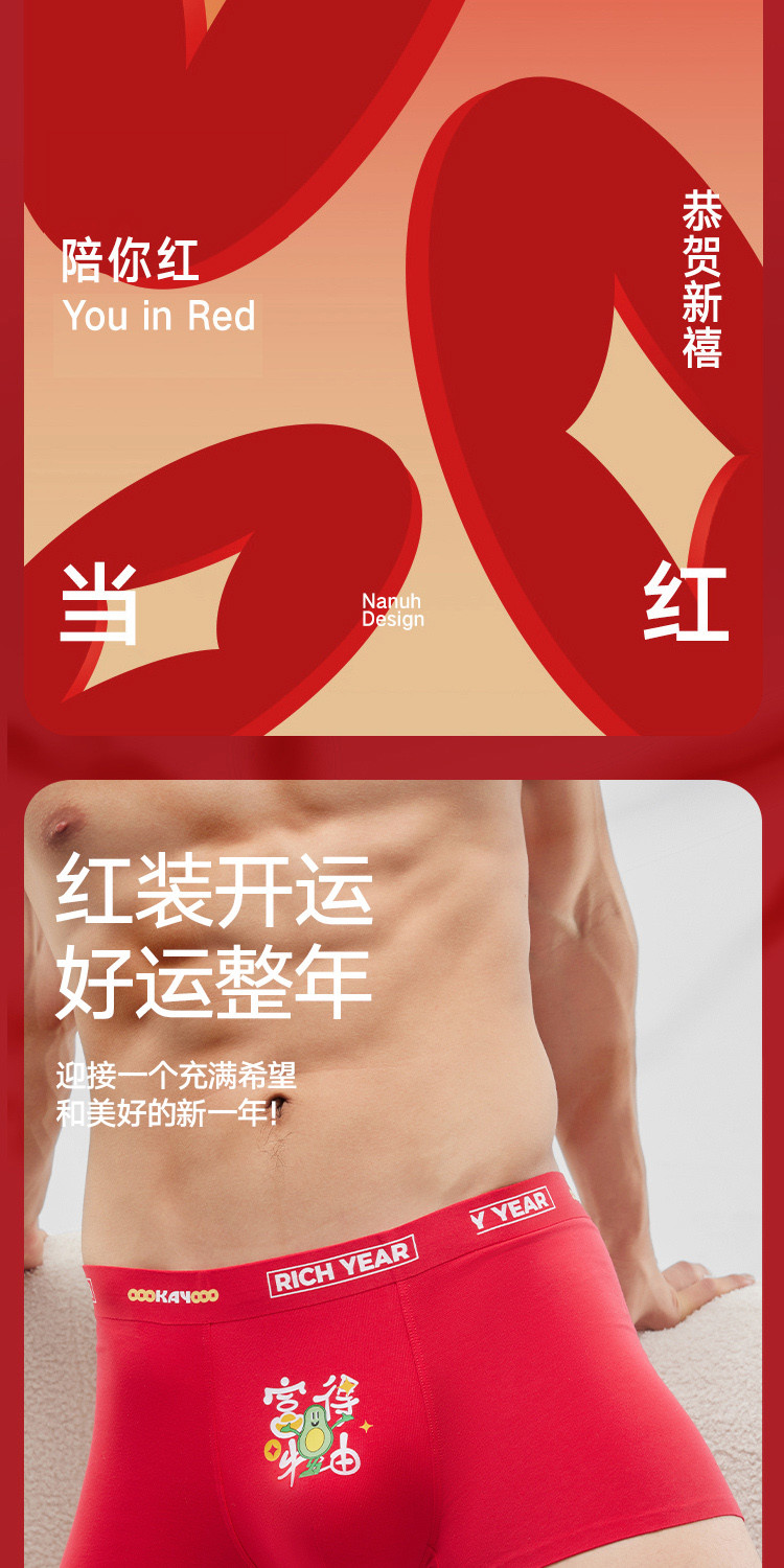 商品名称:【鸿运礼盒 5A抑菌裆】棉柔内裤男士喜庆本命红色平角裤3条装 500954