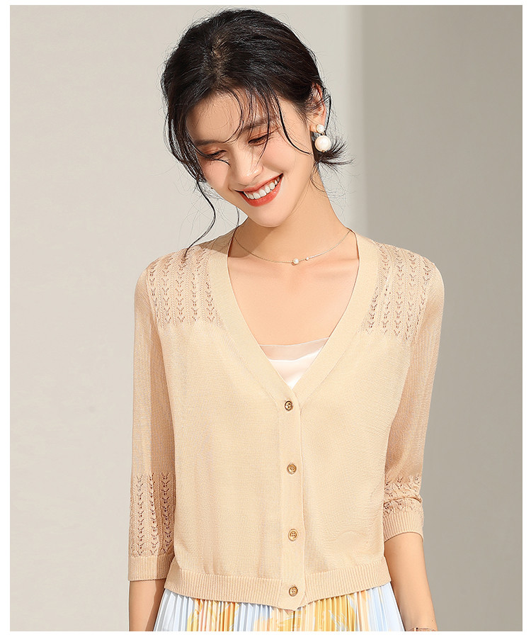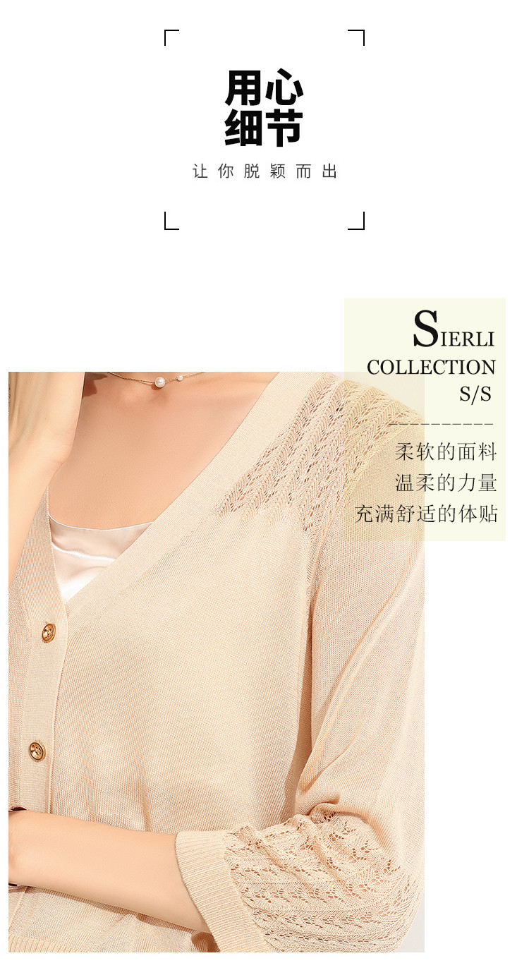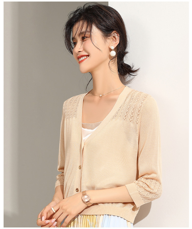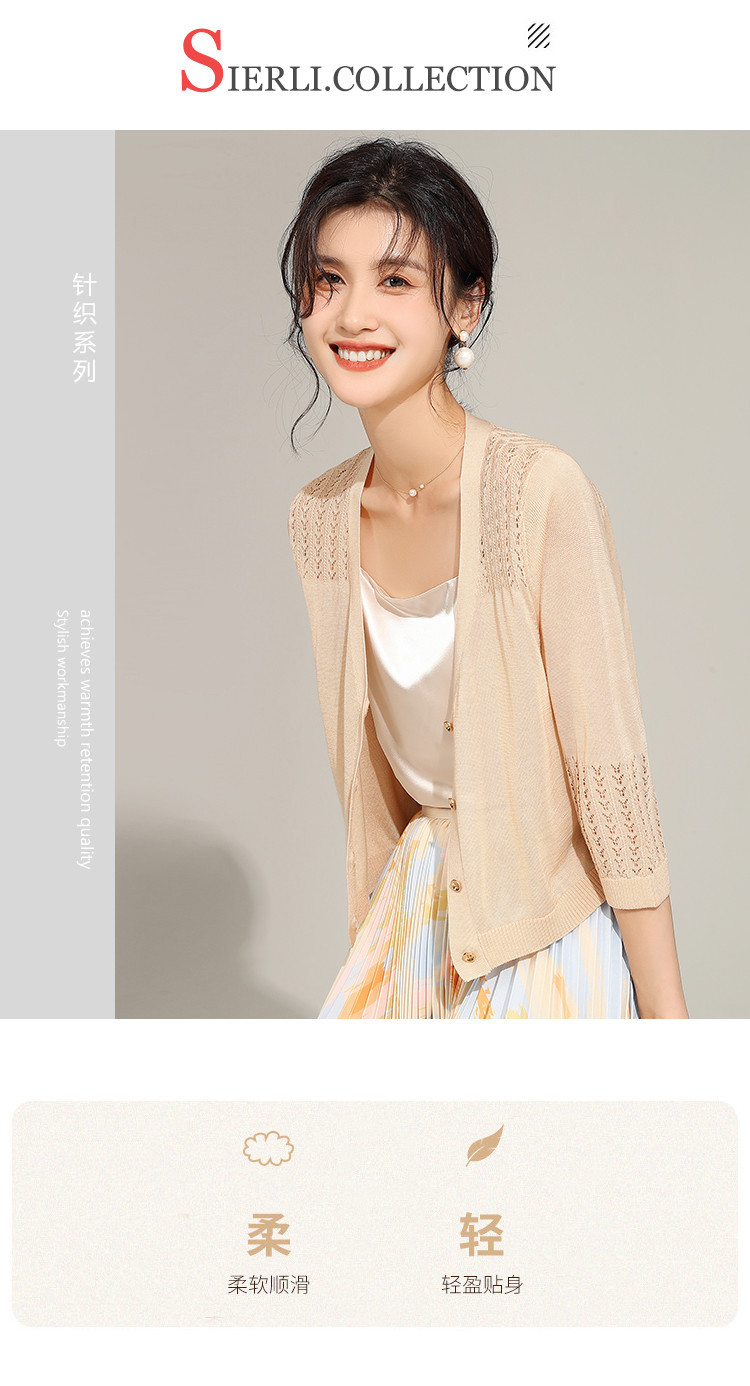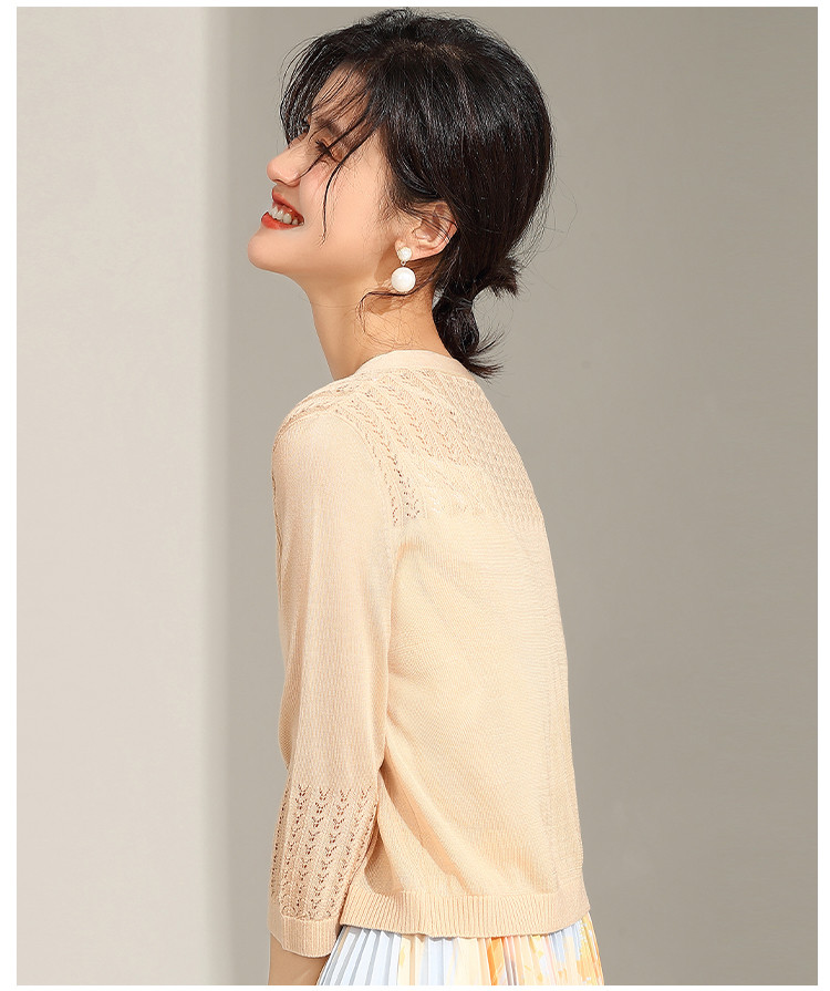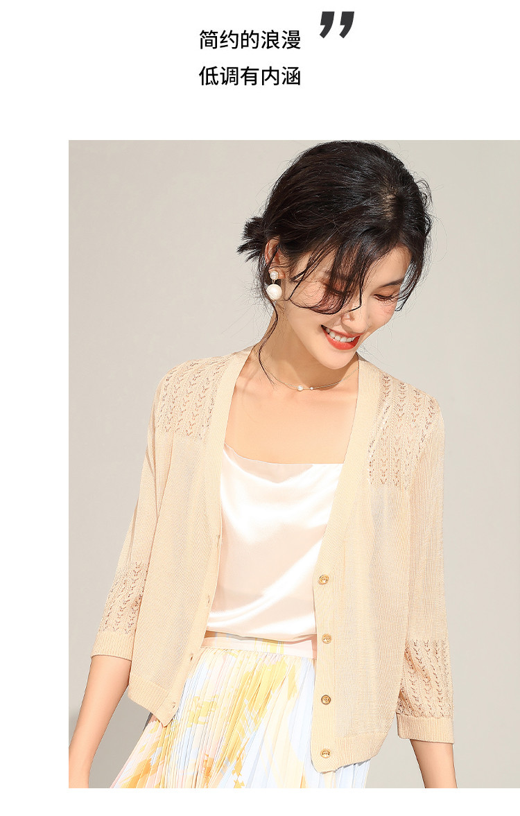 商品名称:【含桑蚕丝含莱赛尔】夏季外套女薄款披肩外搭镂空空调衫外套女夏 246239