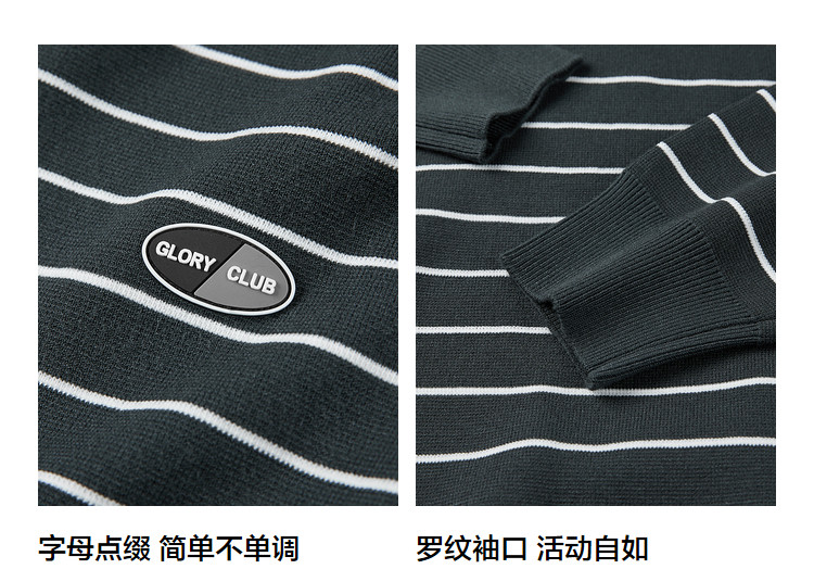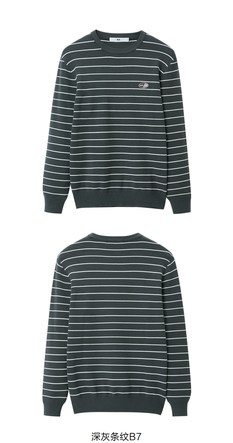 商品名称:【舒适圆领】春秋热销保暖撞色条纹男士长袖针织衫 767112