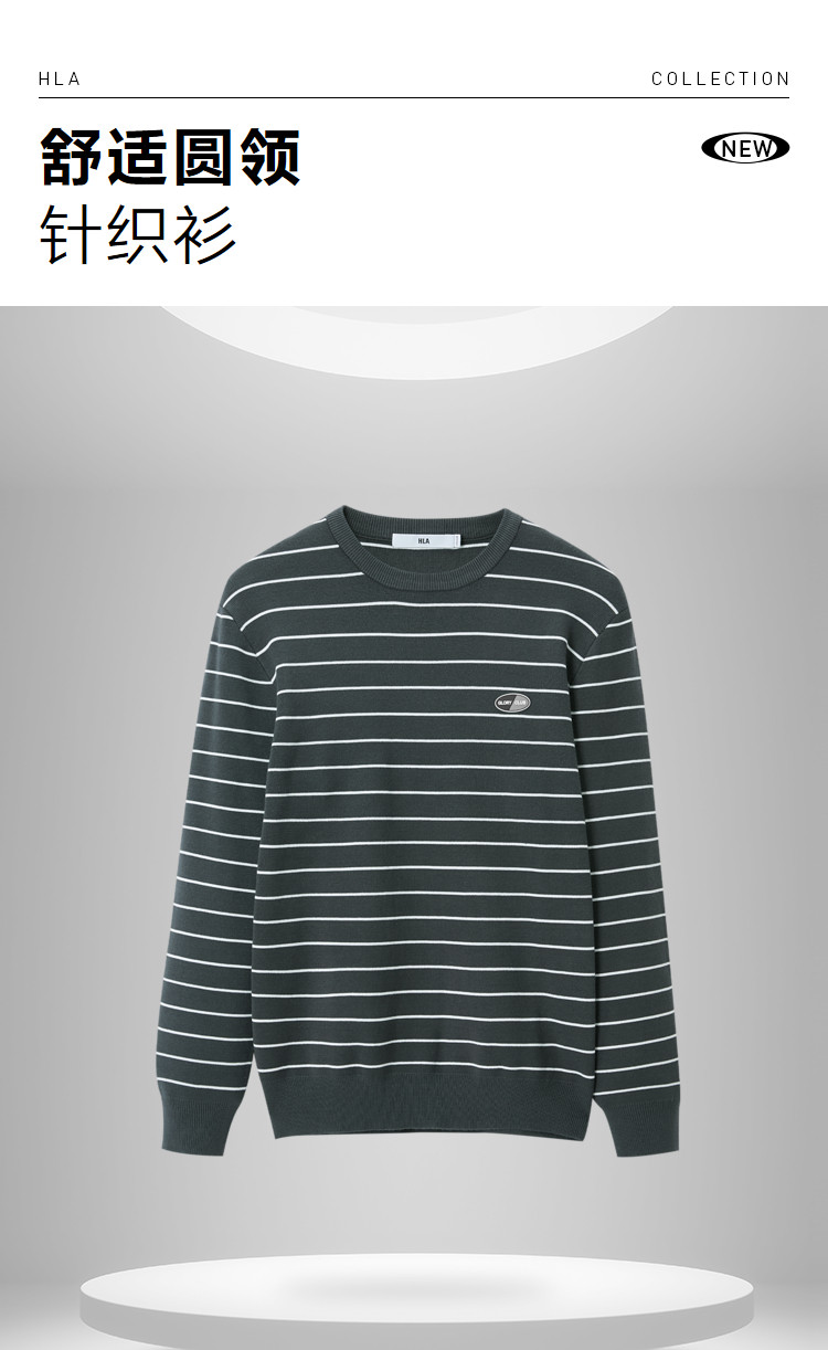 【舒适圆领】春秋热销保暖撞色条纹男士长袖针织衫 767112