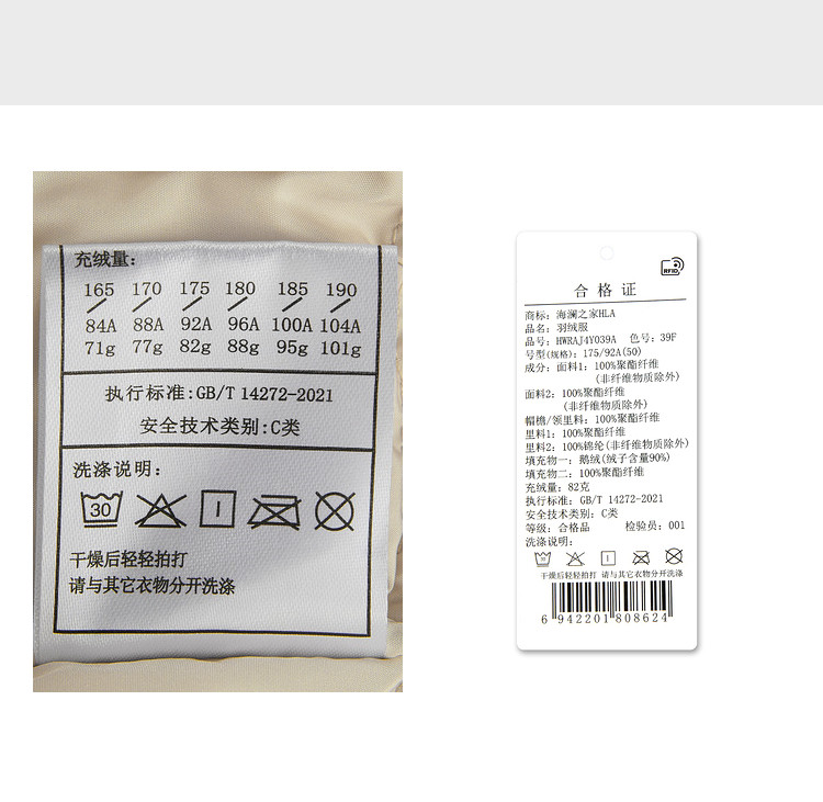 | 尺码 | 衣长(cm) | 肩宽(cm) | 腰围(cm) | 袖长(cm) | 充绒量(g) | 胸围(cm) | 下摆围(cm) | 号型 |