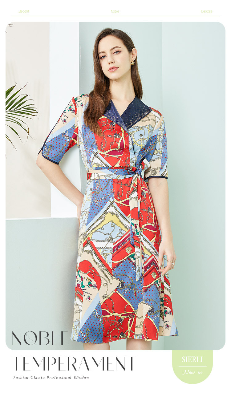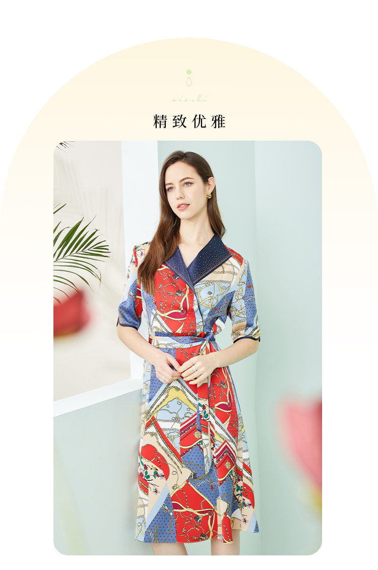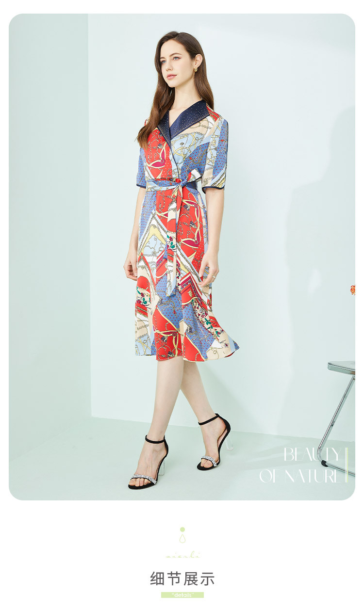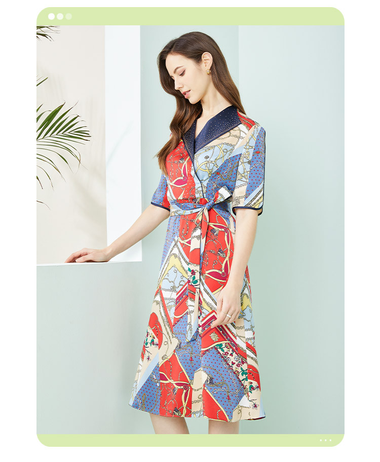 商品名称:商场同款秋季赫本风法式印花优雅撞色收腰式修身西装翻领连衣裙 429855