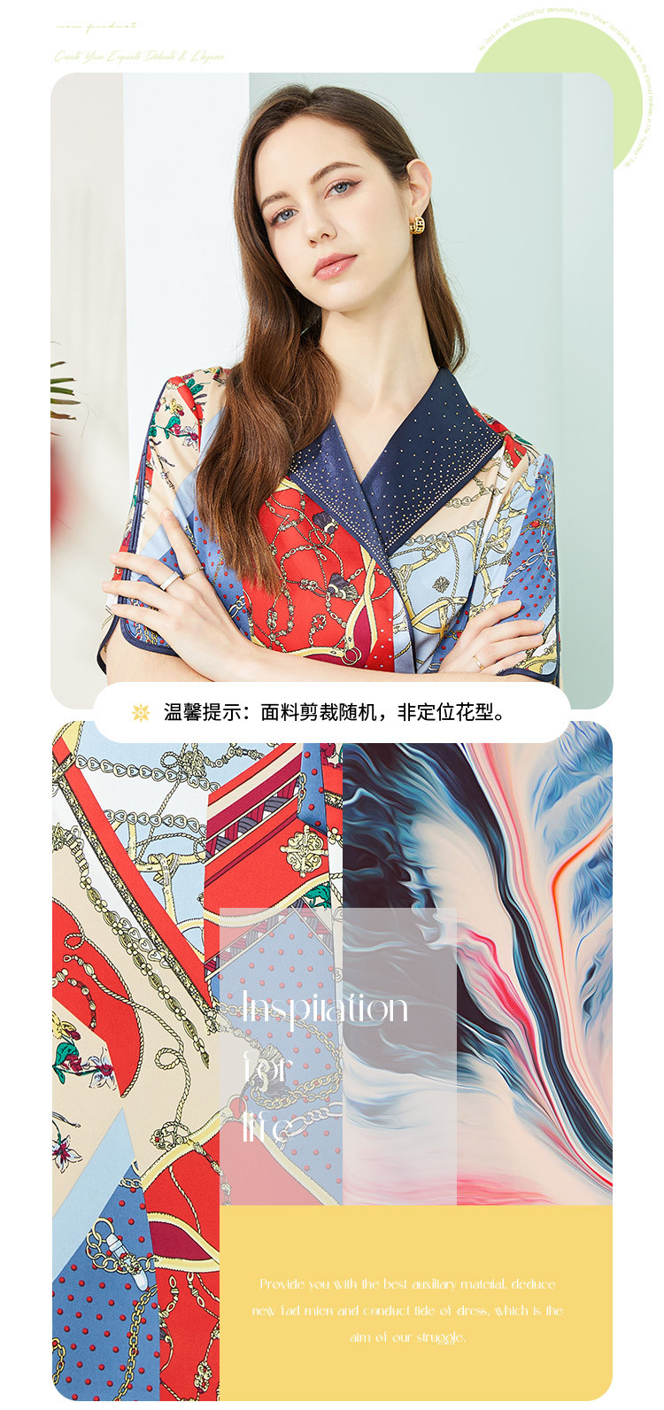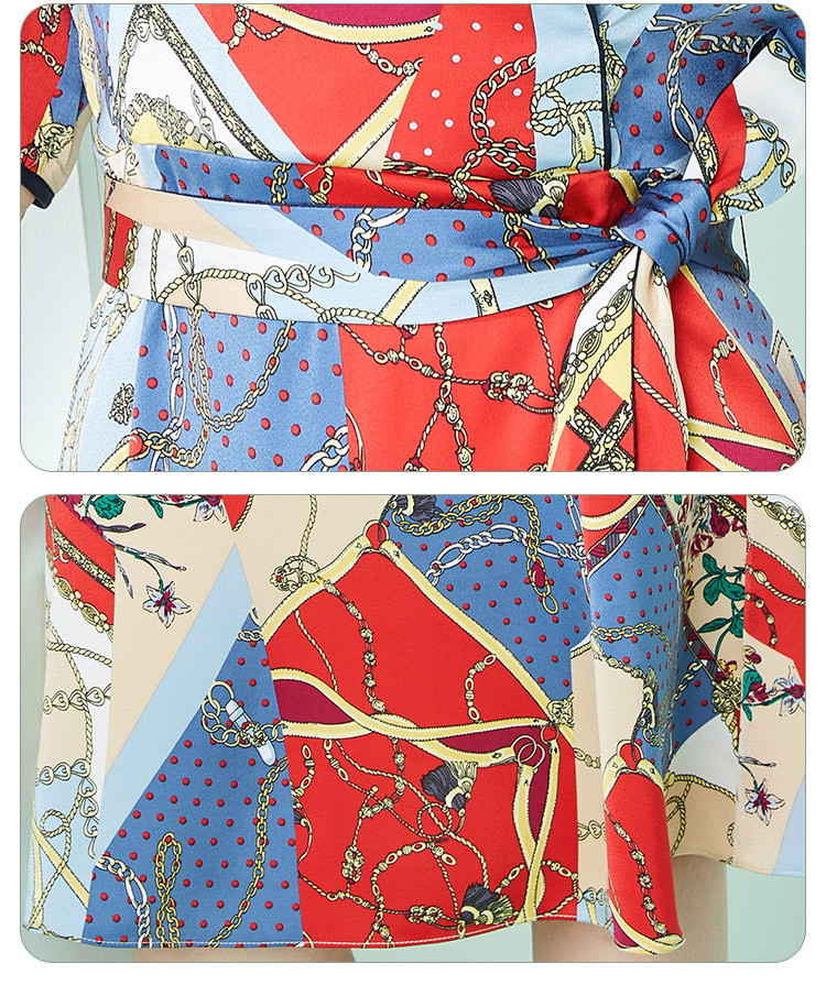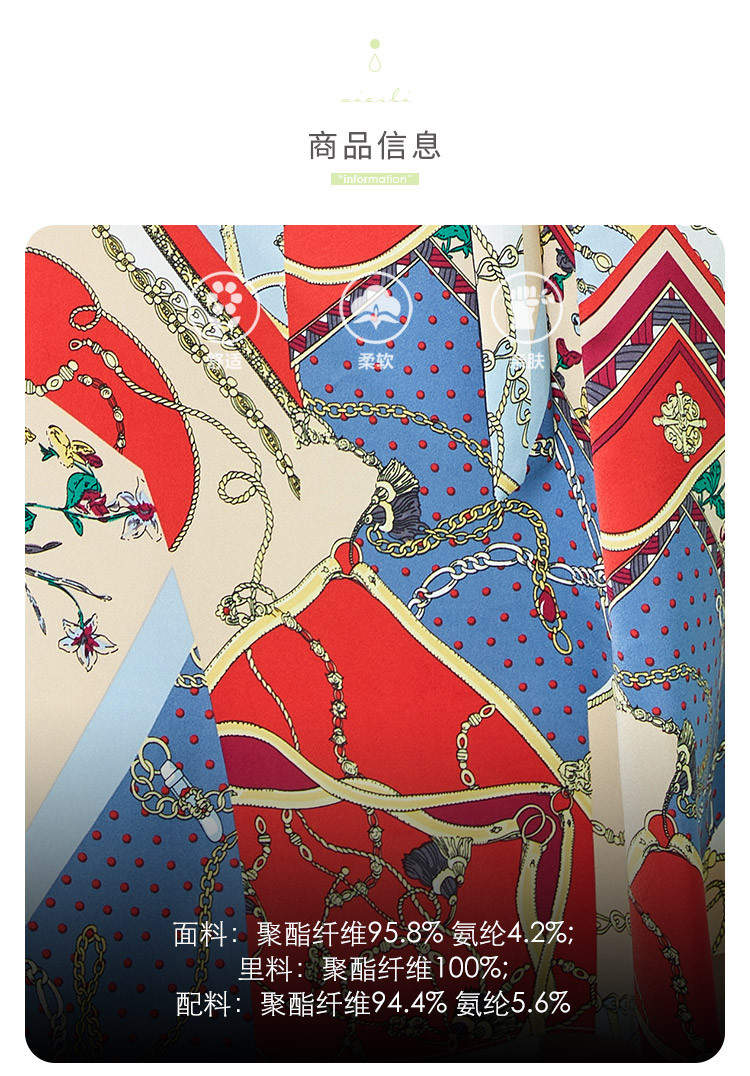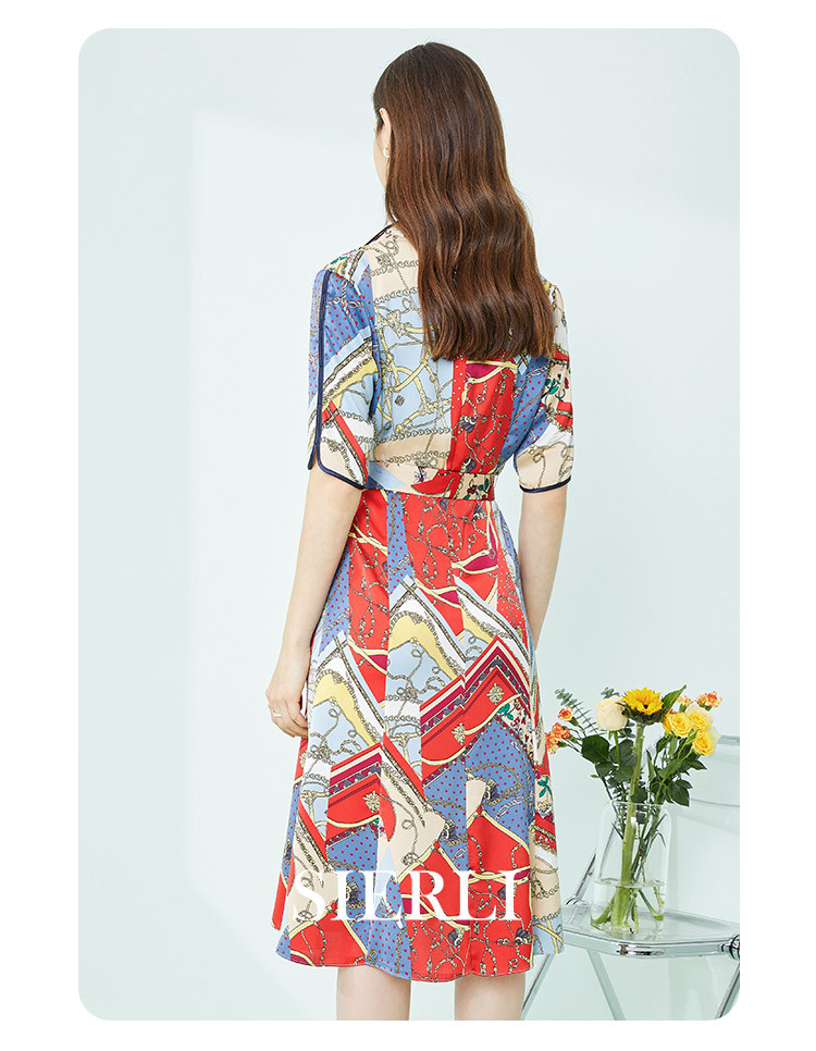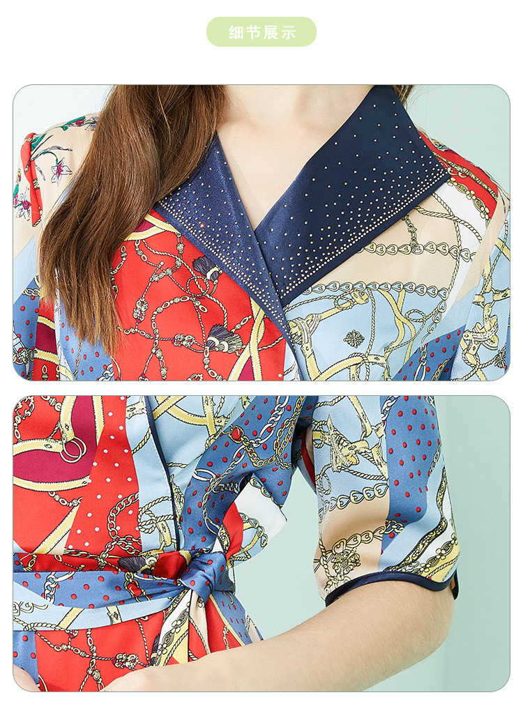 商品名称:商场同款秋季赫本风法式印花优雅撞色收腰式修身西装翻领连衣裙 429855