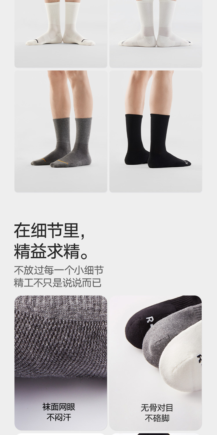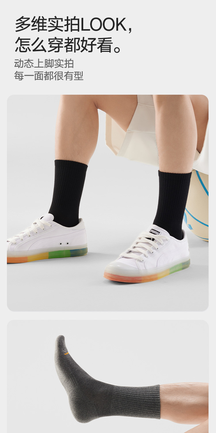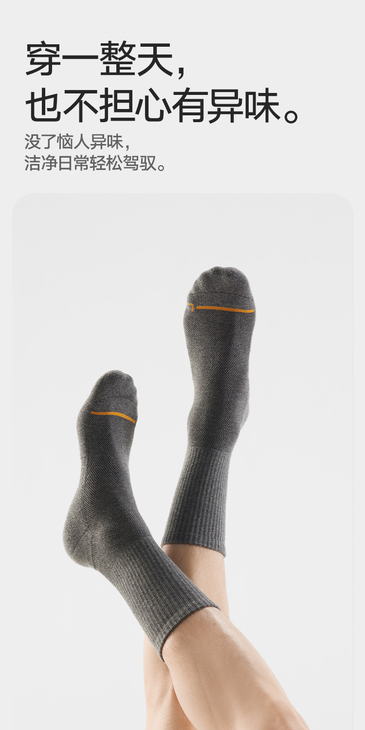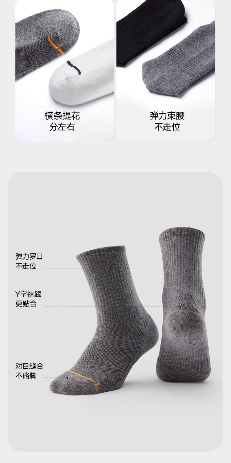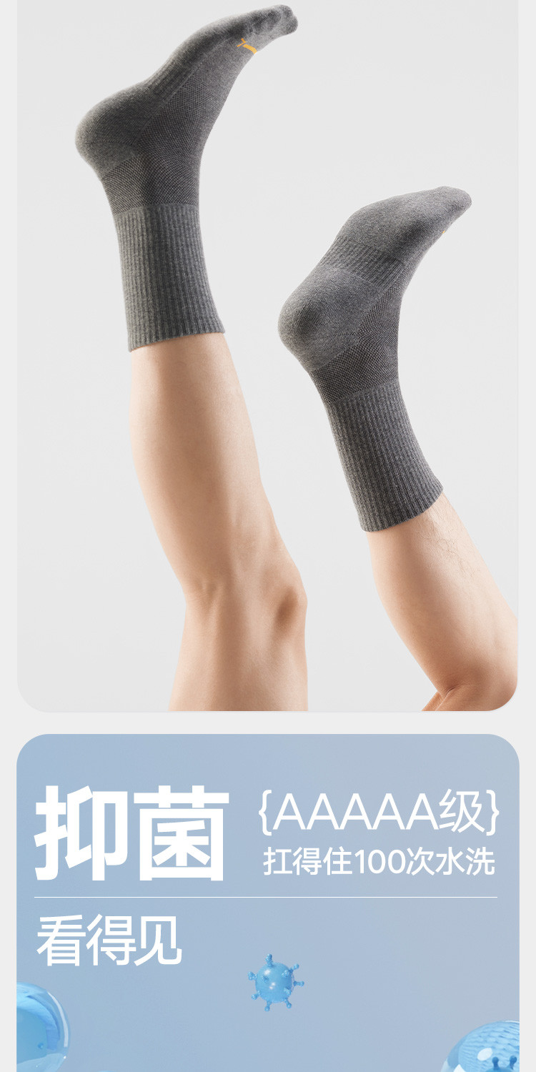 【5A抑菌防臭】3双装男士袜子男休闲运动棉袜薄款透气中筒长袜 059098