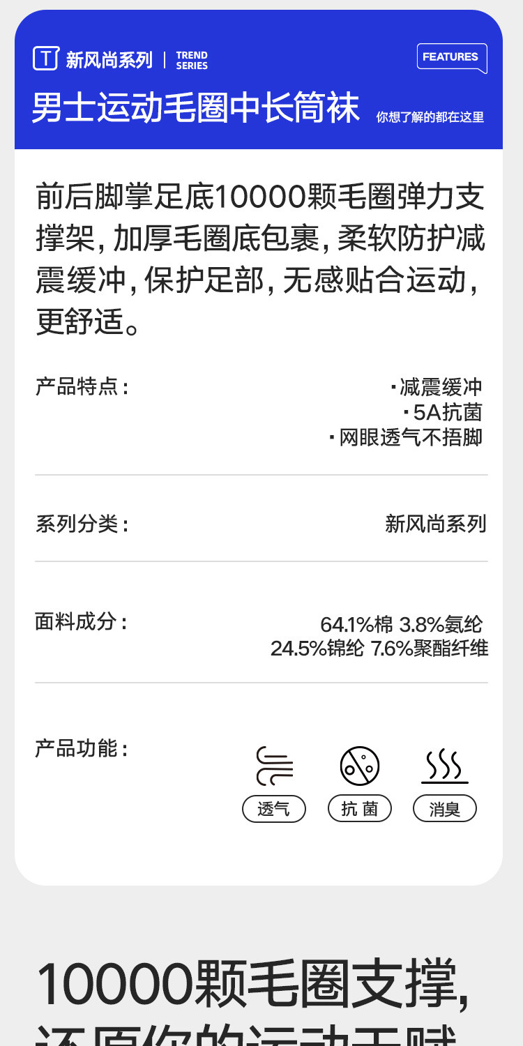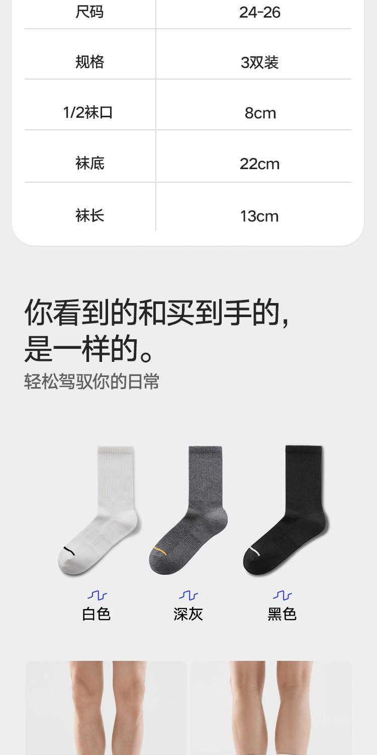商品名称:【5A抑菌防臭】3双装男士袜子男休闲运动棉袜薄款透气中筒长袜 059098