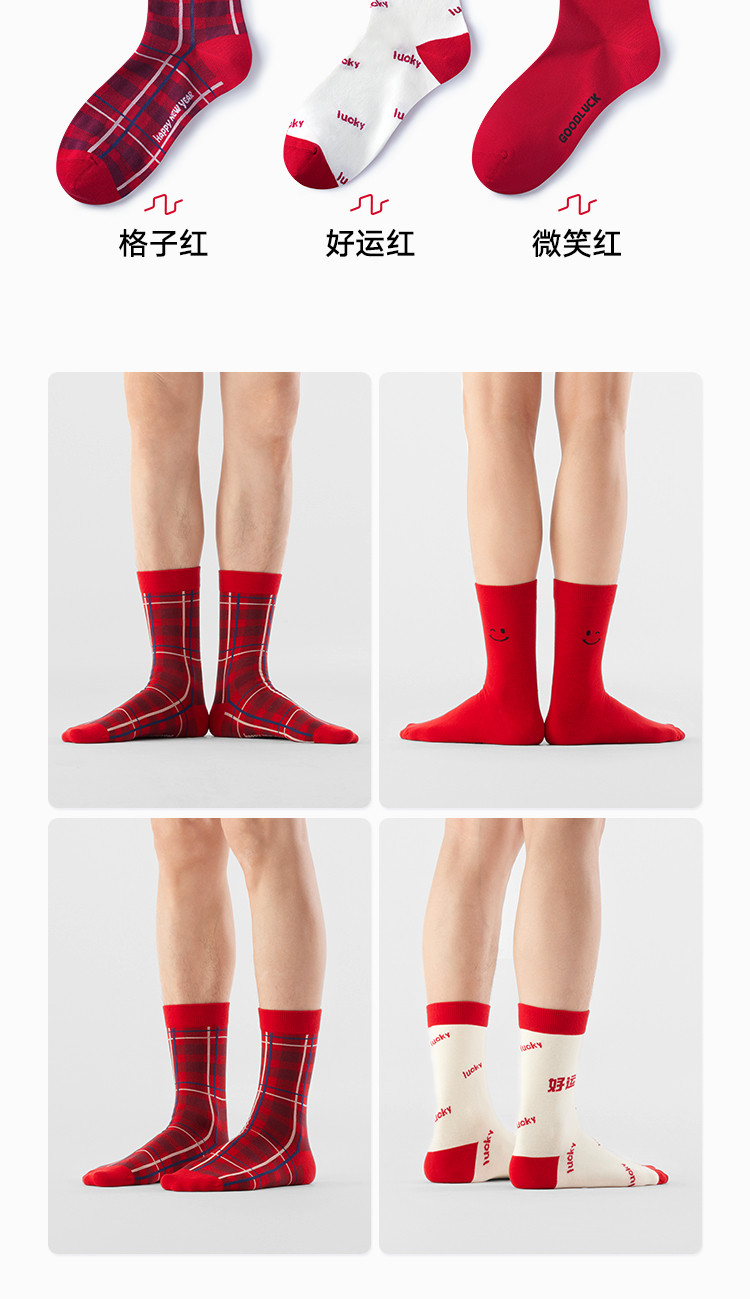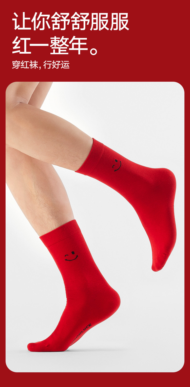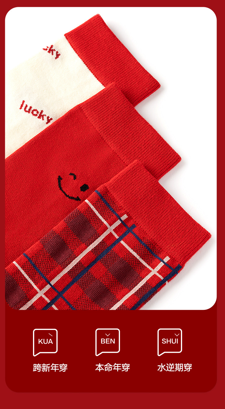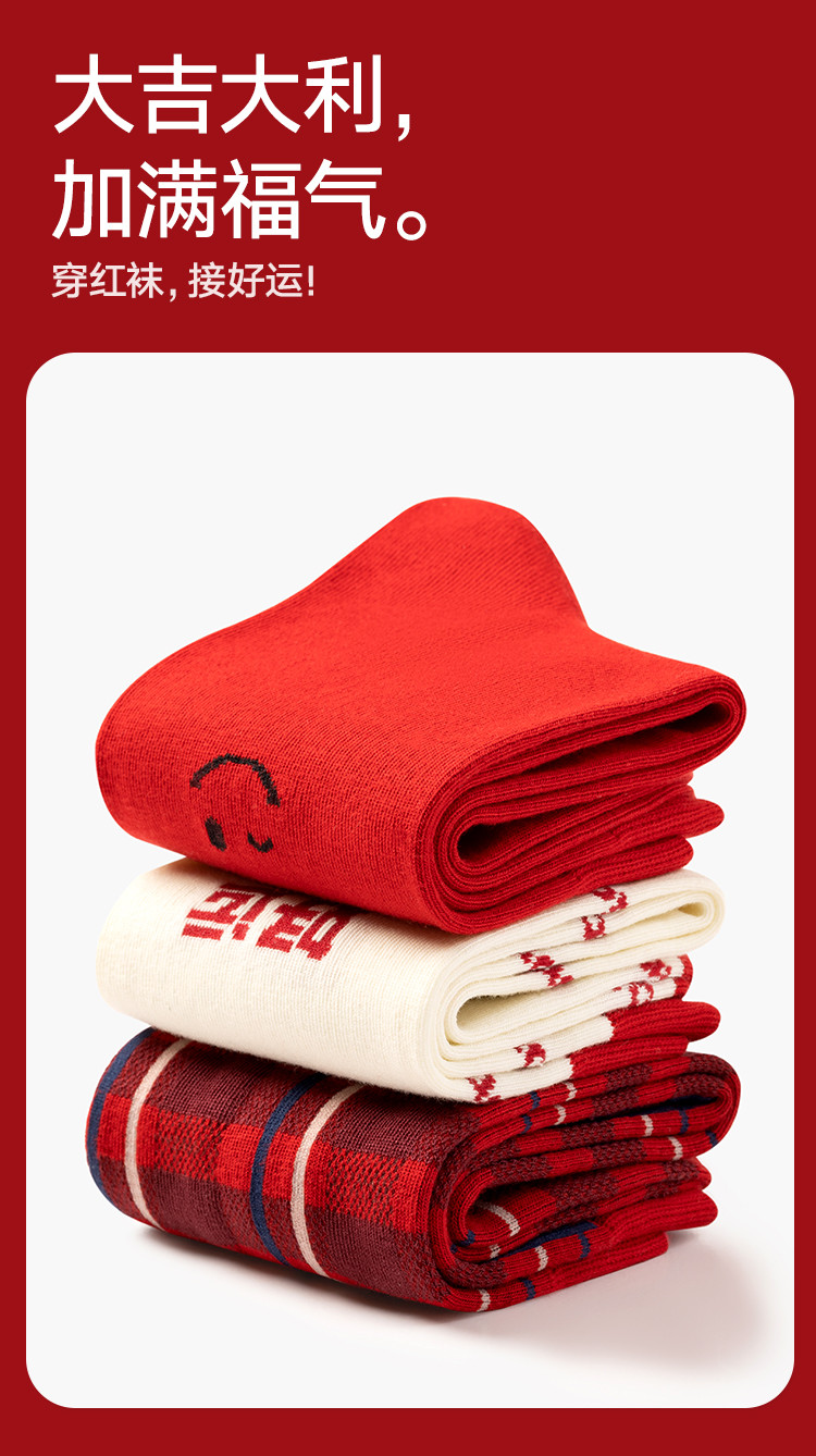 商品名称:【鸿运礼盒装】3双装袜子男红色喜庆新年本命蛇年抑菌消臭中筒袜 996762