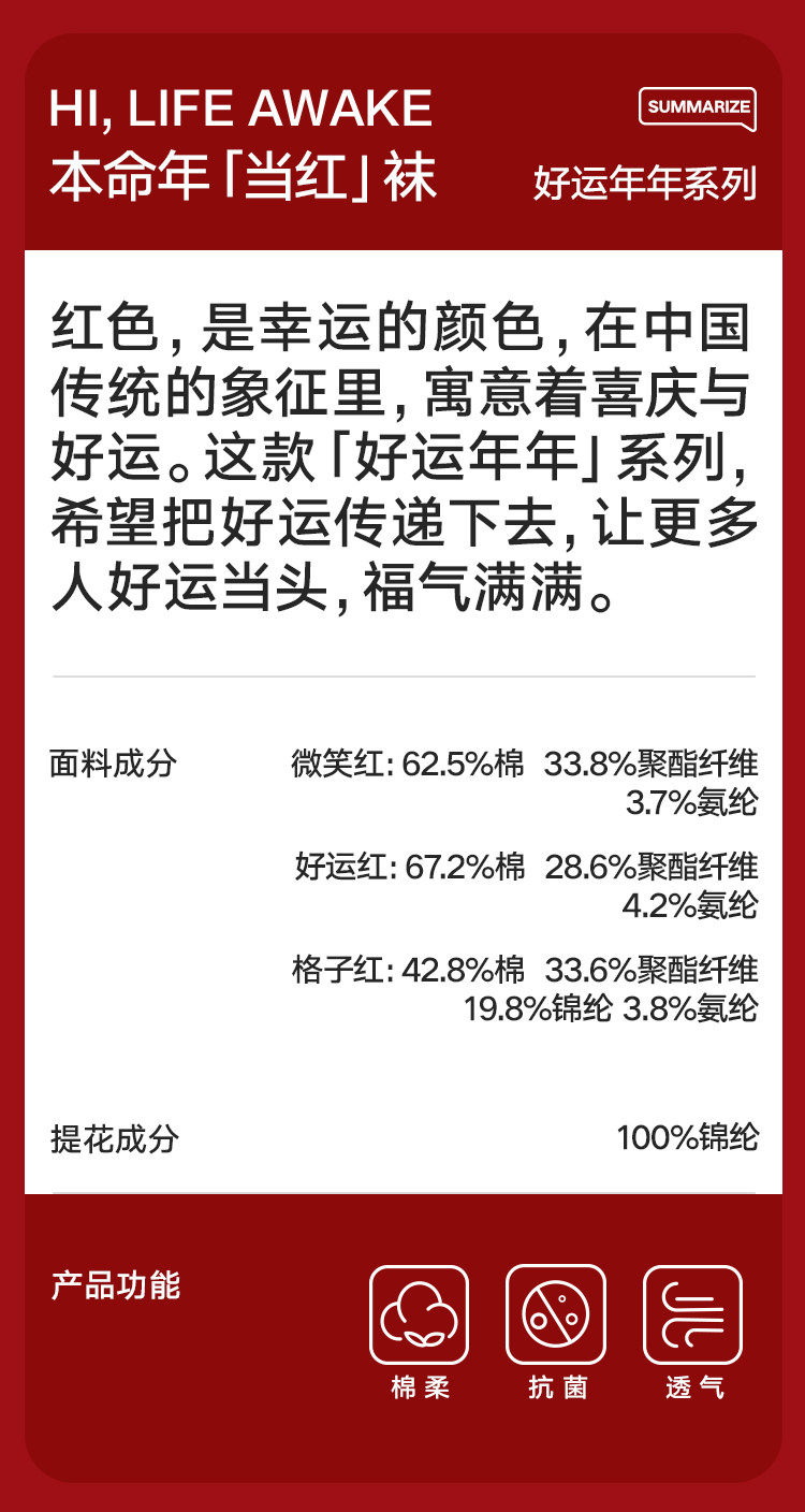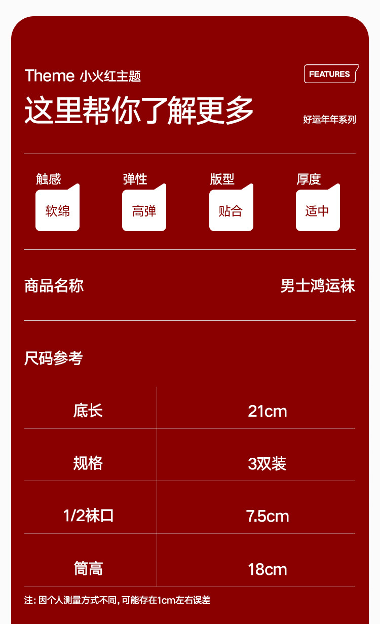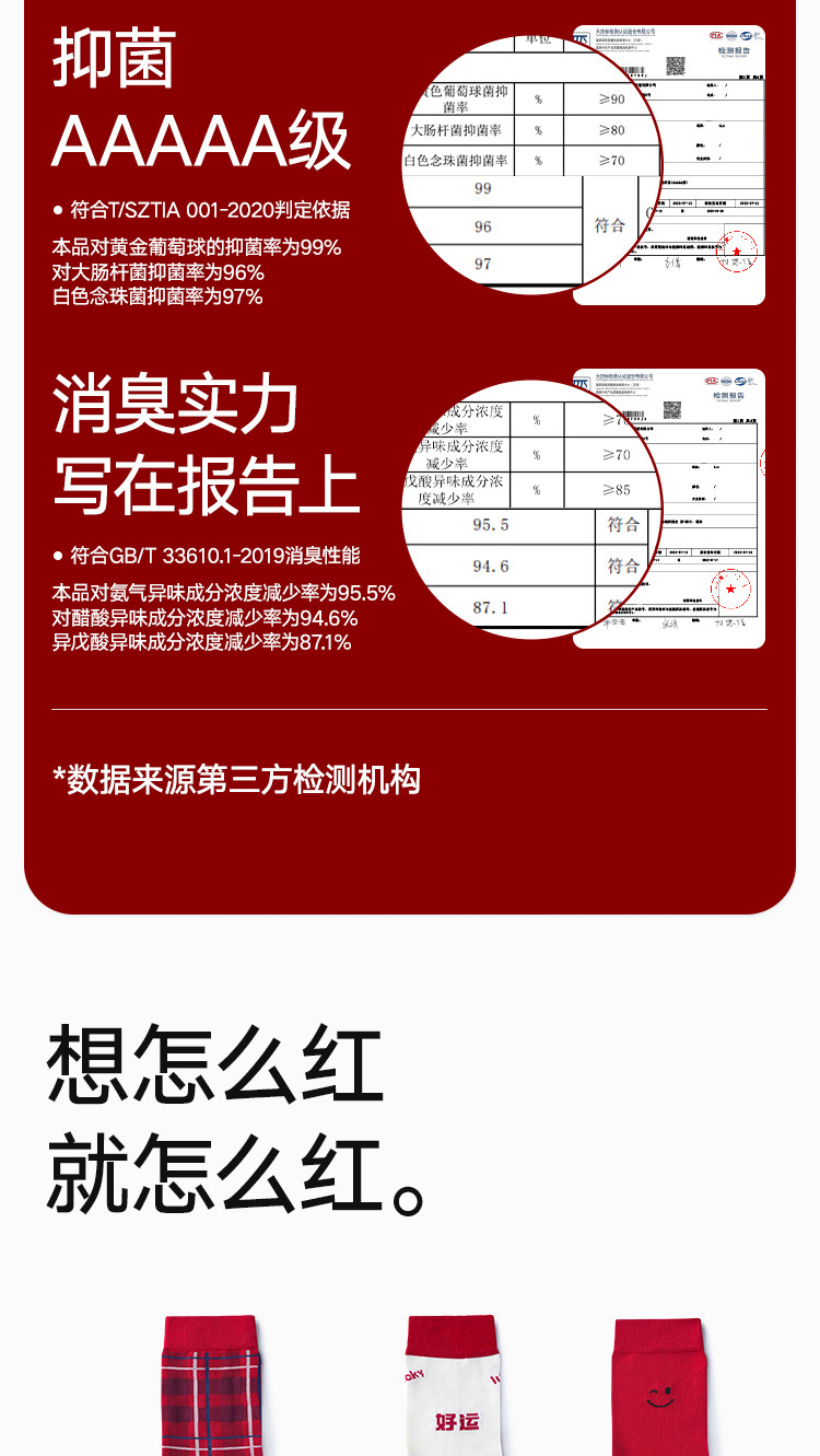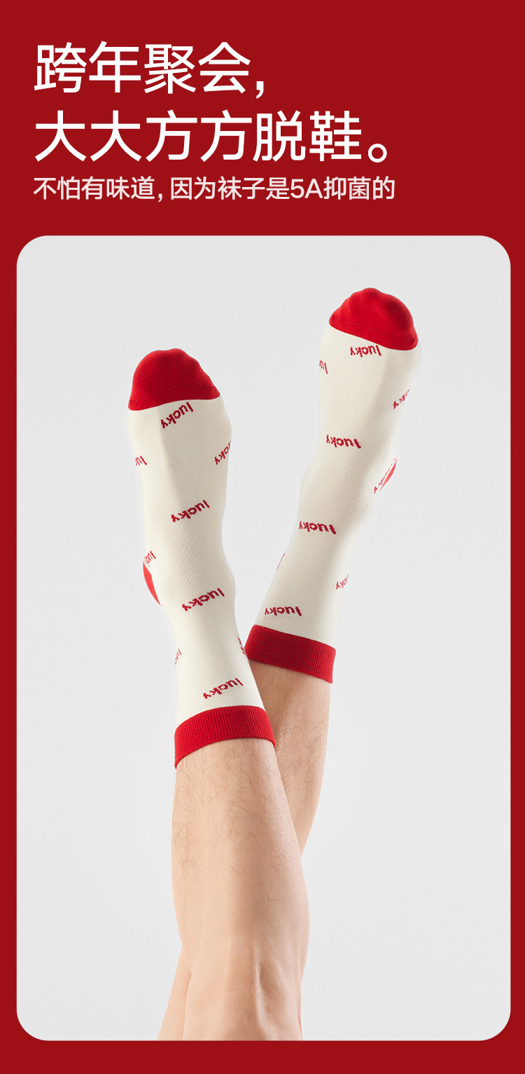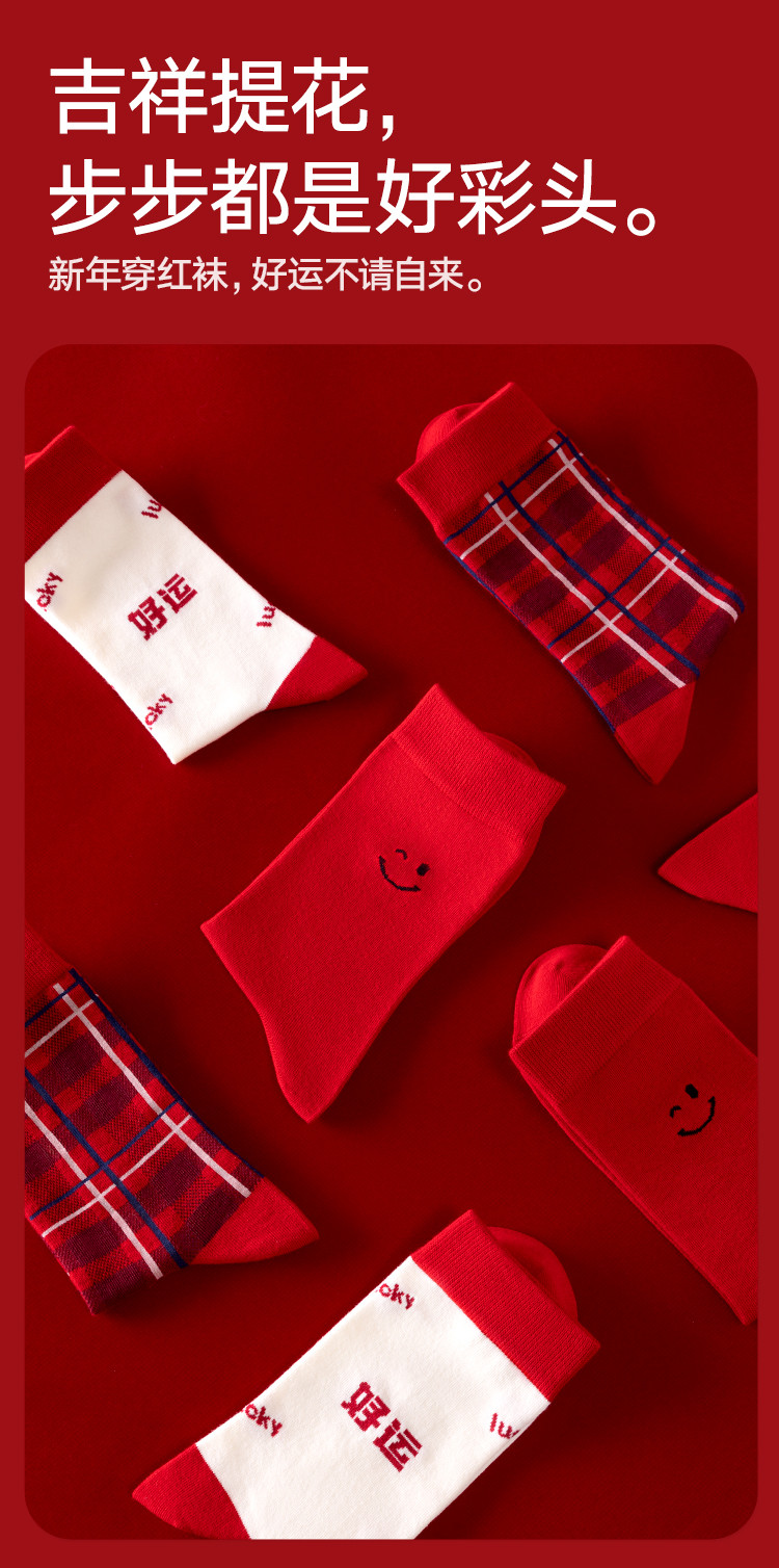 商品名称:【鸿运礼盒装】3双装袜子男红色喜庆新年本命蛇年抑菌消臭中筒袜 996762