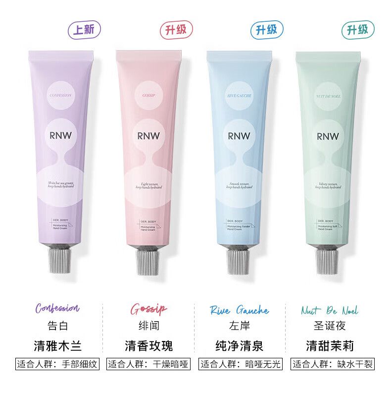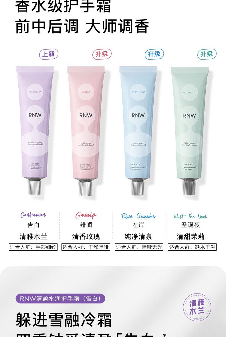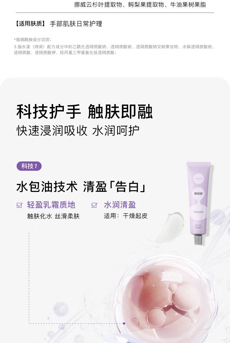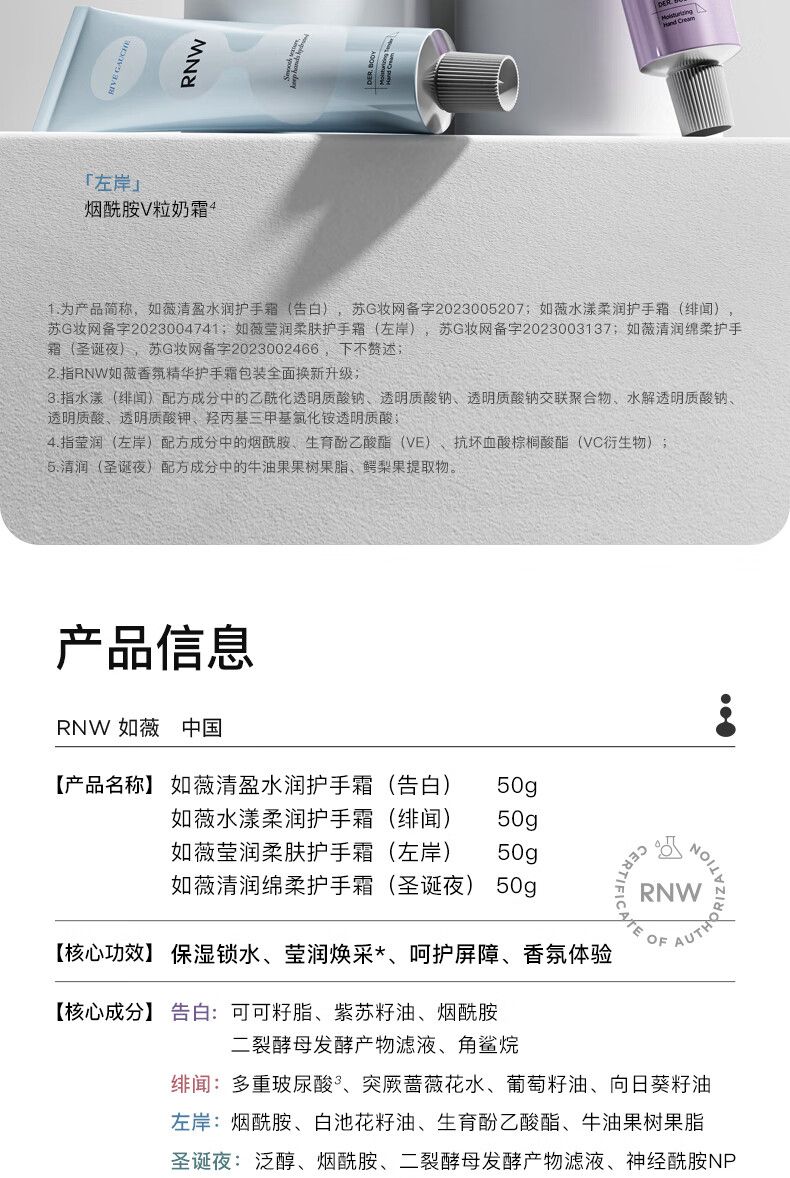 商品名称:RNW如薇 水漾晶透护手霜 绯闻 50g 葡萄籽油玫瑰花水滋润秋冬补水保湿滋润擦手部