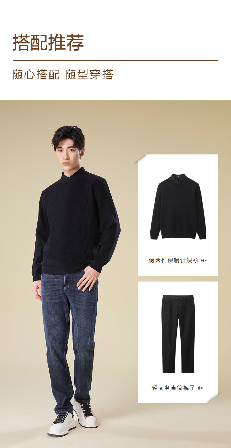 【假两件】春秋热销轻商务时尚系列男士长袖针织衫 941640