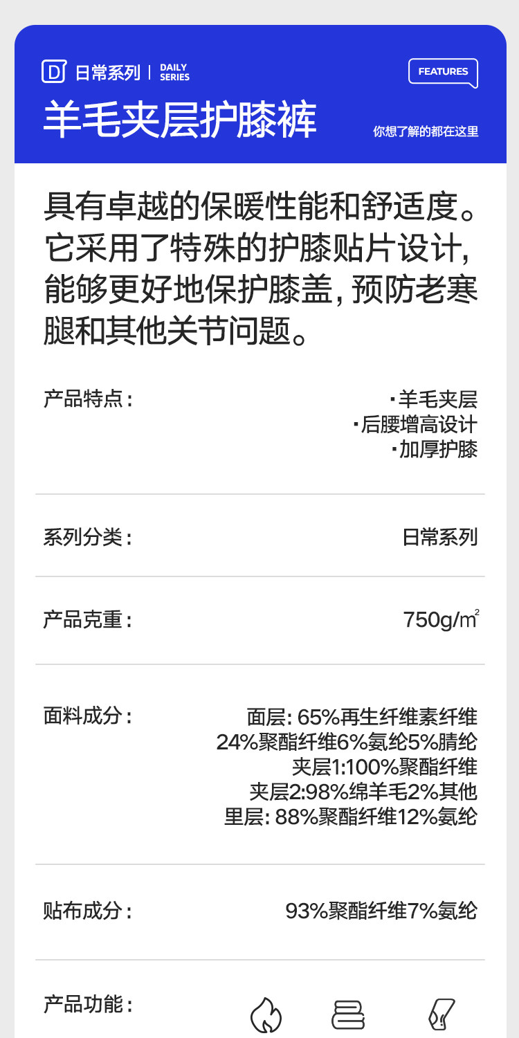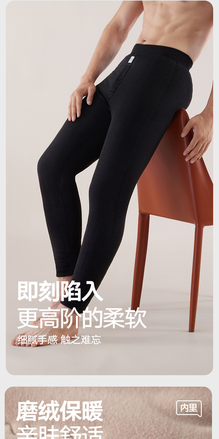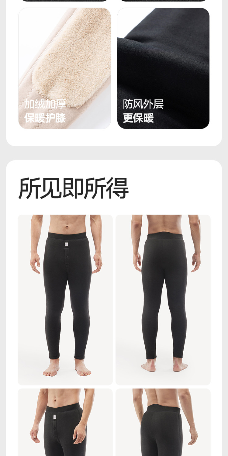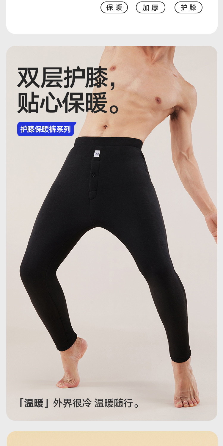 商品名称:【750g加绒加厚】含羊毛秋冬季男士保暖裤东北高腰打底秋裤男 802458