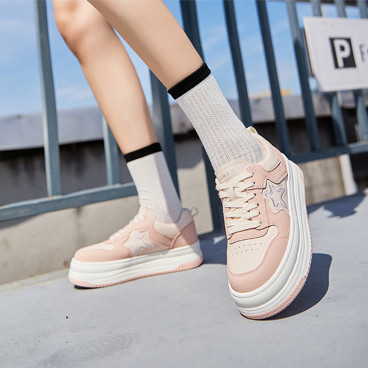 商品名称:板鞋女休闲鞋女鞋休闲鞋女拼接百搭厚底板鞋增高鞋子女 858767