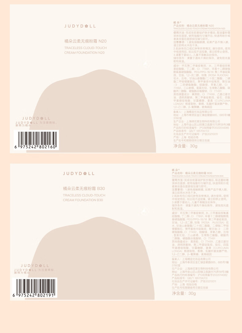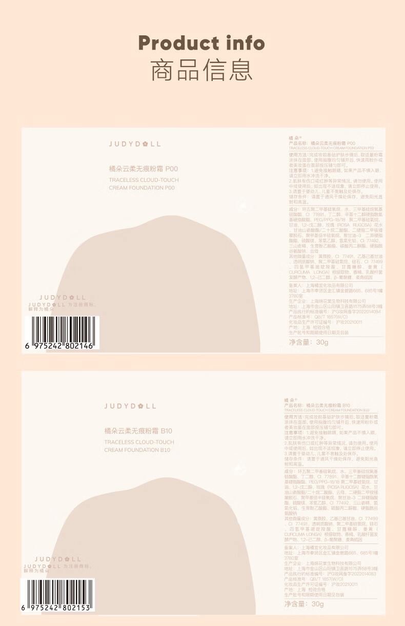 商品名称:Judydoll/橘朵 云柔无痕粉底液粉霜遮瑕 混皮持妆防蹭不脱妆不卡粉