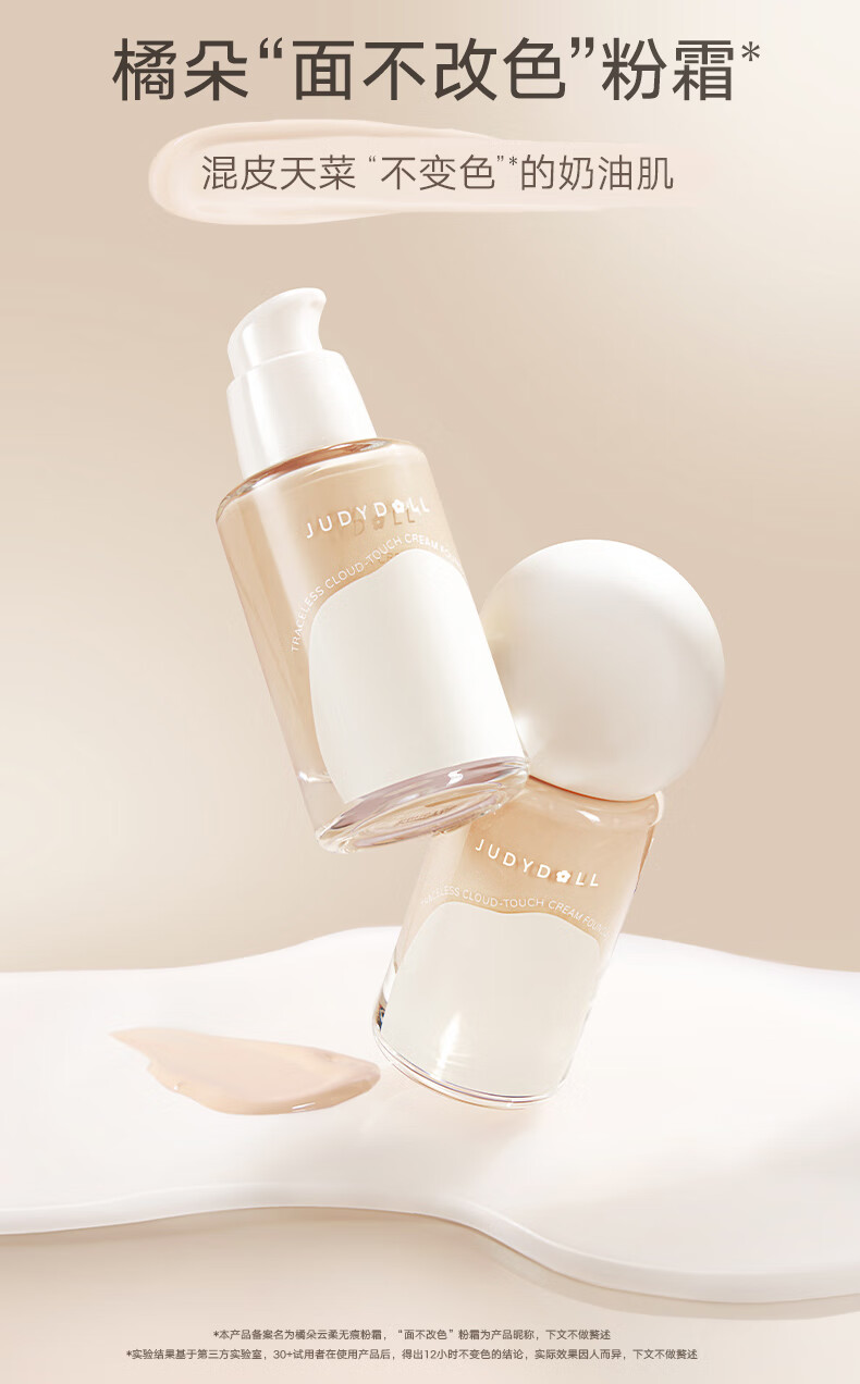 Judydoll/橘朵 云柔无痕粉底液粉霜遮瑕 混皮持妆防蹭不脱妆不卡粉